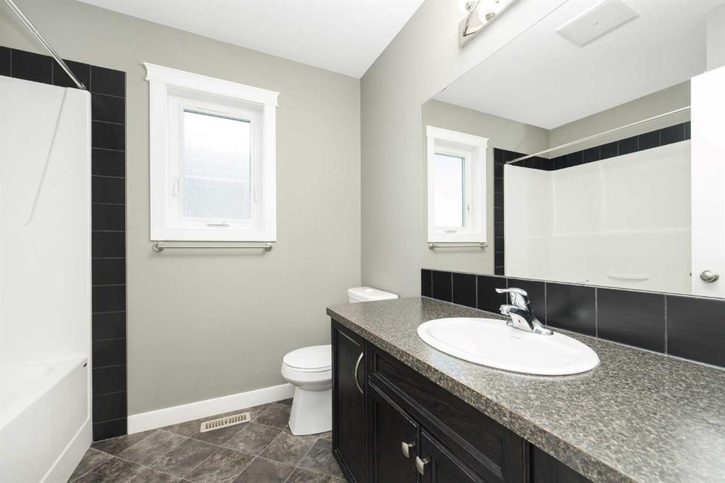 Upstairs, you’ll find three generous bedrooms, including a primary suite with a walk-in closet and a full 4-piece ensuite. The upper level also features a second 4-piece main bathroom and the added convenience of laundry upstairs. The insulated and drywalled front-attached garage provides both comfort and functionality.