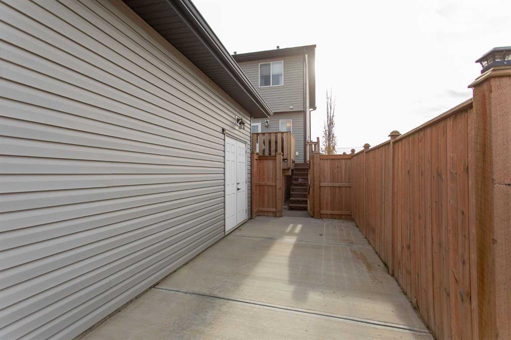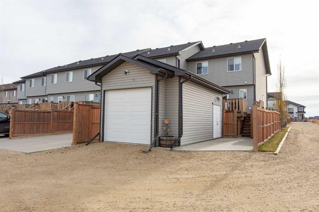 NO CONDO FEES | DETACHED GARAGE | END UNIT | Welcome to an ORIGINAL OWNER town home located in Blackfalds! Thanks to the end-unit design, there’s an ADDITIONAL WEST FACING WINDOW that brings extra natural sunlight into the main living space. This property truly shows like a true show home. Immaculately cared for, it feels barely lived in. Enjoy a bright and functional main floor featuring QUARTZ COUNTER TOPS, modern finishes, island sink, new fridge and stove, STAINLESS STEEL APPLIANCES, under cabinet lighting and AIR CONDITIONING for year round comfort. The overall condition is outstanding, simply move in and enjoy. The last touch on the main floor is a convenient powder bath located near the back entrance. Upstairs you'll find 3 bedrooms, and a 4pc bathroom. On the primary bedroom you've got an EN SUITE to take this property 1 step further. In the basement rounding off the property is a large living room with a large SOUTH FACING WINDOW, a bedroom and bathroom. Outside, take in the evening glow from the oversized back deck, perfectly placed to enjoy the sunsets. The deck has been reinforced with additional stability, making it ideal for a future hot tub. The yard is private leading to an OVERSIZED SINGLE CAR GARAGE, plus a paved parking pad beside it great for extra parking or toys. The garage is fully finished, lots of storage, shelving and HEATING to enjoy year round. What truly sets this home apart is that it's tucked into one of the most WELCOMING CLOSES you’ll ever find, where neighbours wave hello, kids play, and the sense of community is truly real. It’s a place where people look out for one another and where you’ll feel at home right away. A truly standout home in both condition and location, you won’t find another like it. Amenities within 5 min of home: Abbey Centre (OUTDOOR POOL), Eagles Builder Centre (Home Of Local BCHL Team), Ball Park, Mountain Bike Park, Gas Station, HIGHWAY 2 (1 min), Grocery stores... Don't miss out on this exceptionally RARE property!