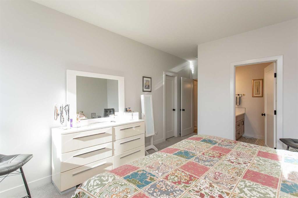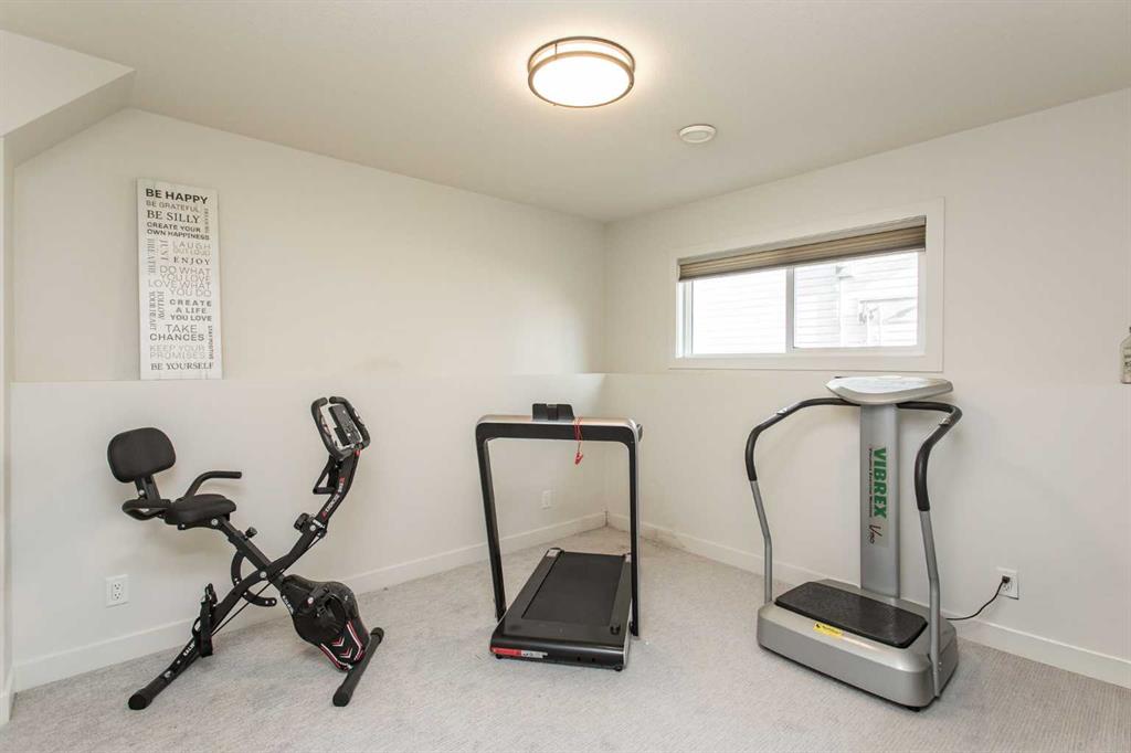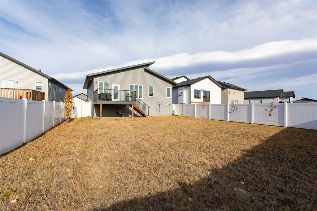Beautifully upgraded bi-level located in the newer community of Aurora in Blackfalds. The stunning curb appeal is complimented by the attractive blend of stone work, wood accents and vertical siding. A welcoming front entrance greets you inside which offers a wide staircase plus a black gunpowder metal railing. A show case of a kitchen you will enjoy everyday in. Upgraded two tone cabinets, full surround quartz counter tops, all matching Black appliances with an upgraded gas stove, deep corner pantry for extra storage, floating shelves plus modern style light fixtures. Excellent size dining area and living space with plenty of windows all equipped with custom blinds. Garden door off back which leads out to the relaxing SW facing deck equipped with gas line for BBQ which overlooks the massive fully fenced yard. Wonderful three bedroom main floor plain with a generous Primary Bedroom offering you plenty of closet space plus your own private en suite with dual vanity and stand up shower. Save the extras steps and appreciate the convenience of the main floor laundry as well. Professionally developed basement is a great design for family and entertaining. Large media area perfect for gaming or streaming a favorite movie but then follow through the Barn Doors to the massive family room with plenty of space for games tables or even office/studio section. An additional bedroom for guests plus another three piece bath with walk in shower offering full tile surround, wide entrance and safety bars. Huge storage area at back of home ideal for all your seasonal clothing and decorations. A/C unit already in place for the warm next season plus the finished attached garage offers a rough in for gas heater. Built with quality by True Line developments you can buy with the assurance of a great home. Home is located within walking distance to small neighborhood shopping plaza plus other close by amenities.