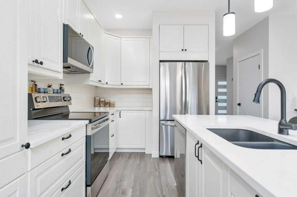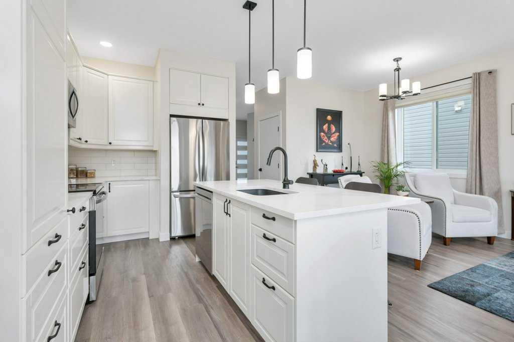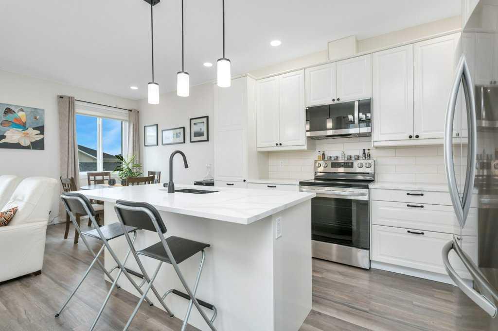 DESIGNED FOR REAL LIFE, FINISHED FOR REAL STYLE! This one owner semi-detached home in Blackfalds is the perfect place to call home. Be welcomed at the front entrance to a large foyer with ample closet storage. The open concept main floor offers 9' ceilings throughout complete with a large living space with electric fireplace, modern white kitchen, large island, quartz countertops, stainless steel appliances and a dining space with garden door to the back yard. Two piece bathroom completes the main level. This home also comes complete with newly installed blinds. Head upstairs, you will find vinyl plank flooring and plush carpet throughout. The bright primary retreat features a five piece ensuite including dual sinks and walk-in closet. Upstairs there is also a spacious laundry room, two additional bedrooms and four piece bathroom. The basement is undeveloped and offers room for a fourth bedroom, third bathroom and family room. The south facing rear yard has been fully fenced and landscaped and offers all day sunshine along with additional storage below the deck. Attached garage is insulated and has 220v power with enough room inside the garage and on the driveway to park full size pick up trucks. This is an exceptionally well cared for home in a quiet cul-de-sac, making it the perfect for you and your family!