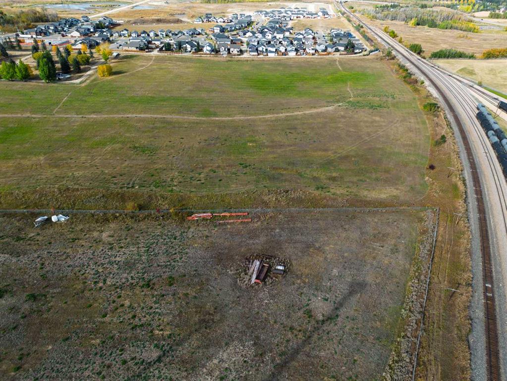 Development opportunity in the heart of Blackfalds! 33.43 acres identified as either light industrial or residential in the Town of Blackfalds Future Land Use Plan. Approximately 30% of the south end of the site has been used for industrial use including metal fabrication and welding. That portion of the site has a compacted gravel surface and is improved with a 40' X 80' steel building with boiler fired underfloor heat, a small mezzanine, 2 pce. washroom, 3 - 12' X 16' overhead doors and two man doors. There is also a separate 30' x 32' office building with 3 offices, 2 pce bath, lunch room and furnace room. Potential uses might be multi-family development (apartment and/or row housing), mobile home park or light industrial. The large building would make a great community centre in a multi-family or mobile home park. The balance of the land is native soil.