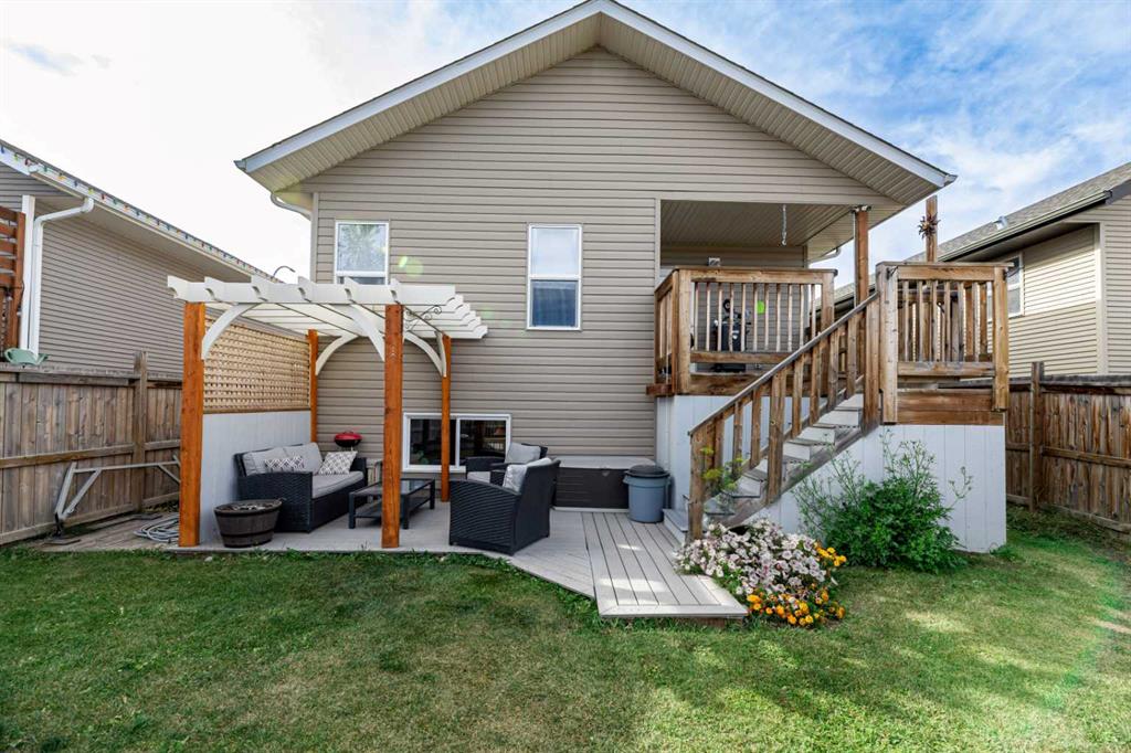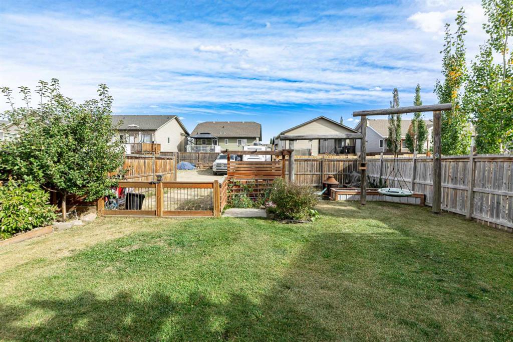 This inviting bilevel home is the perfect blend of function and location! Offering 4 bedrooms, 2 full bathrooms (including a private 4 piece ensuite in the primary), and an open floor plan designed for modern living, it checks all the boxes. Kitchen has a garden door leading to the East facing backyard. Warm and inviting, with a mix of laminate flooring and carpet. The full  basement (with just the ceiling that awaits  your finishing touch) provides a spacious family area plus a rough-in for an additional bathroom, giving you room to grow. Step outside to the fully fenced yard, with an upper and lower deck ,landscaped and ready for summer fun with the kids or family pets, even adequate space for garden beds with rear parking for 2 vehicles.There is even a possibility for RV parking or building a detached garage.  Ideally situated close to the new school, nearby parks, and local amenities, while keeping your commute simple with quick access to Hwy 2A and Hwy 2. A wonderful home in a family-friendly location awaits you and your family!