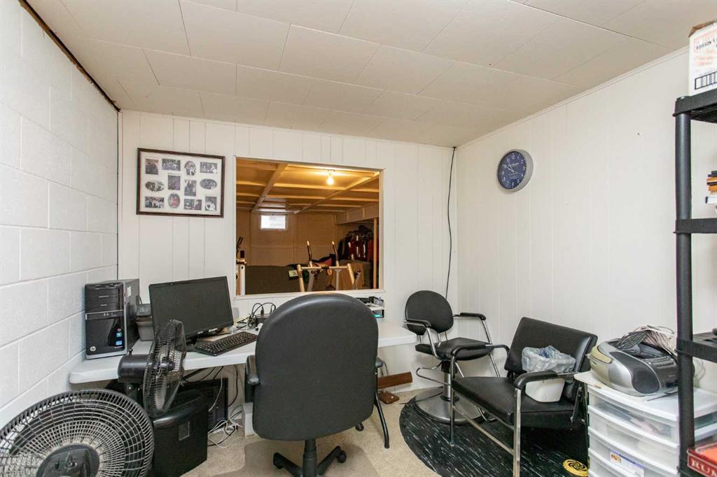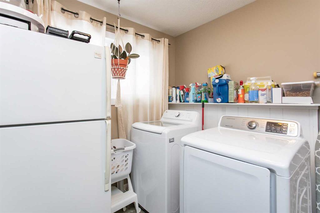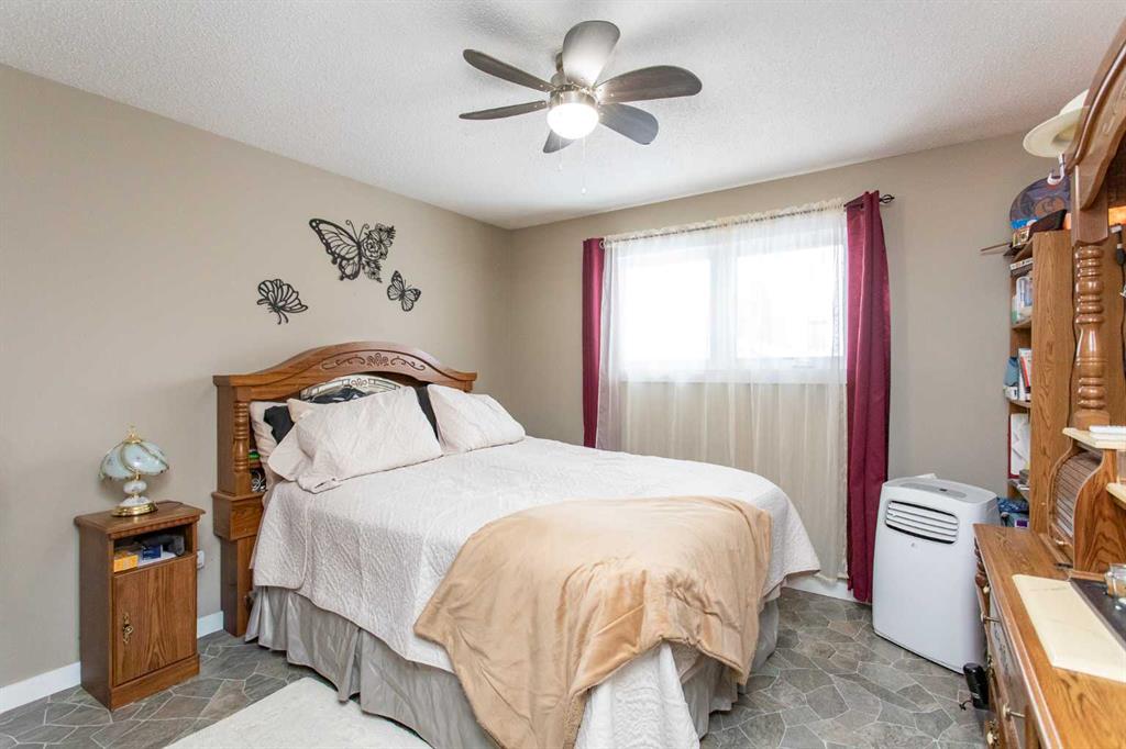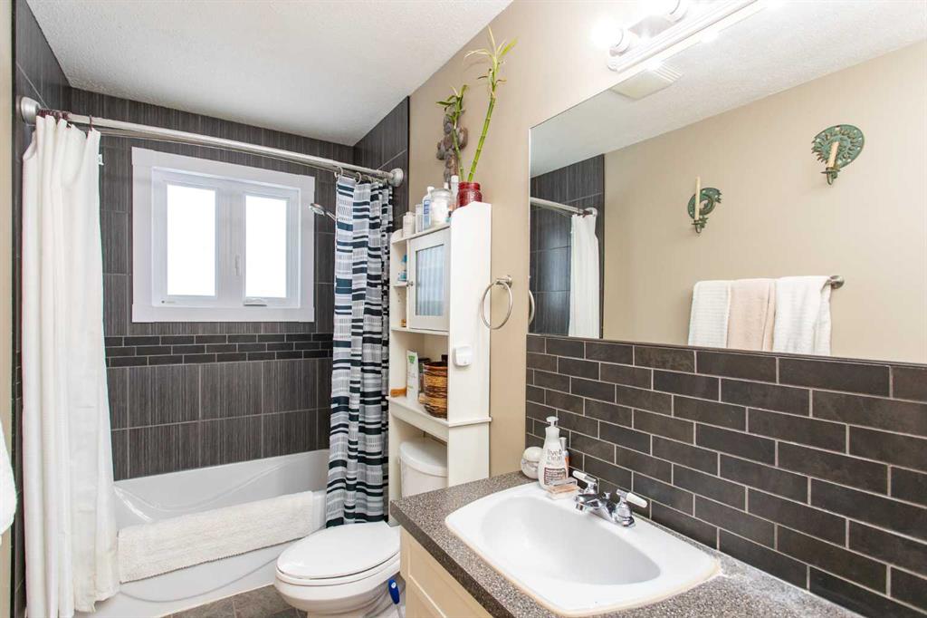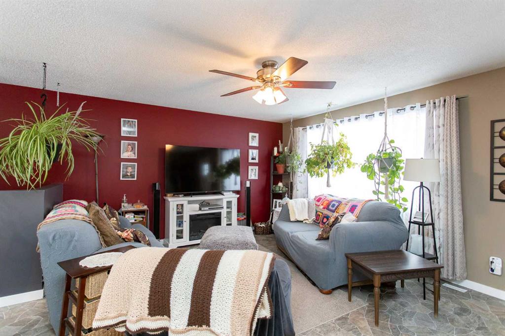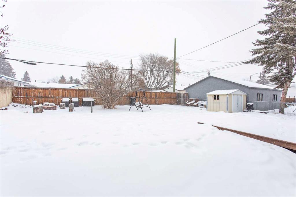 Presenting an updated bungalow located in the heart of Blackfalds, ready to welcome its new owners. This property has undergone notable renovations in recent years, including new windows installed last year and a redesigned main living area featuring an open concept layout. The modernized kitchen offers off-white cabinetry, a newer backsplash and countertops, and lighting and newer appliances. Primary bedroom plus a second bedroom and fur piece bathroom complete the main level. The third bedroom has been converted into a main floor laundry room but can easily be restored to its original use. The four-piece bathroom is highlighted by a beautifully tiled bathtub and shower combination, serving as a focal point of the home. The basement is partially developed, with one room currently functioning as an office that could be converted to a bedroom (please note: windows do not meet egress requirements). There is also a family room and a games room area, providing ample opportunity for customization according to personal preferences. The furnace was replaced around 2009. Additional features include a fenced yard, back alley access, and ample space for RV parking or gardening. The property is conveniently situated near amenities, shopping, the multiplex, and restaurants. Quick possession is available and the home is a pleasure to view.