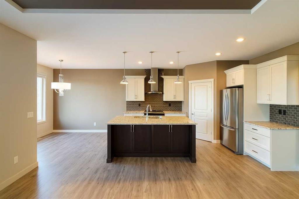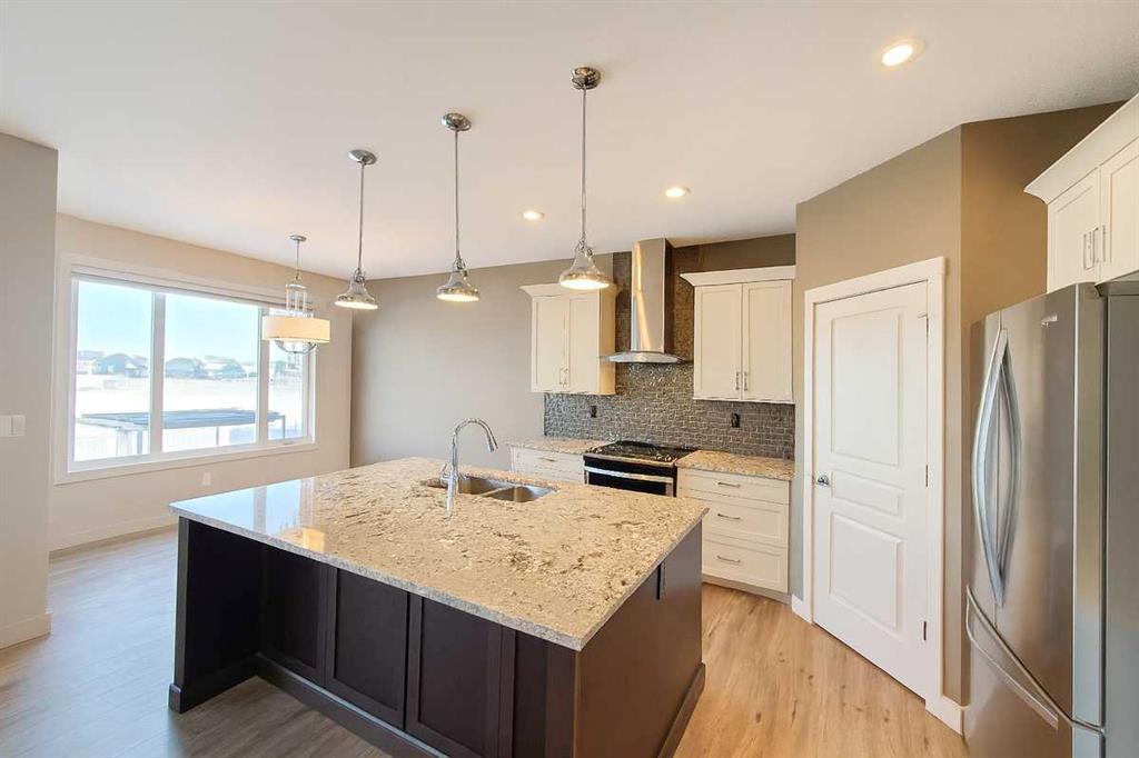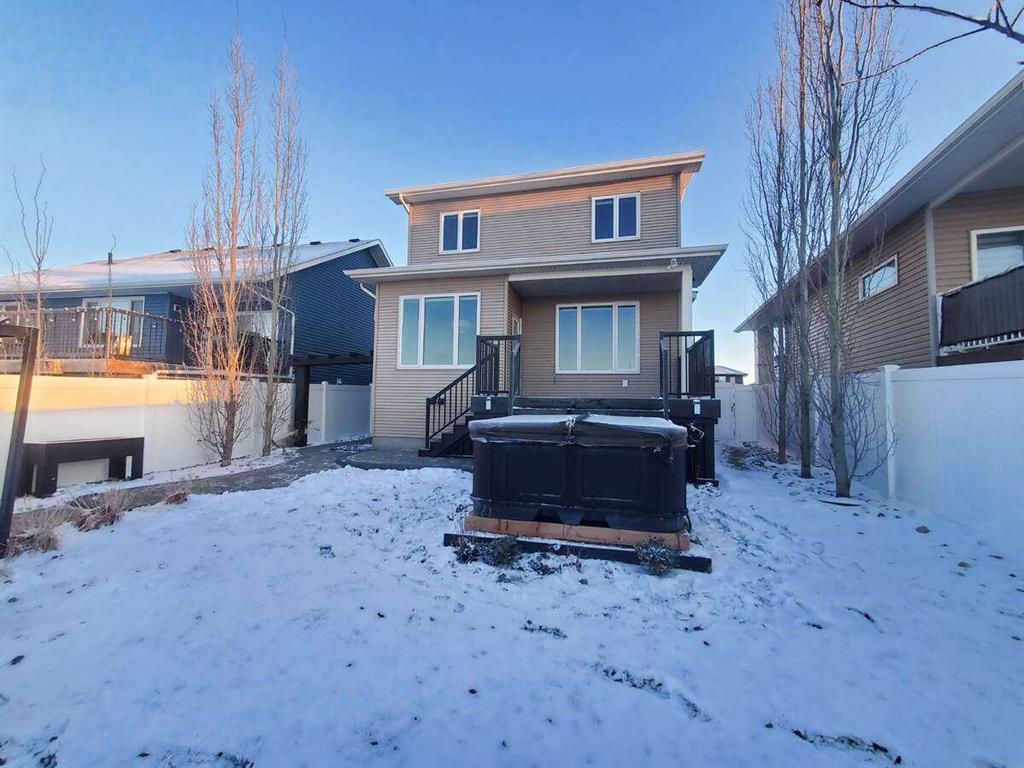 Welcome to 4244 Westbrooke Road, an exceptional two-storey residence that captures your attention the moment you walk in. The foyer sets the tone with its inviting colour palette and durable vinyl plank flooring that extends seamlessly across the main level. Just off the entrance is a handy two-piece bathroom and a well-organized mudroom offering direct access to the garage and walk-in pantry—making day-to-day life smooth and efficient. The main living area serves as the hub of the home, perfectly crafted for hosting and connecting. A large granite-topped island anchors the kitchen, which is equipped with stainless steel appliances, soft-close cabinetry, and a modern, functional design. The dining area transitions effortlessly into the living room, where a warm gas fireplace creates an ideal setting for relaxing with loved ones. Head upstairs to discover three comfortable bedrooms and a handy laundry room designed for effortless living. The primary bedroom creates a calming getaway, complete with a walk-in closet and a spa-inspired ensuite featuring two sinks—an ideal space to relax and recharge. The beautifully completed lower level enhances the home’s livability, showcasing a welcoming family room highlighted by a second gas fireplace, a spacious additional bedroom, and a full bathroom—perfect for accommodating guests or supporting a growing family’s needs. Step outside into a backyard designed for relaxation and enjoyment. The patio deck leads directly to the hot tub, surrounded by beautifully maintained landscaping, in-ground sprinklers, and a cobblestone pathway that guides you to a peaceful sitting area beneath a pergola. With no neighbours behind you and a vast green space stretching out beyond the property, the atmosphere is both open and tranquil—your own private outdoor retreat. Set in a sought-after Blackfalds community, you’ll enjoy being close to schools, parks, play areas, the skate park, BMX track, and a variety of shopping options, with the highway only moments away. This home is in exceptional condition—completely move-in ready and waiting to welcome you.