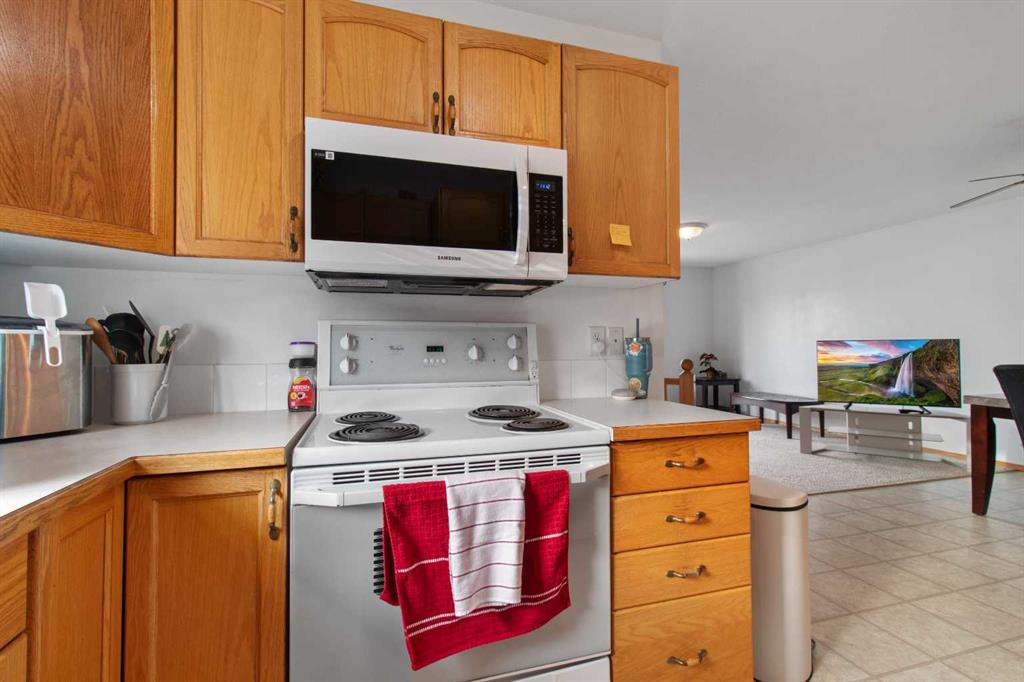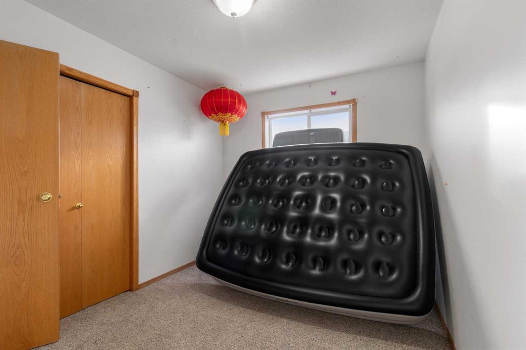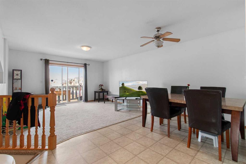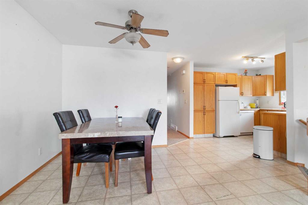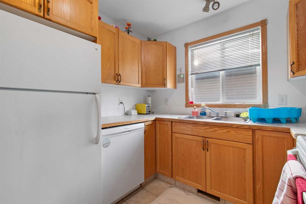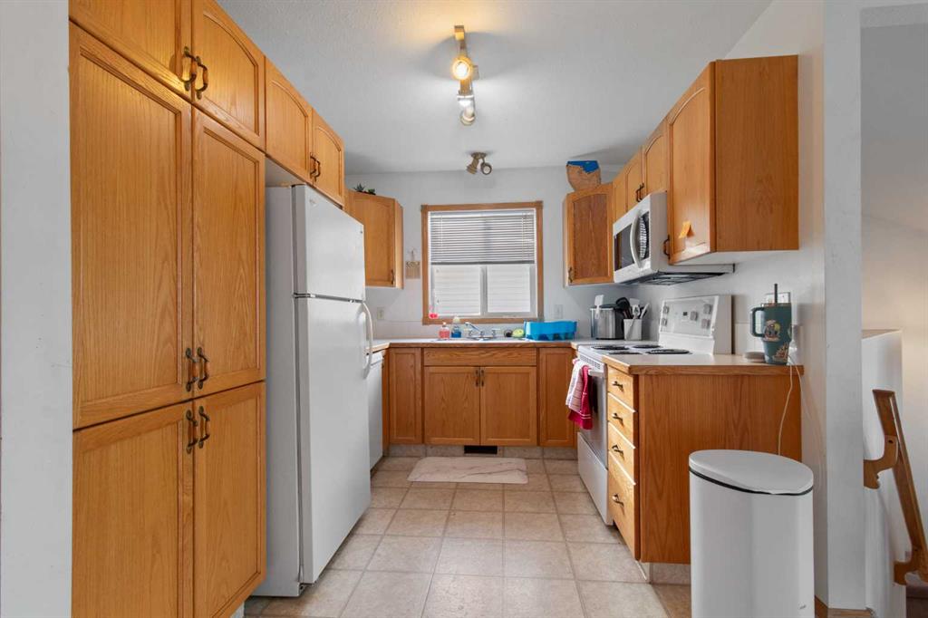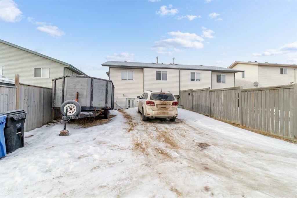 Affordable, functional, and full of potential! This well-maintained half duplex is a great option for first-time buyers, downsizers, or investors. This open-concept layout feels spacious and comfortable. The kitchen is functional and well laid out with all appliances included, plenty of cabinet and counter space, and a window above the sink to let in extra natural light. The living and dining areas offer lots of room to relax or entertain, with large west-facing patio doors leading out to the deck—perfect for catching the evening sun. Three good-sized bedrooms and a full four-piece bathroom complete the main floor. The finished lower level offers great flexibility with an illegal suite featuring one bedroom, a full four-piece bathroom, a living room, and kitchenette, plus a separate entrance and private separation from the upper level—ideal for extended family, tenants, or roommate use. The east-facing backyard is easy to maintain and includes a large gravel parking pad with space for multiple vehicles, plus room for a small RV or trailer. Roof is approx 10 years old and HWT approx 5 years old. Conveniently located within walking distance to downtown amenities, the hockey arena, and the Abbey Centre.