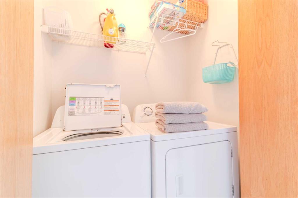 Downstairs fridge, downstairs stacked washer and dryer, shed |