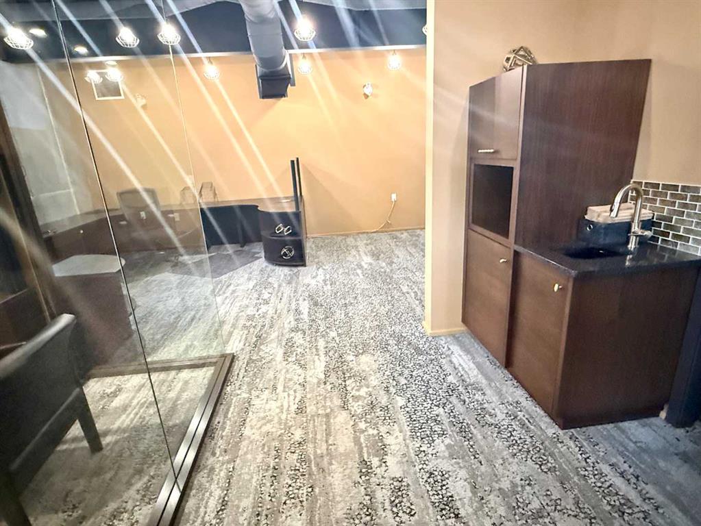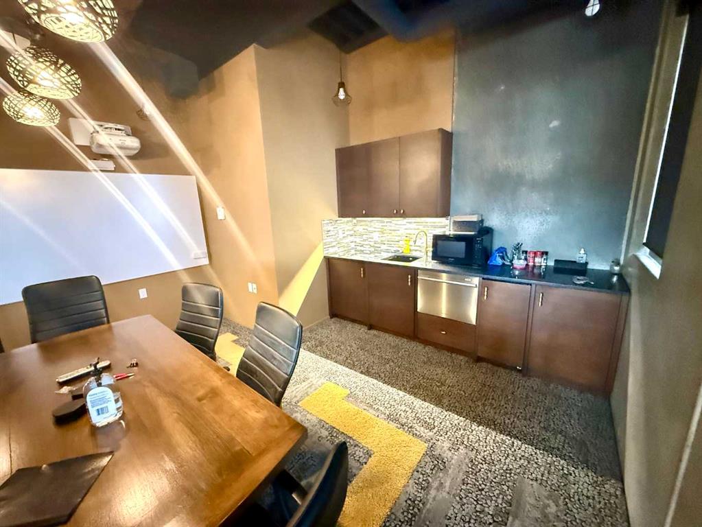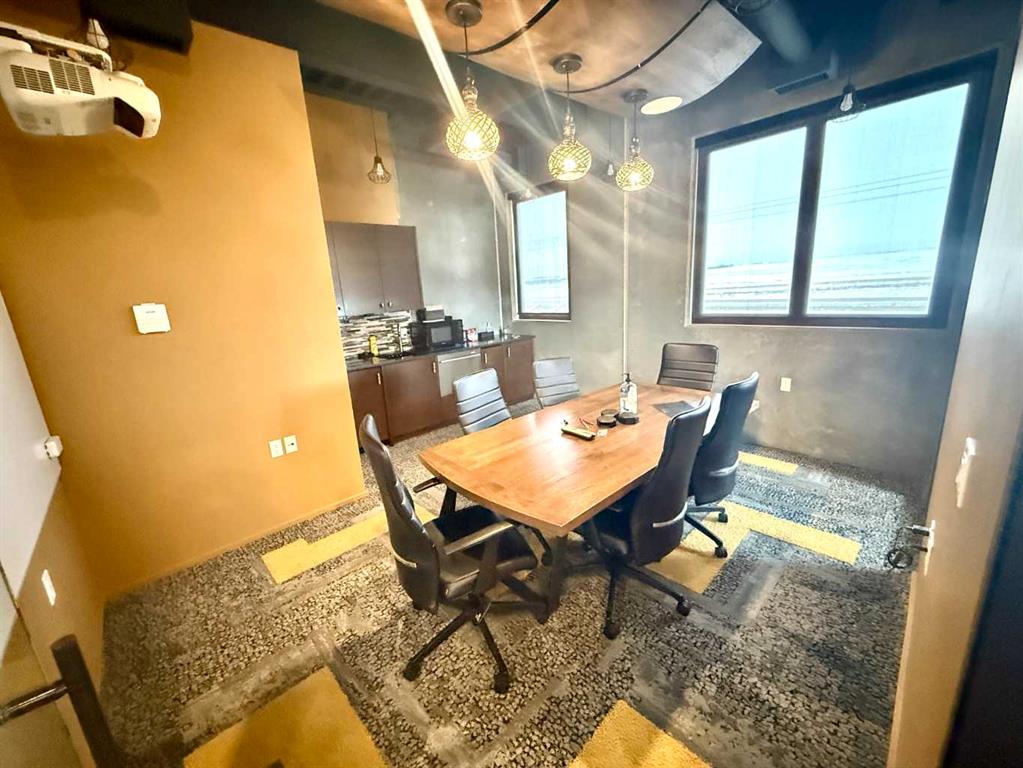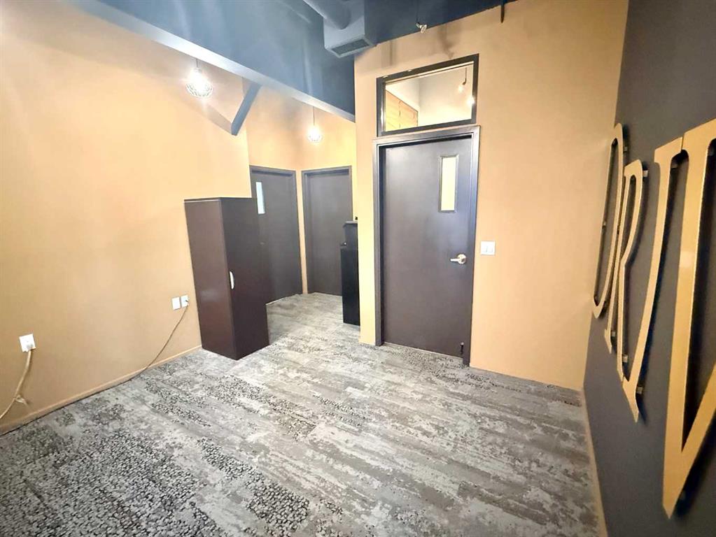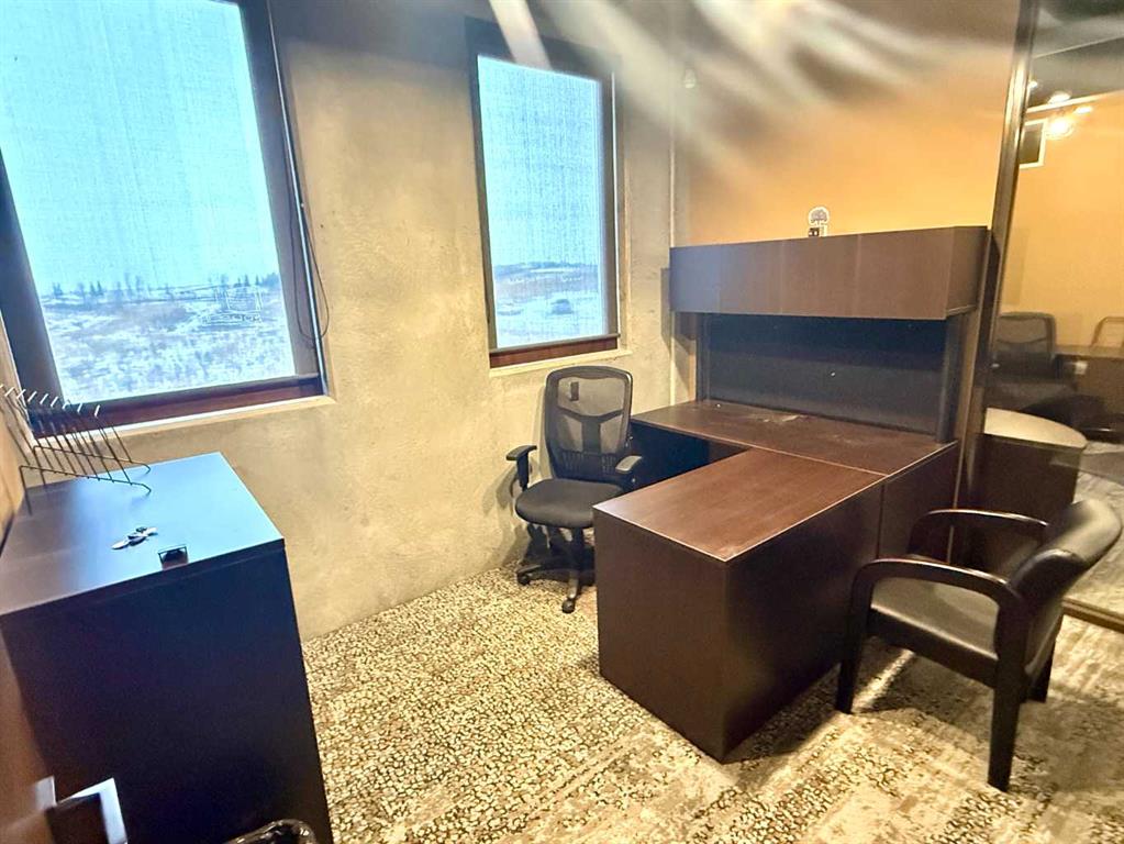 STUNNING OFFICE SPACE FOR LEASE! Featuring Ultra-High end finishes, Glass walls, granite counters, built-in ice machine & more. Featuring Exposure along QE2 and situated on the second floor of the Wood Group Business Centre, this 1111 SQ FT 2-office, boardroom, private bath and spacious reception area screams "Take me now!" Impress your clients and suppliers alike, with award-winning finishes throughout. Make it fun to go to the office, in this efficient CONCRETE BUILDING, with Front and rear parking with a paved lot. Office 1: 9'10"x11", Office 2: 9'10"x12", Boardroom: 11'9"x15'8", Open Office: 25'x9'. Storage mezzanine at the back for file storage. get into this space temporary or on a long term basis with lease rates starting at $16.00/PSF plus NNN costs of $4.00/PSF (includes everything except internet/ phones)