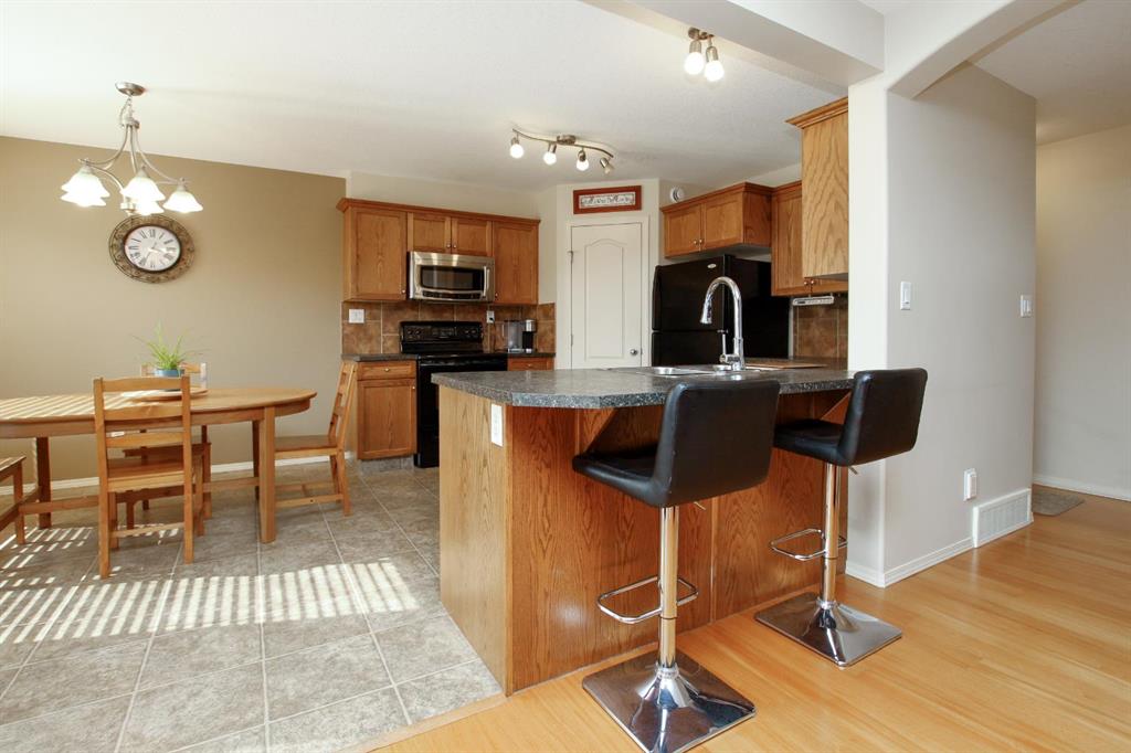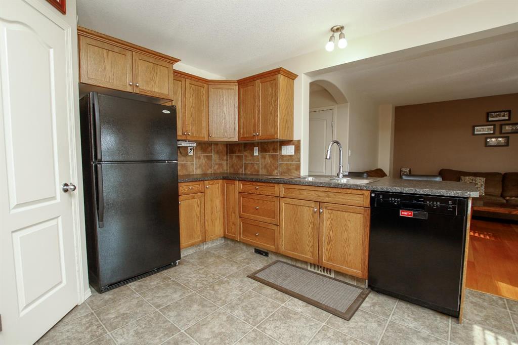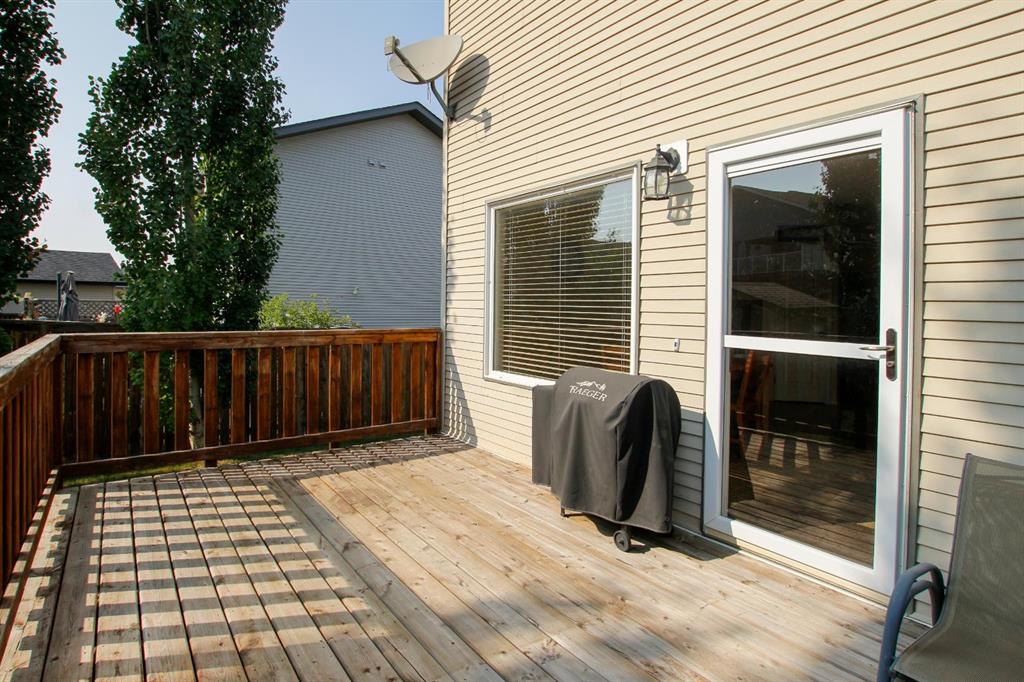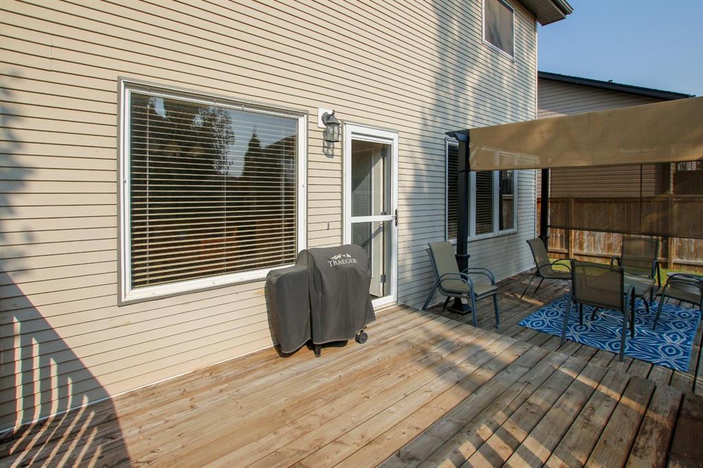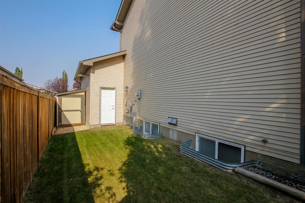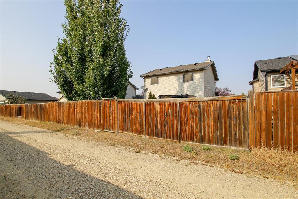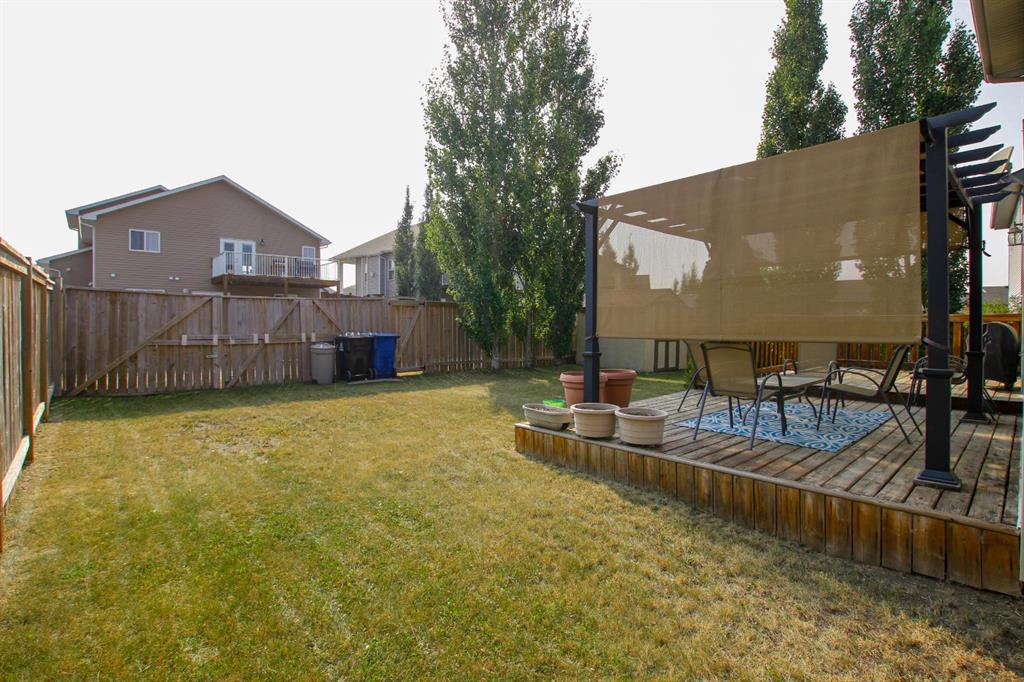 FULLY DEVELOPED 4 BEDROOM, 4 BATHROOM 2-STOREY ~ ORIGINAL OWNER HOME ~ HEATED DOUBLE ATTACHED GARAGE ~ SOUTH FACING BACKYARD W/ALLEY ACCESS & RV GATE ~ Covered front veranda overlooks the front yard and leads to the welcoming foyer ~ The open concept main living space creates a feeling of spaciousness ~ The living room is a generous size and has a large picture window overlooking the deck and backyard ~ The kitchen offers a functional layout with plenty of warm stained wood cabinets, ample counter space, full tile backsplash, corner pantry and an eating bar ~ Host gatherings with ease in the dining room featuring another large window that fills the space with natural light, and garden door access to the two tiered deck with a pergola ~ 2 piece main floor bathroom ~ Conveniently located main floor laundry with built in cabinets and easy access to the garage ~ The primary bedroom can easily accommodate a king size bed plus multiple pieces of furniture, has a walk in closet with built in organizers and a 4 piece ensuite ~ 2 additional bedrooms located on the same level as the primary bedroom are both a generous size with ample closet space, and have easy access to a 4 piece bathroom ~ The fully finished basement offers a family room, 4th bedroom, 4 piece bathroom and space for storage ~ Other great features include; Shingles replaced within the last year, UV window covers on the south facing windows, central vacuum, original owner home ~ The double attached garage is heated, insulated, finished with drywall, has 220V wiring and a man door to the backyard ~ The sunny south facing backyard is landscaped with well established trees, shrubs and perennials, has two sheds, and is fully fenced with alley access and an RV gate with plenty of space to park your RV or toys ~ Located steps to a walking trail system, multiple parks, schools, playgrounds, and shopping ~ Immediate possession and move in ready!