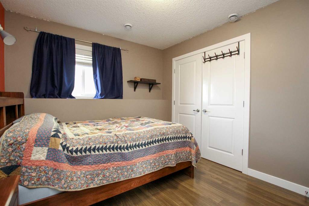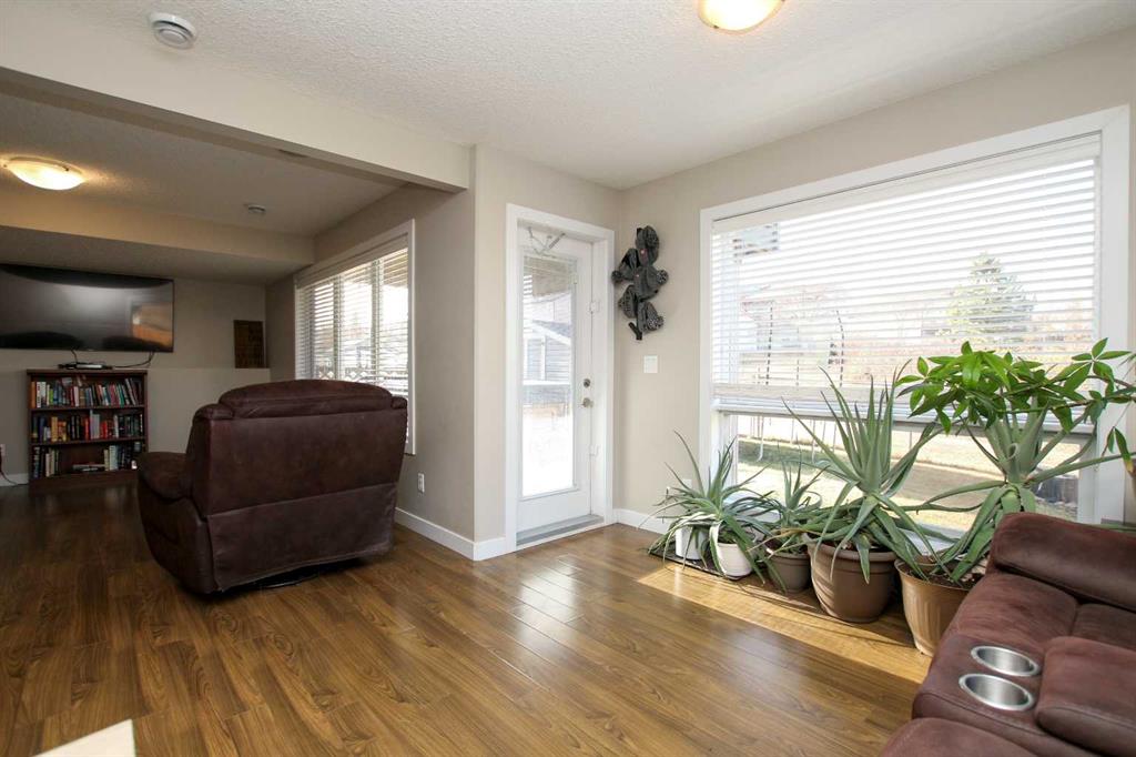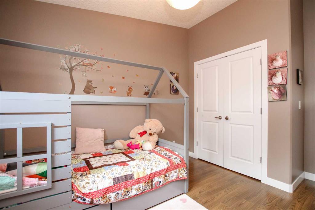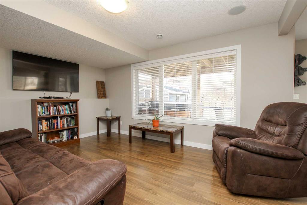 FULLY DEVELOPED 5 BEDROOM, 3 BATHROOM MODIFIED BI-LEVEL ~ WALKOUT BASEMENT ~ BACKING ONTO A WALKING PATH & POND ~ SEPARATE SIDE ENTRY ~ Covered front veranda leads to a welcoming foyer with high ceilings ~ The open concept main living space is complemented by soaring vaulted ceilings and large windows that fill the space with natural light and have views of the natural space just behind ~ The kitchen offers a functional layout with plenty of dark stained cabinets, full tile backsplash, tons of granite counter space including a massive island with pendant lights above, and a walk in pantry ~ Easily host large gatherings in the dining space that's surrounded by floor to ceiling windows, and garden door access to the sunny west facing deck with more great views ~ The spacious living room features a cozy gas fireplace with stacked stone surround, mantle and space for your TV above ~ 2 main floor bedrooms are both a generous size with ample closet space ~ 4 piece main bathroom has an oversized vanity and a linen closet ~ The private primary suite is tucked away on it's own level and features soaring vaulted ceilings, a spa like ensuite with a soaker tub and separate walk in shower, a large walk in closet, and additional storage space ~ Lower level mud room just off the garage has large windows and offers a second, separate entry on the side of the house with access to the basement with conveniently located laundry and a large storage just at the bottom of the stairs ~ The fully finished basement features high ceilings, large above grade windows, built in speakers and operational in floor heat and two laundry hook ups~ Large L-shaped family room with plumbing roughed in for a wet bar has plenty space for a media area and games tables ~ Garden door from the family room walks out to a covered concrete patio with wiring for a hot tub ~ Two basement bedrooms are located adjacent to a 4 piece bathroom and linen closet ~ 25' L x 24' W double attached garage is insulated, finished with painted drywall, has built in shelving, two overhead doors and a man door leading to the front yard ~ The backyard is landscaped, has a fire pit, garden shed, and is fully fenced with direct access to the walking trails and natural reserve just behind ~ Easy access to parks, playgrounds, schools, and shopping ~ Pride of ownership is evident in this well cared for home!