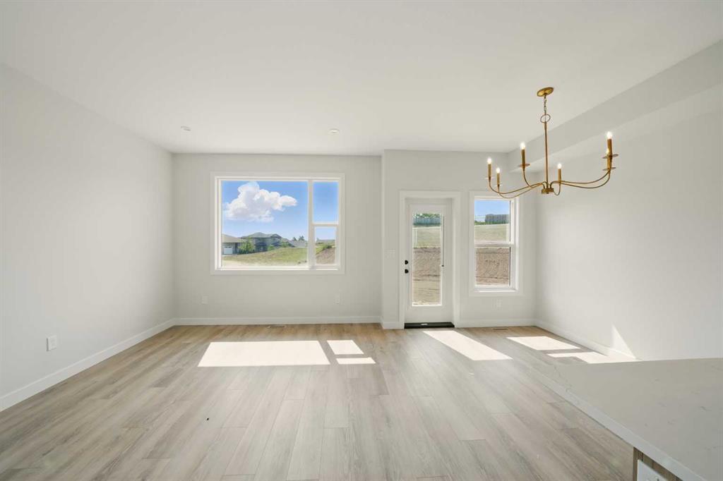 Quality built by Valley Mountain Homes, these brand new duplexes are located on a close. Excellent floor plan with 1205 sq ft on 2 levels and an attached single garage. The main floor has 9' ceilings with an open style floor plan. The kitchen has flat panel melamine cabinets, full tile backsplash, quartz countertops and comes with the fridge, stove, dishwasher and hood fan. The eating area and living room have nice sized windows. There is a garden door out to the deck that has aluminum railings, vinyl decking and a 6' high dividing fence between the units. There is a 2 pce bath on the main floor. Upstairs has 3 bedrooms, the primary is quite large and it has a 4 pce ensuite & walk in closet. The other 2 bedrooms share a 4 pce bath and there is upper floor laundry for your convenience. The WALKOUT basement is undeveloped. The furnace and hot water tank are high efficient.