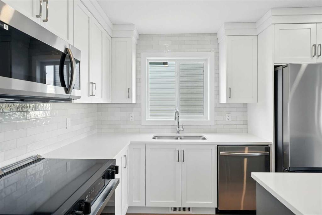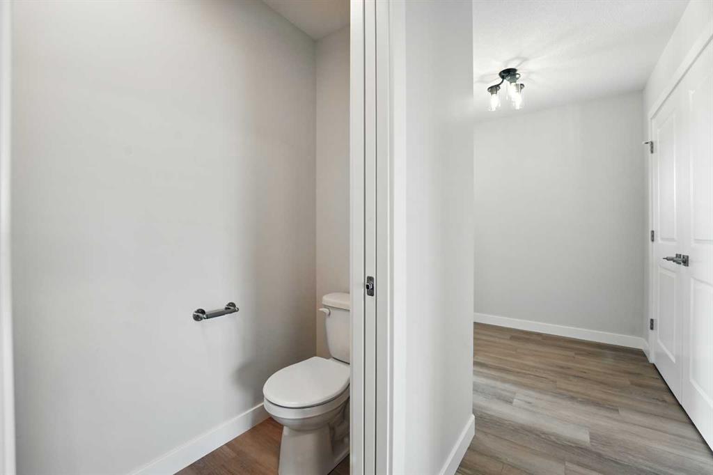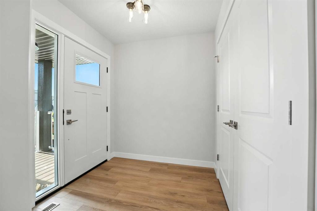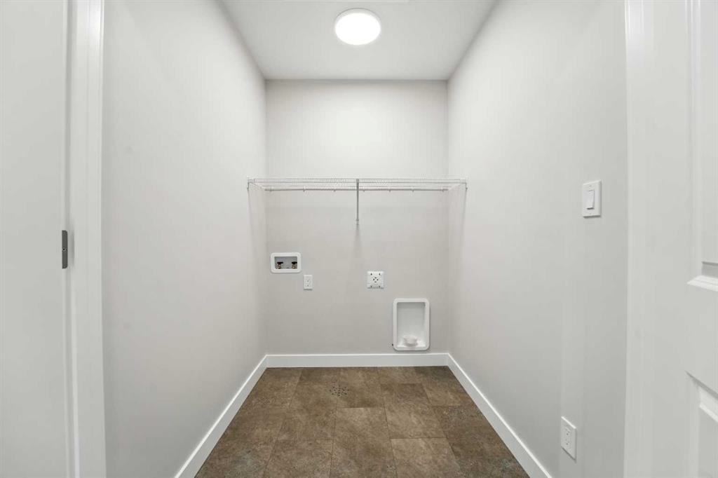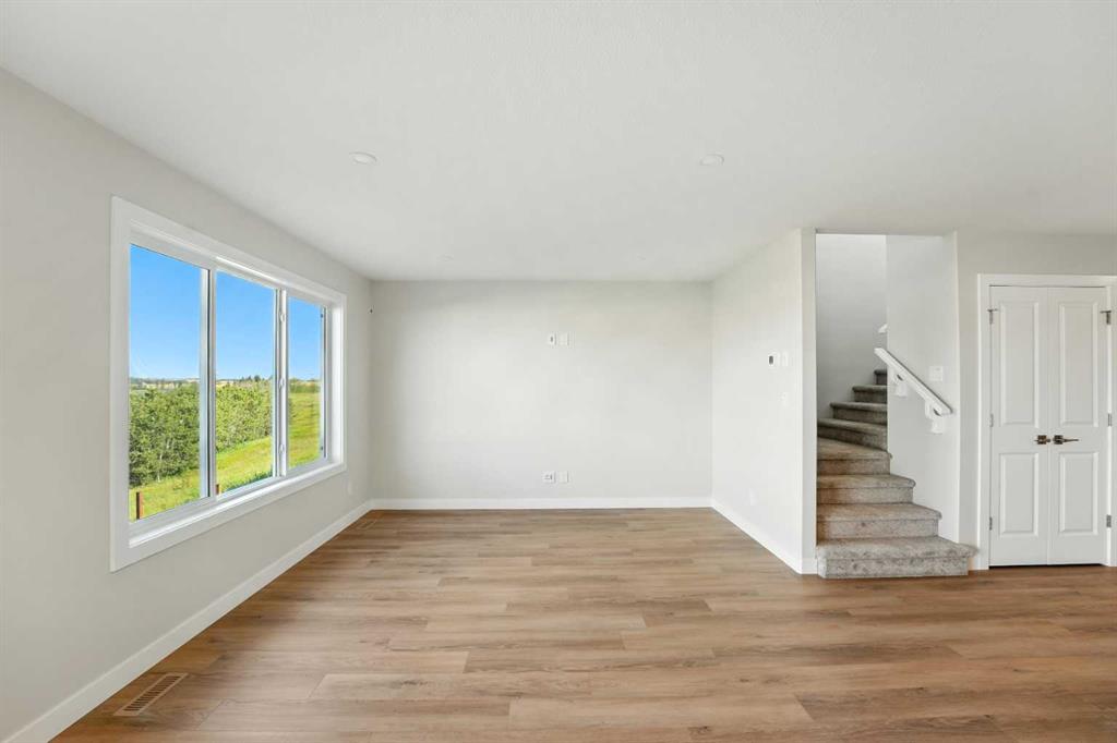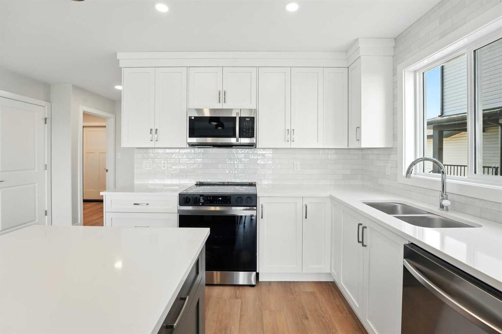 A brand new Larkaun Homes two storey with a front attached triple car garage and a walk-out basement! The curb appeal is accented by the composite-covered front veranda. The front entryway greets you with luxury vinyl plank flooring that spans the entire main floor. Two-toned ceiling height kitchen cabinets are complemented by full tile subway backsplash, quartz countertops, crown moldings, pot/pan drawers and an eating bar island. The dining room has patio doors out to the upper level deck that has a view to the west. The living room is flooded with natural light through the large picture window. You'll appreciate the large back entry way that leads to the triple car garage that boasts 2 floor drains and rough in gas for a future heater. Follow the wrought iron railings up to the second floor. The primary bedroom has a walk-in closet & a 3-piece ensuite with a raised vanity, drawers & a window. There are 2 more bedrooms & a 4-piece bathroom that has a jack & jill divider pocket door for functionality. You'll appreciate the convenience of the upper-floor laundry room. The walk-out basement is ready for your development with rough in underfloor heat and patio doors out to a 10x23 concrete pad and fenced yard. The home includes front sod.
