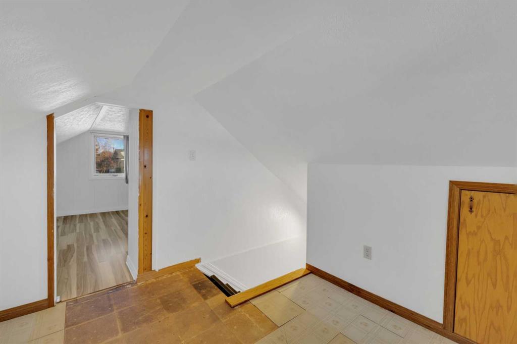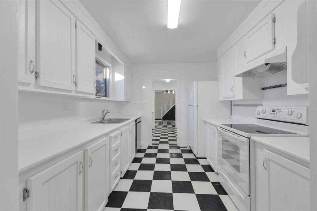 This charming 750.81 sq ft one-and-a-half storey cottage-style home in Delburne offers cozy living with thoughtful updates throughout, featuring two bedrooms including a main-floor primary with a walk-in closet, a second bedroom on the upper level, and a convenient four-piece bathroom with main-level laundry. The inviting living room showcases engineered hardwood flooring and a wood-burning fireplace, while the kitchen and dining area highlight classic black-and-white checkered flooring paired with crisp white cabinets and countertops. Outside, the fully fenced yard includes a covered upper deck with two additional lower-tiered decks, perfect for outdoor enjoyment, along with a single detached garage equipped with a wood stove and attached car port for storage. Recent 2023 upgrades include: a new hot water tank, flooring, dishwasher and dryer. A poured concrete crawl space provides ample storage and houses the furnace and hot water tank, completing this warm and welcoming Delburne home. Delburne, Alberta offers a surprisingly wide range of amenities for a small central-Alberta village, and is located 40 km east of Red Deer. Delburne features a K–12 school, a medical centre with a pharmacy, and high-speed fibre-optic internet, which together make the community practical for families and remote workers. You have access to grocery stores, restaurants, a gas station, walking trails, a spray park, a golf course and so much more. If you are tired of the hustle and bustle lifestyle in a larger area, this may be the perfect place for you to reside.
