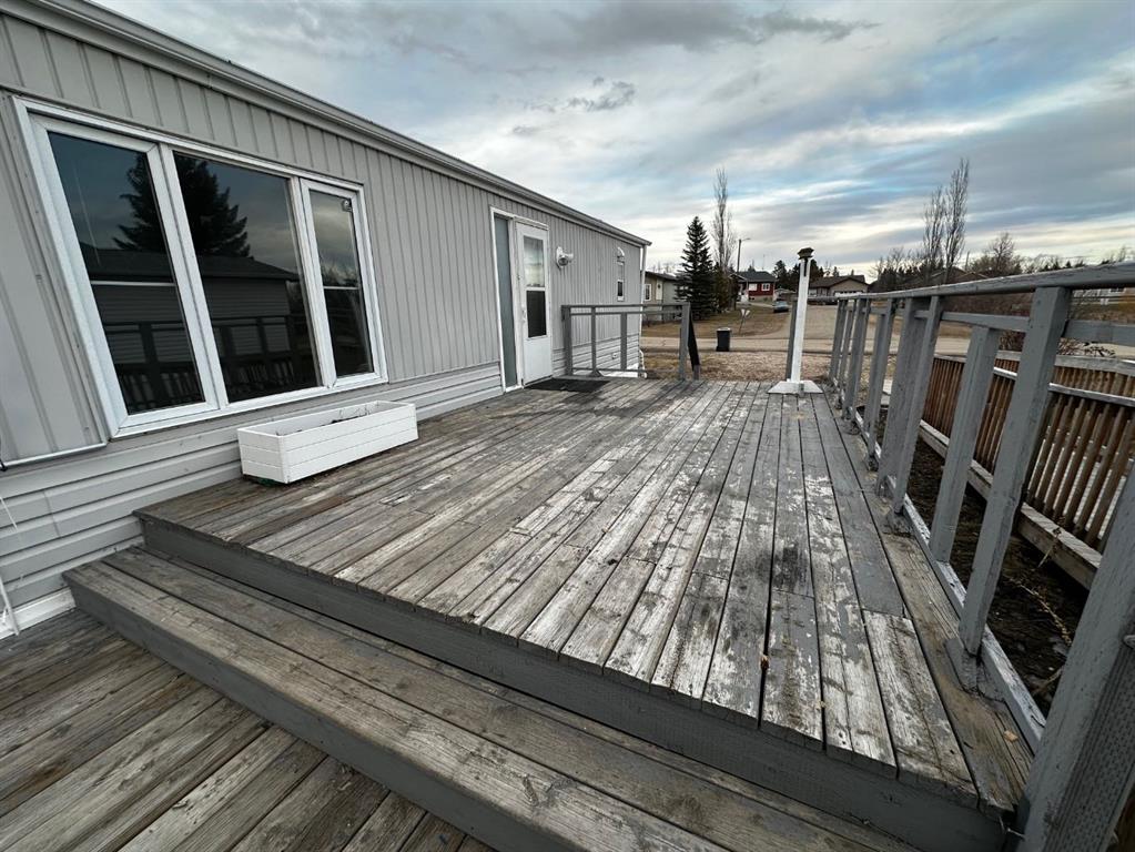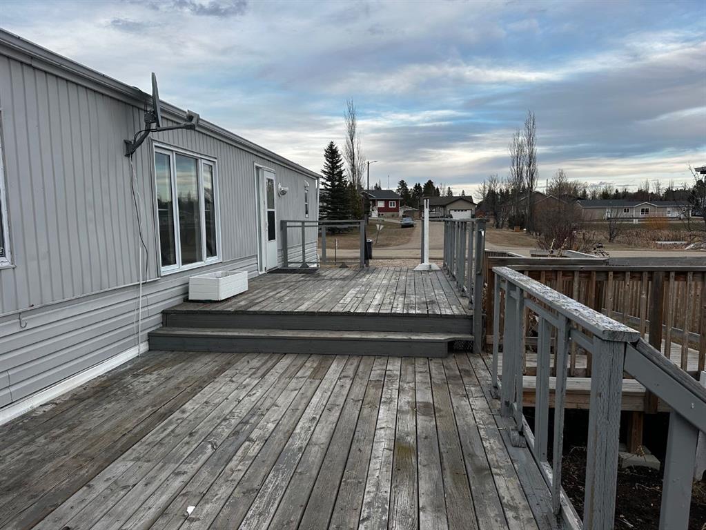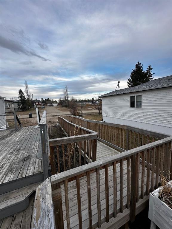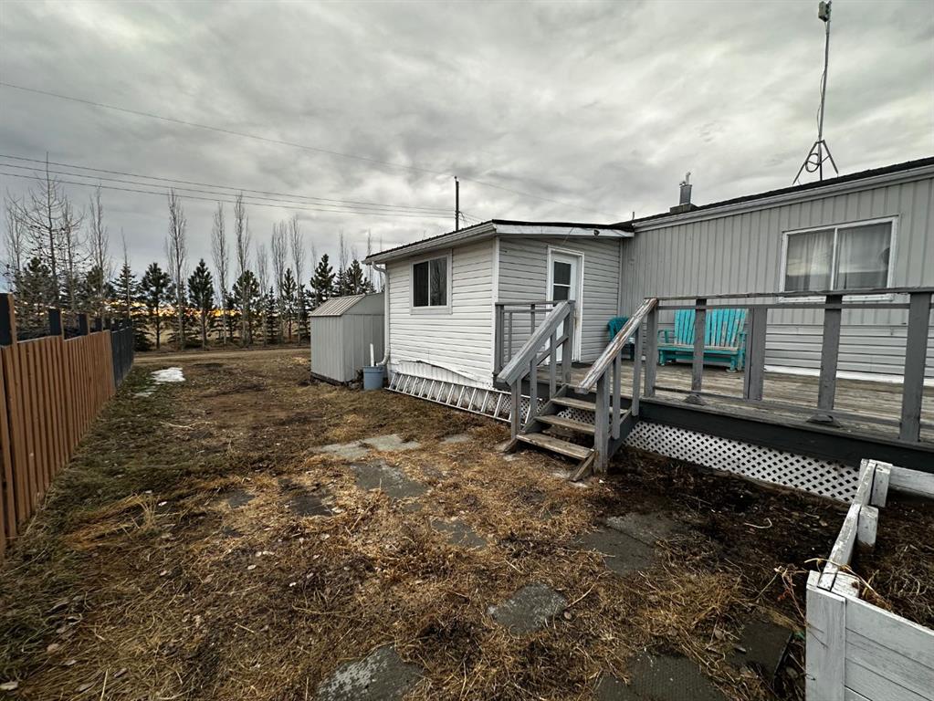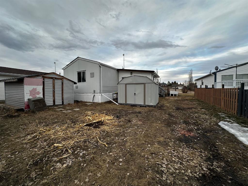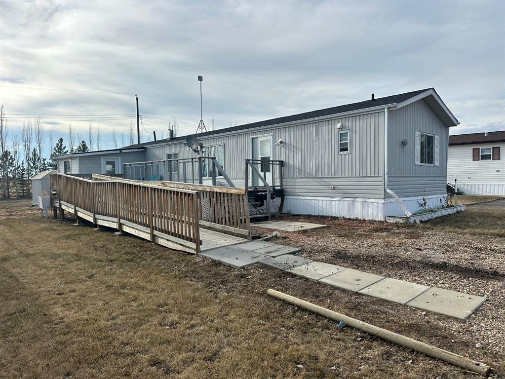 Lovely starter home to break into home ownership!! The home offers 3 bedrooms and two 4pc baths, with an addition mudroom entrance. A spacious open living area with a south-exposure window pouring natural light into the space. The Kitchen offers numerous cabinet storage options. Laundry is located in the hall just adjacent to the mudroom entrance en-route to the primary bedroom. Outside the yard space features a large 2-tier deck space, handicap ramp access and numerous gardening plots for the green thumb in the family. Exterior storage is provided by a metal frame shed 7'X10' and a wood frame garden shed 10'X10', alley access and plenty of room to add both a garage space if desired and fencing for privacy and security. Updates include newer asphalt shingles 2017, and a more recent high-efficiency furnace, & on demand tankless-water heater. Located on the west side of town overlooking a farmer's field with no neighbours behind. Great location and great value to make home ownership a reality.