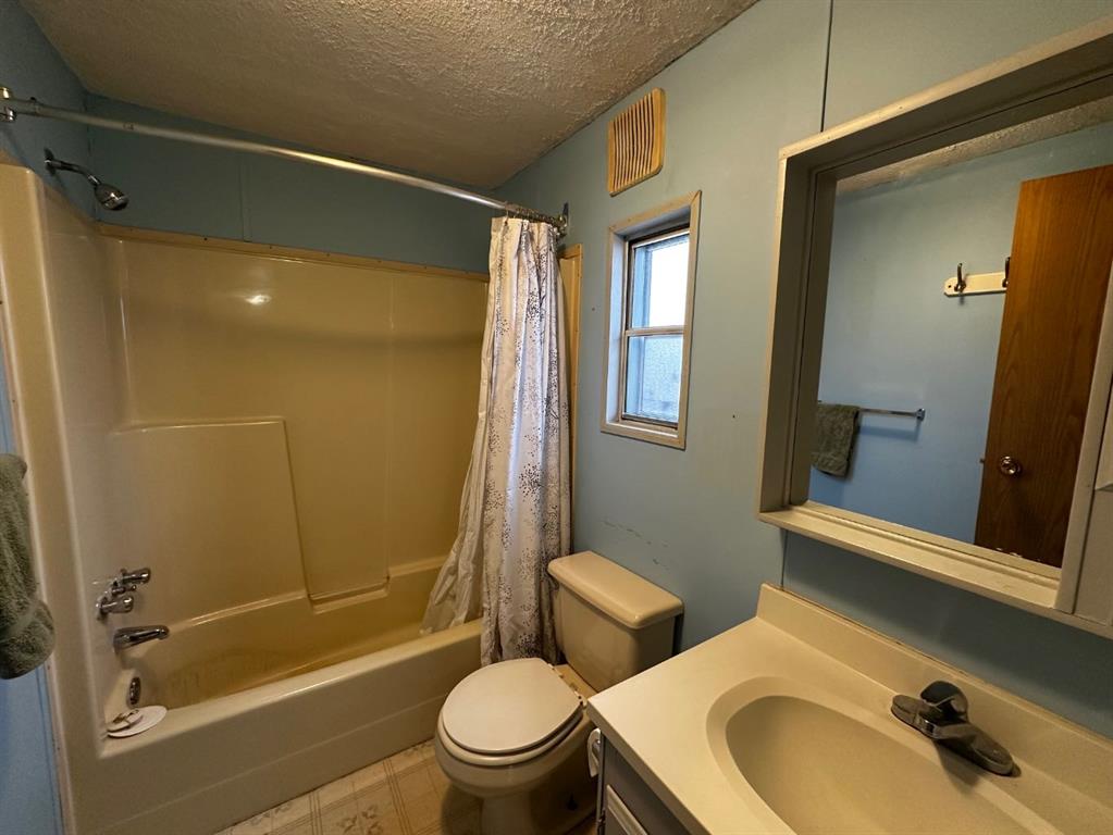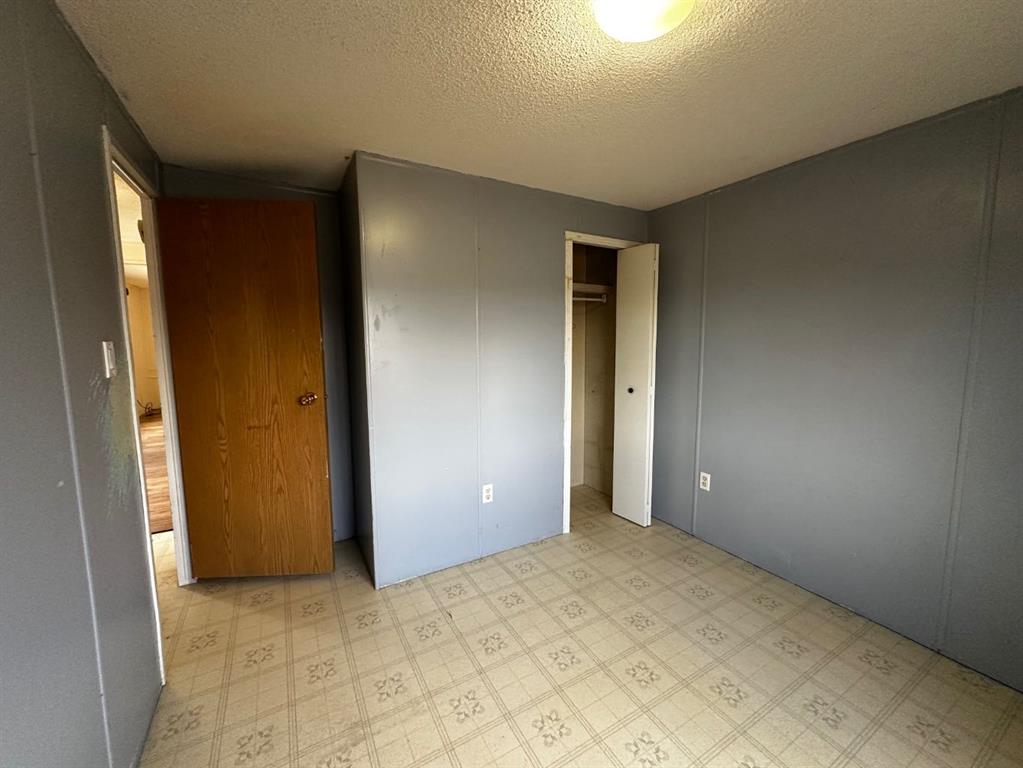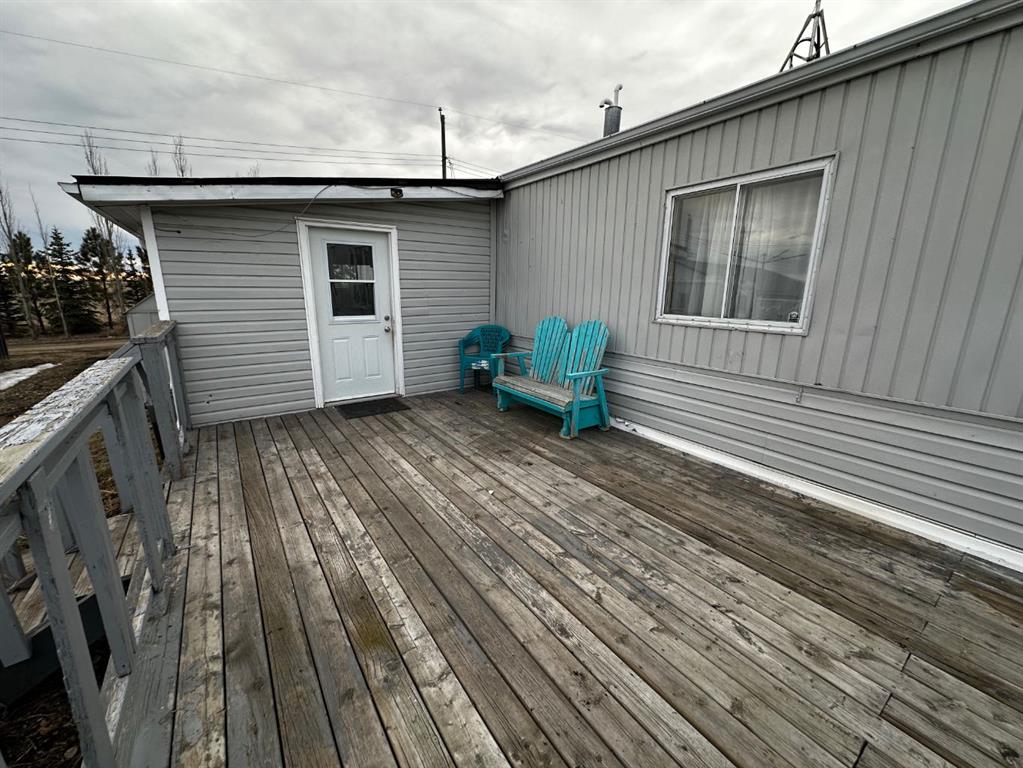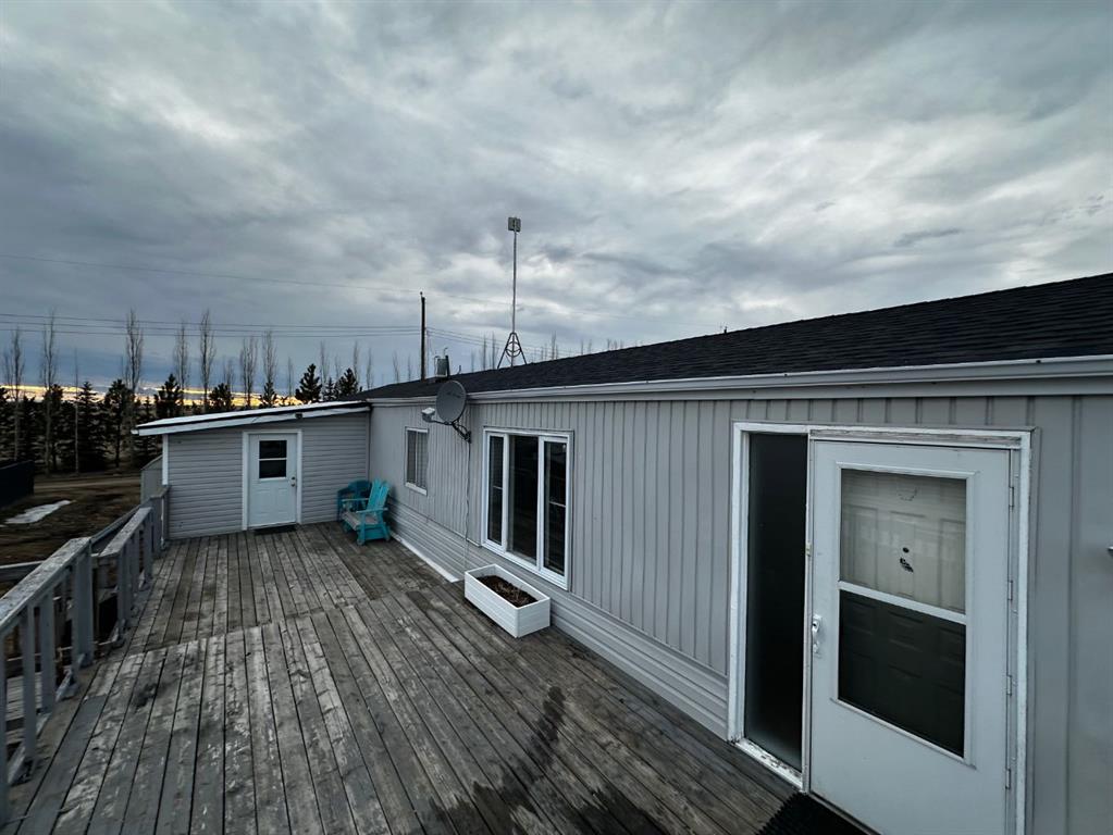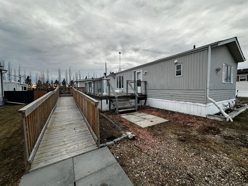 Lovely starter home to break into home ownership!! The home offers 3 bedrooms and two 4pc baths, with an addition mudroom entrance. A spacious open living area with a south-exposure window pouring natural light into the space. The Kitchen offers numerous cabinet storage options. Laundry is located in the hall just adjacent to the mudroom entrance en-route to the primary bedroom. Outside the yard space features a large 2-tier deck space, handicap ramp access and numerous gardening plots for the green thumb in the family. Exterior storage is provided by a metal frame shed 7'X10' and a wood frame garden shed 10'X10', alley access and plenty of room to add both a garage space if desired and fencing for privacy and security. Updates include newer asphalt shingles 2017, and a more recent high-efficiency furnace, & on demand tankless-water heater. Located on the west side of town overlooking a farmer's field with no neighbours behind. Great location and great value to make home ownership a reality.