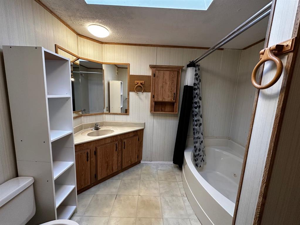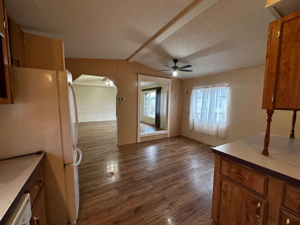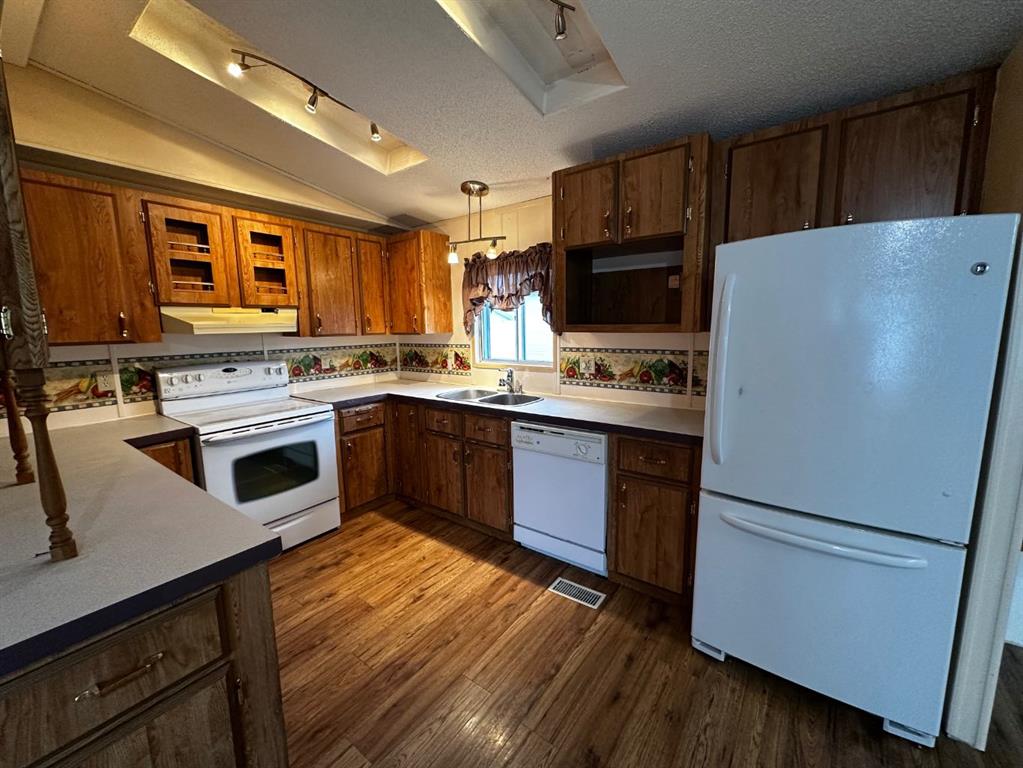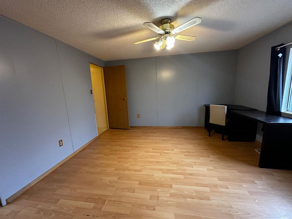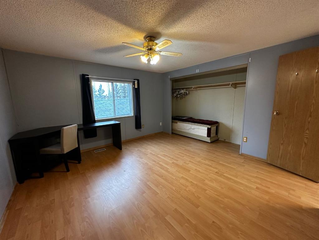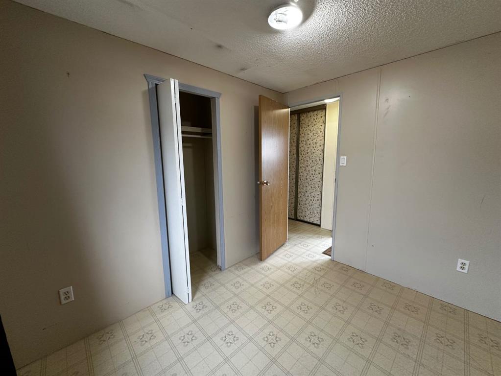 Lovely starter home to break into home ownership!! The home offers 3 bedrooms and two 4pc baths, with an addition mudroom entrance. A spacious open living area with a south-exposure window pouring natural light into the space. The Kitchen offers numerous cabinet storage options. Laundry is located in the hall just adjacent to the mudroom entrance en-route to the primary bedroom. Outside the yard space features a large 2-tier deck space, handicap ramp access and numerous gardening plots for the green thumb in the family. Exterior storage is provided by a metal frame shed 7'X10' and a wood frame garden shed 10'X10', alley access and plenty of room to add both a garage space if desired and fencing for privacy and security. Updates include newer asphalt shingles 2017, and a more recent high-efficiency furnace, & on demand tankless-water heater. Located on the west side of town overlooking a farmer's field with no neighbours behind. Great location and great value to make home ownership a reality.