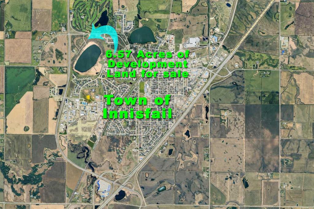 Endless opportunity awaits in Innisfail with this prime 6.57-acre development parcel ideally located within town limits along busy Hwy 42 and directly across from the prestigious 27 hole Innisfail Golf Club, offering exceptional exposure, accessibility, and long-term growth potential. Zoned R-3, this property presents a wide range of development possibilities including single-family homes, multi-family projects, commerical or innovative mixed-use concepts (subject to town approval), making it highly attractive for builders, investors, and developers looking to capitalize on a strategic location. A standout feature is the rare Napoleon Lake frontage, adding natural beauty, premium lot potential, and enhanced market appeal to any future project. With strong visibility, high traffic counts, and proximity to key amenities, this parcel is perfectly positioned for success in a growing community. Innisfail continues to attract attention for its balance of small-town charm and modern convenience, offering parks, recreation, strong local economy, and easy access to major transportation routes—making it not only a smart investment, but a fantastic place to live, build, and grow.