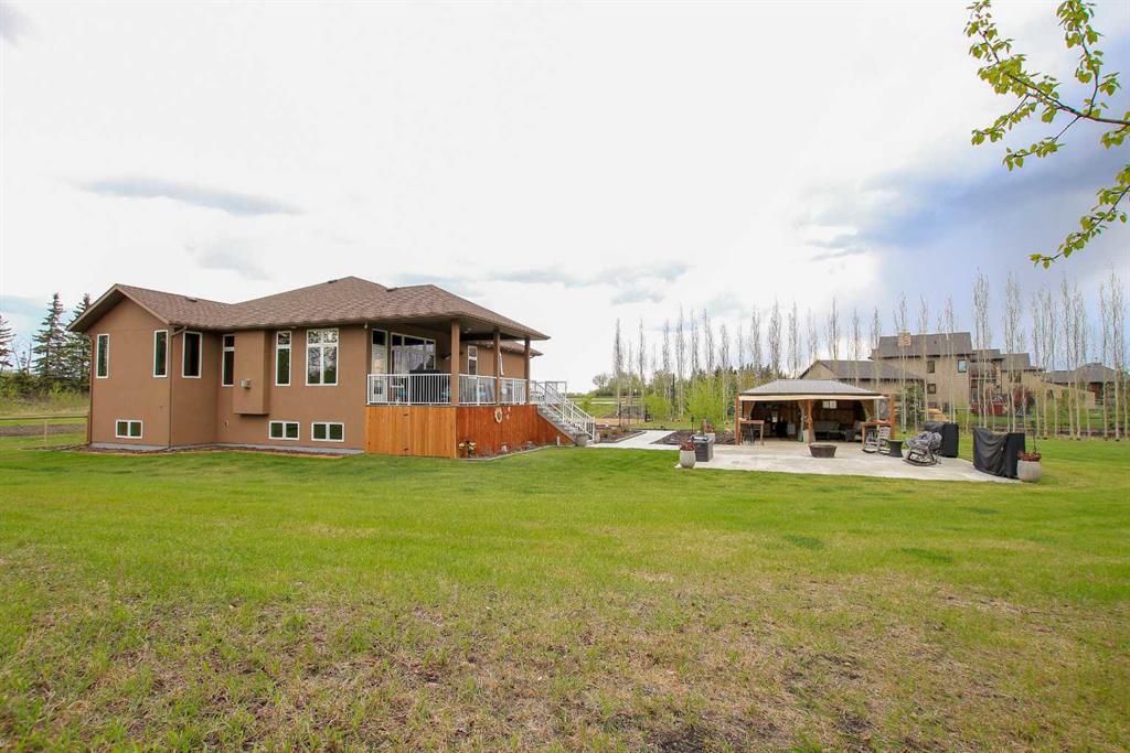 CUSTOM BUILT 5 BEDROOM, 3 BATH BATH BUNGALOW ~ FULLY DEVELOPED W/OVER 3700 SQ. FT. OF LIVING SPACE ~ HEATED 4 CAR GARAGE ~ 10.9 ACRES, ZONED AG & OPTION TO ADD SECOND RESIDENCE/POTENTIAL TO SUBDIVIDE, OPERATE A BUSINESS OR HAVE LIVESTOCK ~ Stucco and stone exterior offer eye catching curb appeal to this well cared for home ~ Poured concrete sidewalk leads to the covered front entry ~ Step into the large sun filled foyer with tile flooring ~ Open concept main floor layout is complemented by 10' ceilings and hardwood flooring that create a feeling of spaciousness ~ The stunning kitchen offers an abundance of warm stained maple cabinets, beautiful Labradorite stone countertops, hexagon tile backsplash, huge island with an eating bar, and upgraded stainless steel appliances (gas range, French door fridge) ~ The living room has large west facing windows and is centred by a cozy gas fireplace ~ Easily host large gatherings in the spacious dining room with more large windows plus garden doors leading to a partially covered south facing deck, with a BBQ gas line, perfect for indoor/outdoor living ~ The private primary bedroom can easily accommodate a king size bed plus multiple pieces of furniture and room for a sitting area, has a walk in closet with built in organizers and a spa like ensuite with dual sinks, a walk in shower and heated, jetted tub ~ Two main floor bedrooms are both a generous size with ample closet space (one is currently being used as an office) ~ 4 piece main floor bathroom ~ Mud room with access to the attached garage has front load laundry pair, built in cabinets with a stone folding counter and sink, built in shelving and a coat closet ~ The fully finished basement has 9' ceilings, in floor heat and tile flooring throughout ~ Large open concept family room has a full wet bar with custom maple cabinets, stone countertops, tile backsplash and full size appliances with ample space for a dining table and chairs, pool table and a sitting room/media space ~ 2 generous size bedrooms share a 4 piece bathroom ~ Huge utility room has endless space for storage ~ Heated 58' x 28' attached garage is separated in to two bays, features 220V wiring, hot and cold taps, humidity fans, floor drains, has a workshop space, shelving and is insulated with painted drywall ~ Just outside the garage is full RV hook ups with a 30 amp power, water and sewer dump ~ Garden area has a greenhouse with power and water ~ Large fenced area is landscaped with tons of mature trees offering privacy and shade, views of the creek ~ Just off the deck is a huge poured concrete patio with a large fire pit area, enclosed gazebo w/power, water, gas line, and an attached pergola ~ Through the trees is an ATV/walking path leads to the backside of the property with open pasture, mature trees, tons of wildlife, and Sylvan Creek running through ~ Many more great features in this original owner home ~ Located west of Red Deer on Burnt Lake Trail w/pavement to the driveway.