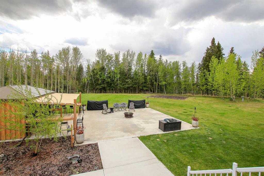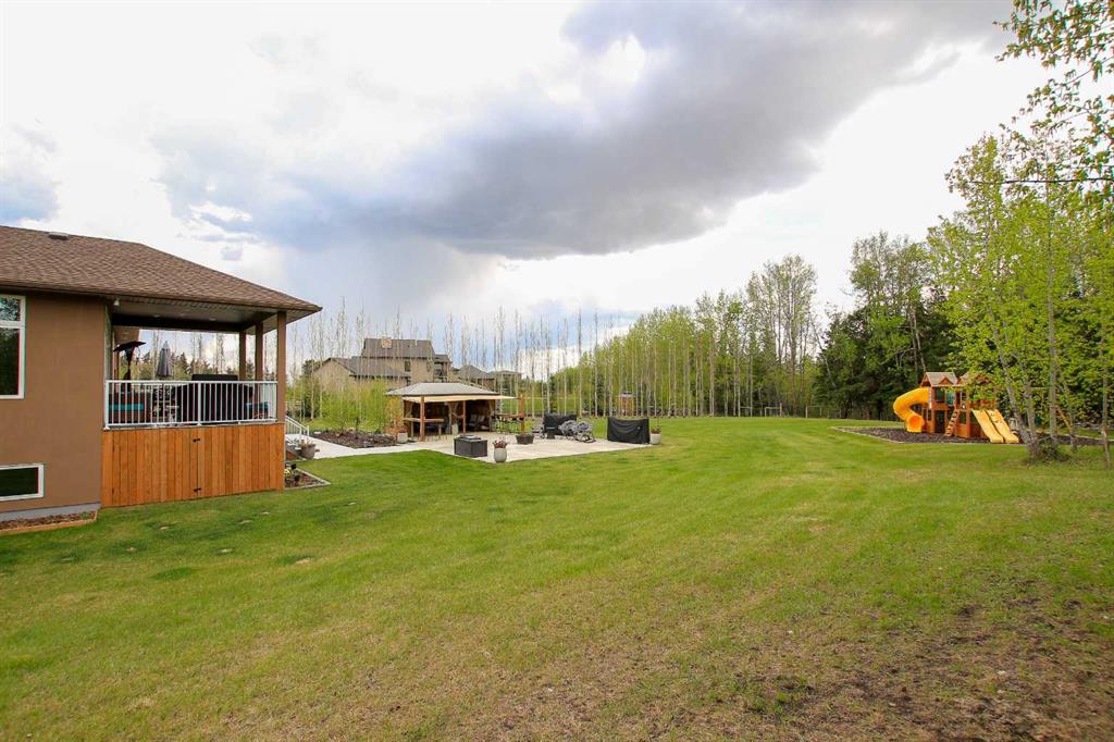 CUSTOM BUILT 5 BEDROOM, 3 BATH BATH BUNGALOW ~ FULLY DEVELOPED W/OVER 3700 SQ. FT. OF LIVING SPACE ~ HEATED 4 CAR GARAGE ~ 10.77 ACRES, ZONED AG & OPTION TO ADD SECOND RESIDENCE/POTENTIAL TO SUBDIVIDE, OPERATE A BUSINESS OR HAVE LIVESTOCK ~ Stucco and stone exterior offer eye catching curb appeal to this well cared for home ~ Poured concrete sidewalk leads to the covered front entry ~ Step into the large sun filled foyer with tile flooring ~ Open concept main floor layout is complemented by 10' ceilings and hardwood flooring that create a feeling of spaciousness ~ The stunning kitchen offers an abundance of warm stained maple cabinets, beautiful Labradorite stone countertops, hexagon tile backsplash, huge island with an eating bar, and upgraded stainless steel appliances (gas range, French door fridge) ~ The living room has large west facing windows and is centred by a cozy gas fireplace ~ Easily host large gatherings in the spacious dining room with more large windows plus garden doors leading to a partially covered south facing deck, with a BBQ gas line, perfect for indoor/outdoor living ~ The private primary bedroom can easily accommodate a king size bed plus multiple pieces of furniture and room for a sitting area, has a walk in closet with built in organizers and a spa like ensuite with dual sinks, a walk in shower and heated, jetted tub ~ Two main floor bedrooms are both a generous size with ample closet space (one is currently being used as an office) ~ 4 piece main floor bathroom ~ Mud room with access to the attached garage has front load laundry pair, built in cabinets with a stone folding counter and sink, built in shelving and a coat closet ~ The fully finished basement has 9' ceilings, in floor heat and tile flooring throughout ~ Large open concept family room has a full wet bar with custom maple cabinets, stone countertops, tile backsplash and full size appliances with ample space for a dining table and chairs, pool table and a sitting room/media space ~ 2 generous size bedrooms share a 4 piece bathroom ~ Huge utility room has endless space for storage ~ Heated 58' x 28' attached garage is separated in to two bays, features 220V wiring, hot and cold taps, humidity fans, floor drains, has a workshop space, shelving and is insulated with painted drywall ~ Just outside the garage is full RV hook ups with a 30 amp power, water and sewer dump ~ Garden area has a greenhouse with power and water ~ Large fenced area is landscaped with tons of mature trees offering privacy and shade, views of the creek ~ Just off the deck is a huge poured concrete patio with a large fire pit area, enclosed gazebo w/power, water, gas line, and an attached pergola ~ Through the trees is an ATV/walking path leads to the backside of the property with open pasture, mature trees, tons of wildlife, and Sylvan Creek running through ~ Many more great features in this original owner home ~ Located west of Red Deer on Burnt Lake Trail w/pavement to the driveway.
