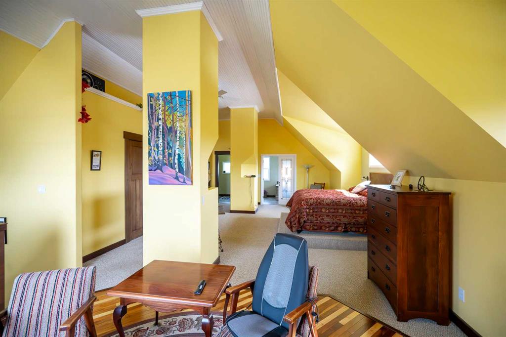 Enjoy year-round recreation with a private dock, skating, kayaking, greenhouse, RV hookups, and nearby access to Glennifer Lake. Conveniently located in the Raven Area, just minutes to Spruce View, Innisfail, and Red Deer—this is luxury country living at its finest.