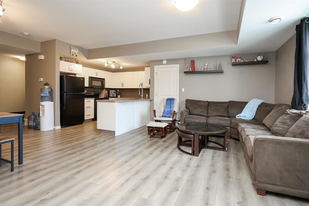 2 BEDROOM, 2 BATHROOM MAIN FLOOR CONDO ~ WEST FACING ~ LOW MAINTENANCE LIVING ~ Covered front entry and patio area welcome you to this move in ready home ~ Spacious foyer with a large coat closet opens to the open concept main living space with large west facing window and vinyl plank flooring ~ The u-shaped kitchen offers a functional layout and features ample cabinet and counter space, including an eating bar, full tile backsplash, and black appliances ~ easily host gathering in the dining room ~ Just off the kitchen is a storage/flex room ~ The primary bedroom can easily accommodate a king size bed plus multiple pieces of furniture, has a walk in closet with built in organizers, and a 4 piece ensuite ~ Second bedroom is also a generous size with ample closet space ~ Conveniently located laundry is next to the 4 piece main bathroom ~ Low monthly condo fees are $365.54 and include; exterior insurance, maintenance grounds, parking, professional management, reserve fund contributions, sewer, snow removal, trash and water ~ 2 Powered parking stalls right in front of the main level door offer easy access ~ Located just minutes south of Red Deer and Gasoline Alley (Walmart, Costco, Farmer's Market & tons more shopping and amenities), close to Penhold (schools with bus service, shopping), with quick access to highway 2 ~ This community offers beautiful walking trails through natural wetlands, along with numerous parks and playgrounds ~ Enjoy the serenity of a country setting while maintaining every day convenience.