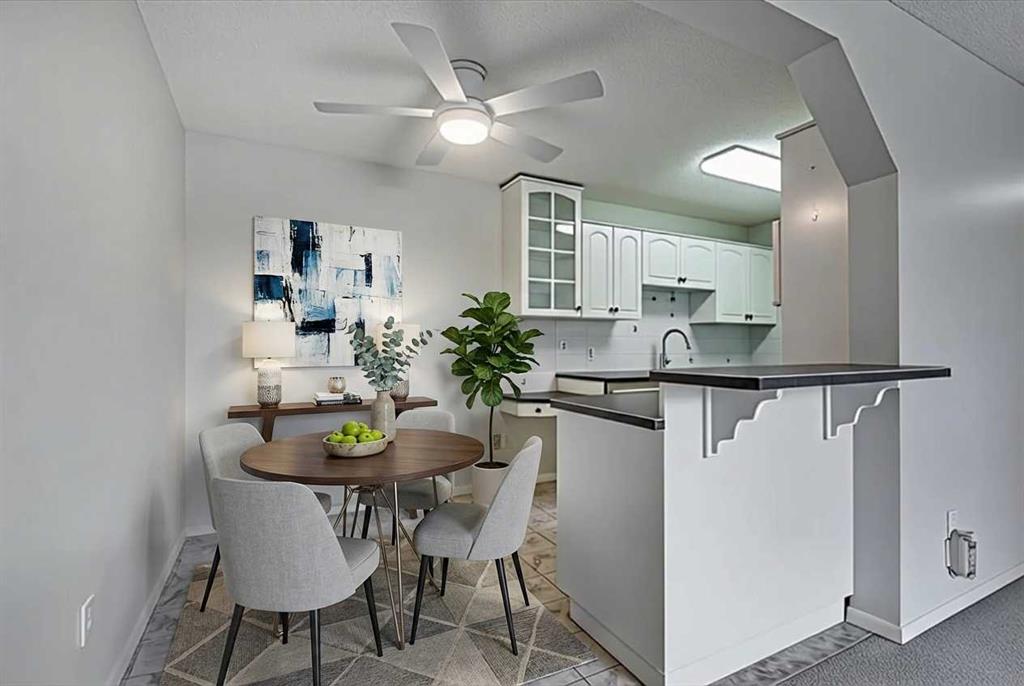 The spacious bedroom is complemented by a full four-piece bathroom, while in-suite storage and an additional assigned storage locker add valuable convenience. The unit has been recently refreshed with professional painting throughout, updated LED lighting and ceiling fan in the kitchen, a freshly finished gas fireplace, and professionally cleaned carpets and flooring—offering a clean, move-in-ready feel that stands out in today’s market.