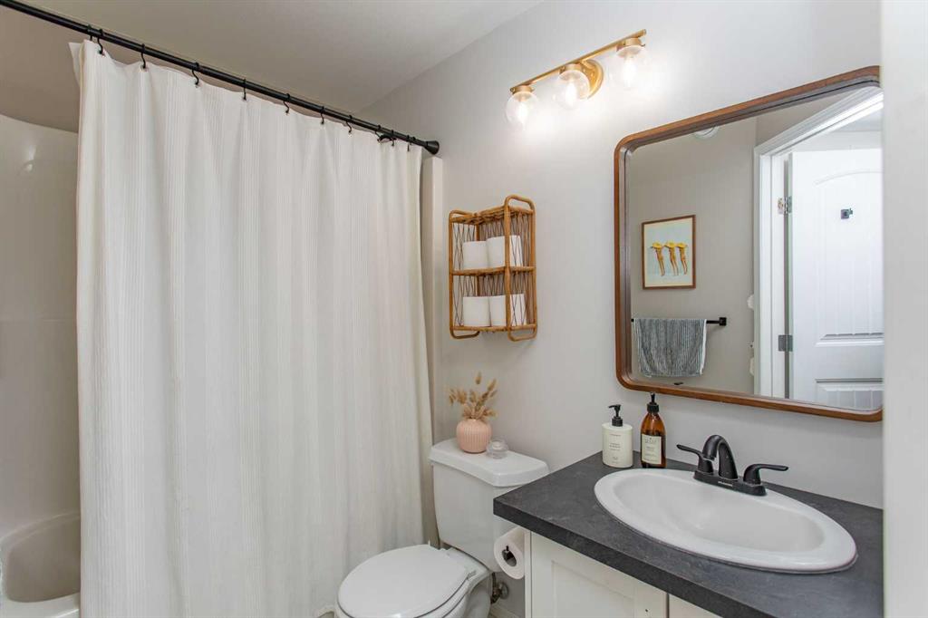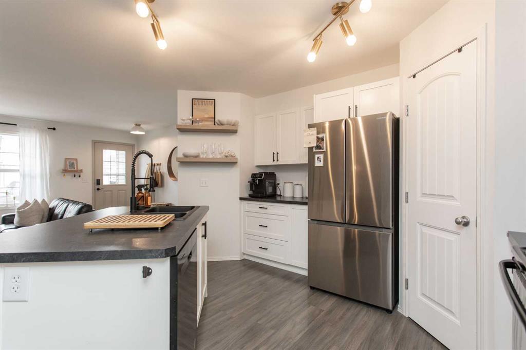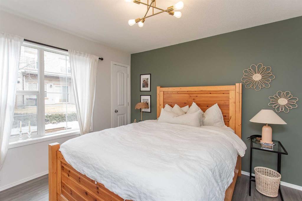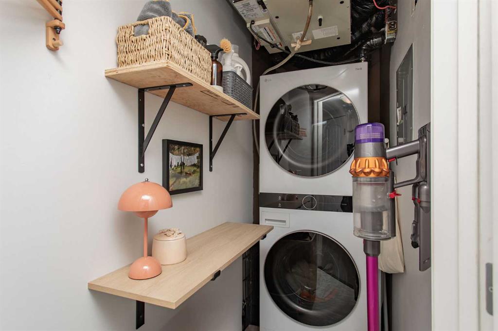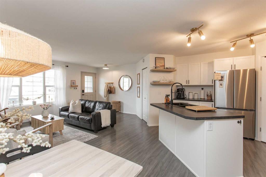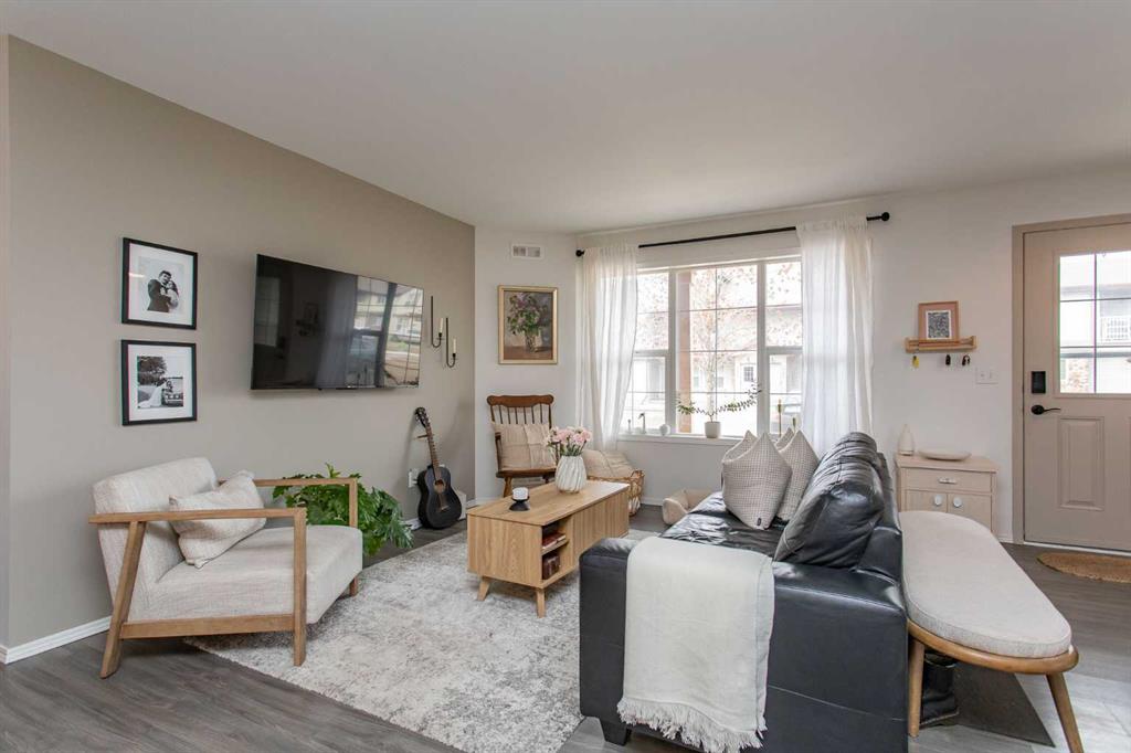 Step into effortless style with this beautifully designed 2 bedroom ground level condo, where chic meets boho charm. Thoughtfully curated with warm textures, soft tones and artistic flair this home offers a space that feels both relaxed and refined. Whether your a first time buyer or even a downsizer wanting a seasonal home this condo can deliver a blend of comfort and lifestyle. Every detail has been intentionally considered for those who appreciate design. A soothing color pallet flows through the entire unit which is also complimented by the soft grey laminate flooring throughout. A front conversation room welcomes you and opens seamlessly to the rest of the floor plan, creating a bright connected space perfect for both relaxing and entertaining. All areas of the kitchen have been improved on which includes newer counter top, refaced kitchen cabinets, appliances, lighting, fixtures as well as floating display shelving. The deep corner pantry is ideal for extra food storage as well as counter top appliances. A well rounded dining space is perfect for family and friends to stop in and enjoy a meal together. Two bedroom design each offers a great amount of closet space plus the guest room boasts sliding door access out to the exclusive patio area ideal for small bbq or cafe style furniture. The in suite laundry has been updated with a newer stacker model flat face washer/dryer as well some additional storage shelving has been added. An updated main bath is complimented with design features to the lighting and all fixtures. The Rinnai On Demand hot water system was replaced just a couple years ago and just recently the owners had the system serviced for its scheduled maintenance. There is a small green space between the neighboring buildings which allows a little more easement between occupants plus this unit comes with two parking stalls right out your front door. Low monthly condo fees which cover exterior maintenance costs free up more of your own personal time to enjoy and appreciate. Complex is nicely located close to neighborhood shopping and amenities, plus offers great access to major highways in both directions.