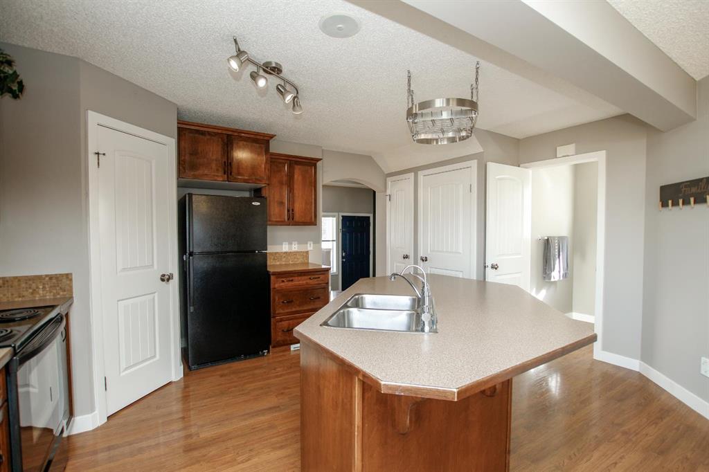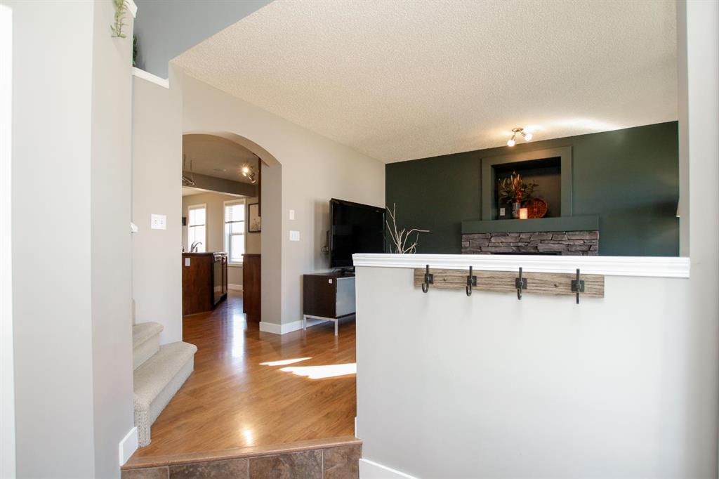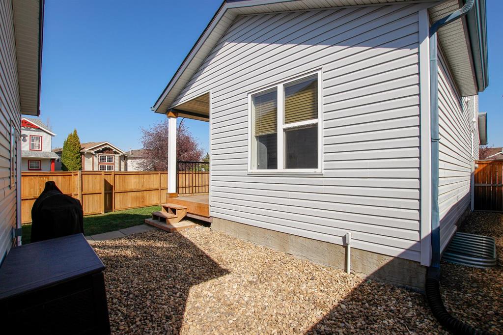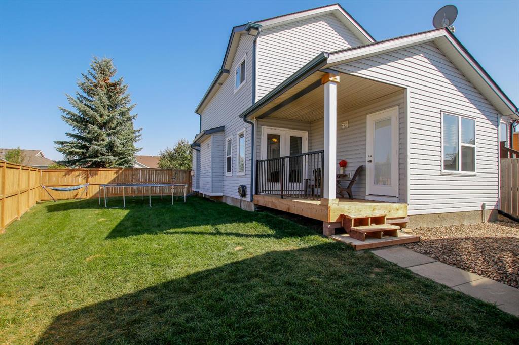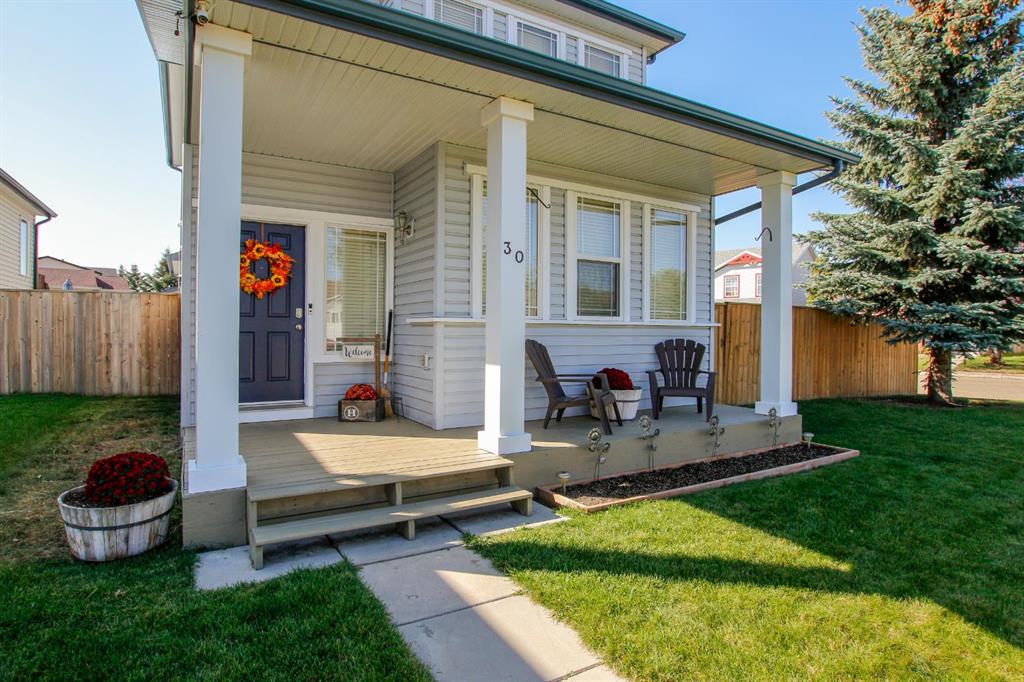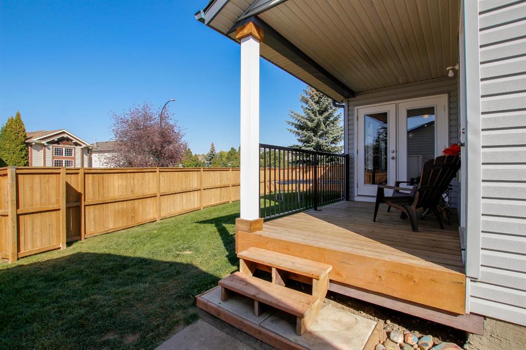 4 BEDROOM, 4 BATHROOM 2-STOREY WITH OVER 1540 SQ. FT. ABOVE GRADE ~ FULLY FINISHED BASEMENT ~ 24' X 22' DETACHED GARAGE ~ CORNER LOT WITH A WEST FACING BACKYARD ~ Covered front veranda that spans the front of the home welcomes you ~ The welcoming foyer has tile flooring and over 18' high ceilings that open to the upper level ~ The living room features large windows that fill the space with natural light and a cozy gas fireplace with stone details and a TV mount above ~ The kitchen offers a functional layout with plenty of dark stained cabinets, ample counter space including a massive island with an eating bar, full tile backsplash and a walk in corner pantry ~ 2 piece main floor bath ~ Easily entertain guests in the spacious dining room with an abundance of large windows and garden door access to the covered deck and backyard ~ The conveniently located main floor primary bedroom can easily accommodate a king size bed plus multiple pieces of furniture, has a second garden door to the covered deck, a walk in closet with built in organizers and a 4 piece ensuite bathroom ~ Open staircase with more large windows offering natural light leads to the upper level bonus room ~ 2 generous size bedrooms with ample closet space share a 4 piece bathroom with an oversized vanity and built in linen shelving ~ The fully finished basement has a huge family room, 4th bedroom, 4 piece bathroom, laundry with a sink and tons of storage throughout ~ Other great features include; built in audio system, central vacuum with kitchen kick pan ~ The sunny west facing backyard is landscaped, fully fenced and has access to the side street and back alley ~ 24' long x 22' wide double detached garage is insulated and finished with O.S.B. ~ Excellent location; steps to multiple parks, playgrounds and walking trails, walking distance to multiple schools, rec centres and tons of shopping, dining, and all other amenities ~ Move in ready!