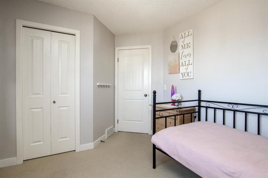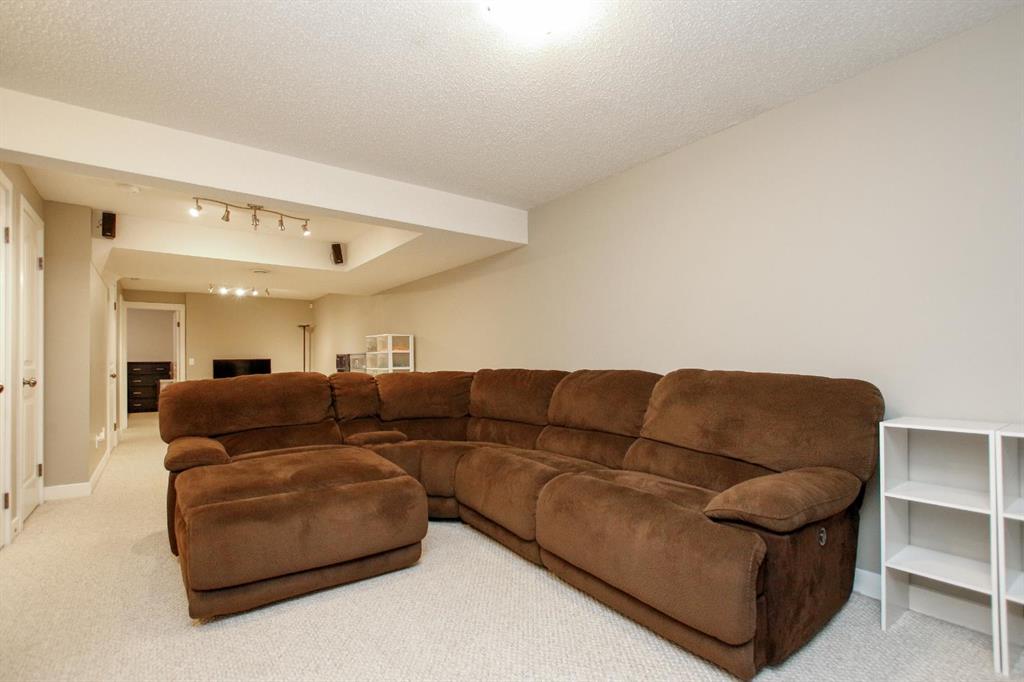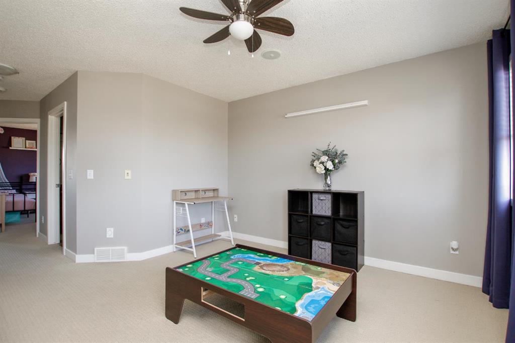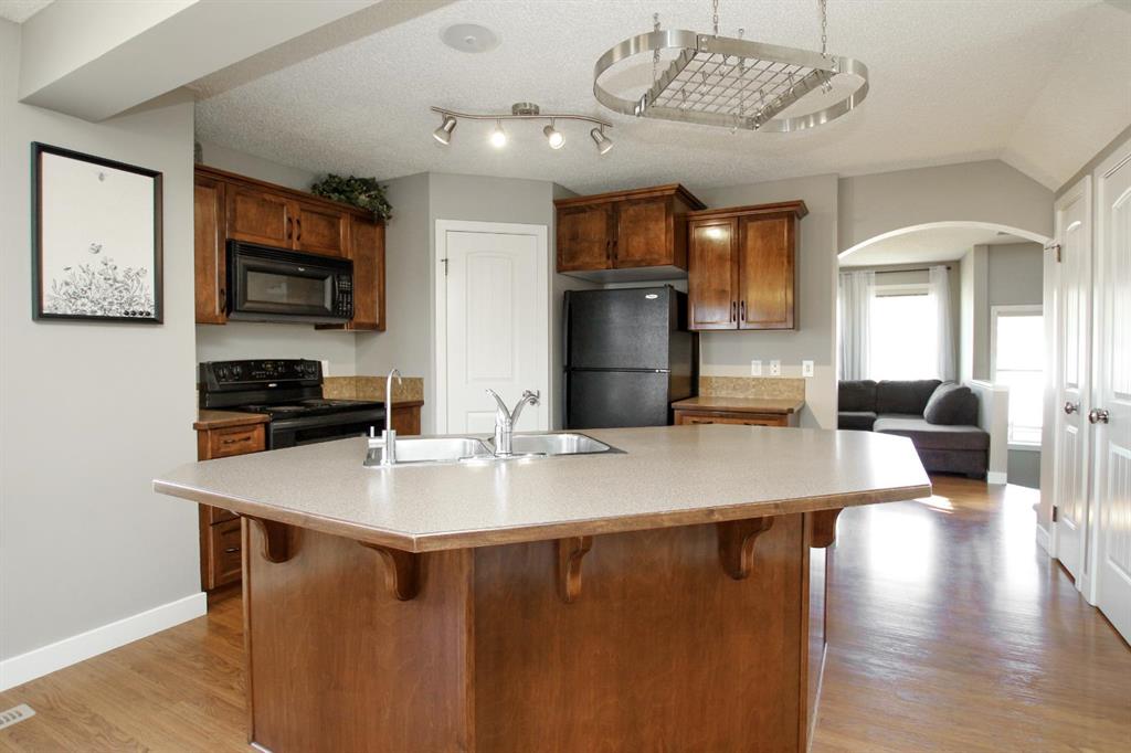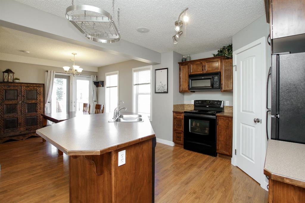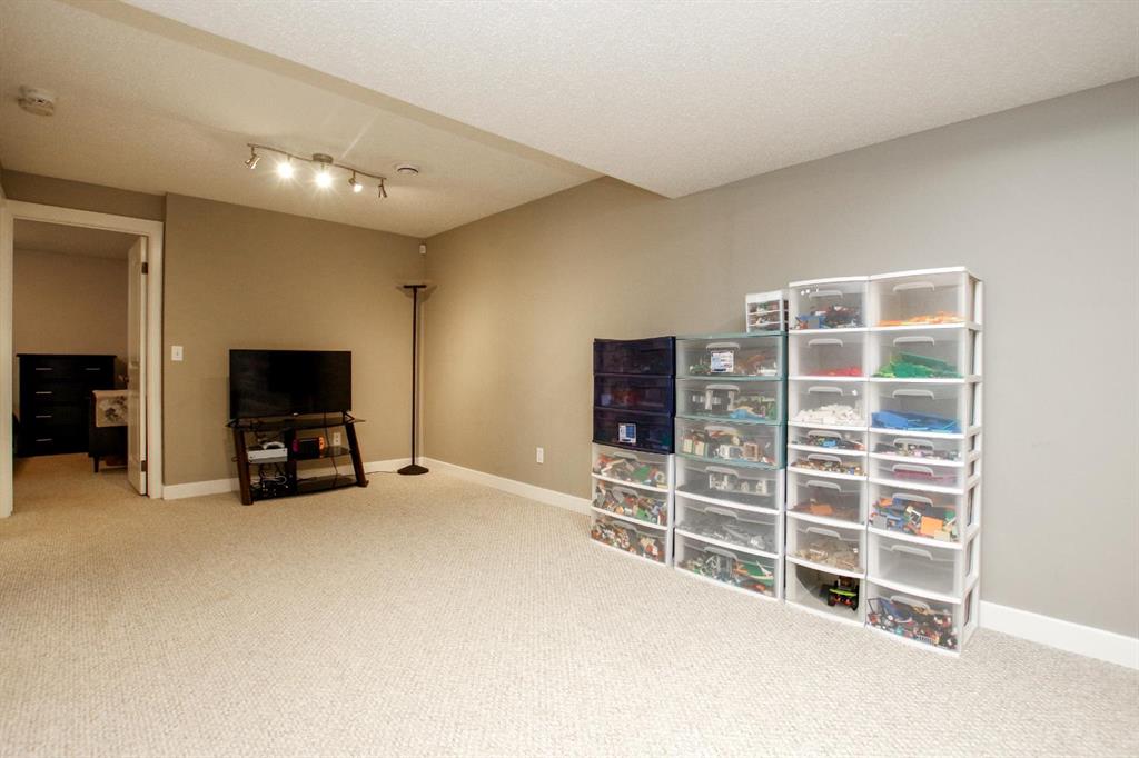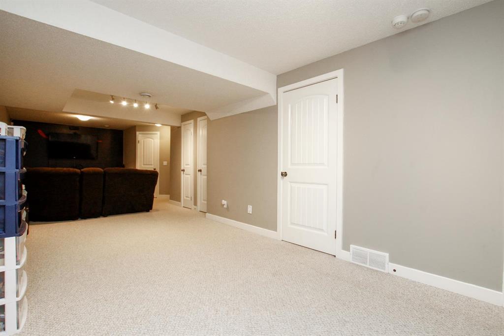 4 BEDROOM, 4 BATHROOM 2-STOREY WITH OVER 1540 SQ. FT. ABOVE GRADE ~ FULLY FINISHED BASEMENT ~ 24' X 22' DETACHED GARAGE ~ CORNER LOT WITH A WEST FACING BACKYARD ~ Covered front veranda that spans the front of the home welcomes you ~ The welcoming foyer has tile flooring and over 18' high ceilings that open to the upper level ~ The living room features large windows that fill the space with natural light and a cozy gas fireplace with stone details and a TV mount above ~ The kitchen offers a functional layout with plenty of dark stained cabinets, ample counter space including a massive island with an eating bar, full tile backsplash and a walk in corner pantry ~ 2 piece main floor bath ~ Easily entertain guests in the spacious dining room with an abundance of large windows and garden door access to the covered deck and backyard ~ The conveniently located main floor primary bedroom can easily accommodate a king size bed plus multiple pieces of furniture, has a second garden door to the covered deck, a walk in closet with built in organizers and a 4 piece ensuite bathroom ~ Open staircase with more large windows offering natural light leads to the upper level bonus room ~ 2 generous size bedrooms with ample closet space share a 4 piece bathroom with an oversized vanity and built in linen shelving ~ The fully finished basement has a huge family room, 4th bedroom, 4 piece bathroom, laundry with a sink and tons of storage throughout ~ Other great features include; built in audio system, central vacuum with kitchen kick pan ~ The sunny west facing backyard is landscaped, fully fenced and has access to the side street and back alley ~ 24' long x 22' wide double detached garage is insulated and finished with O.S.B. ~ Excellent location; steps to multiple parks, playgrounds and walking trails, walking distance to multiple schools, rec centres and tons of shopping, dining, and all other amenities ~ Move in ready!