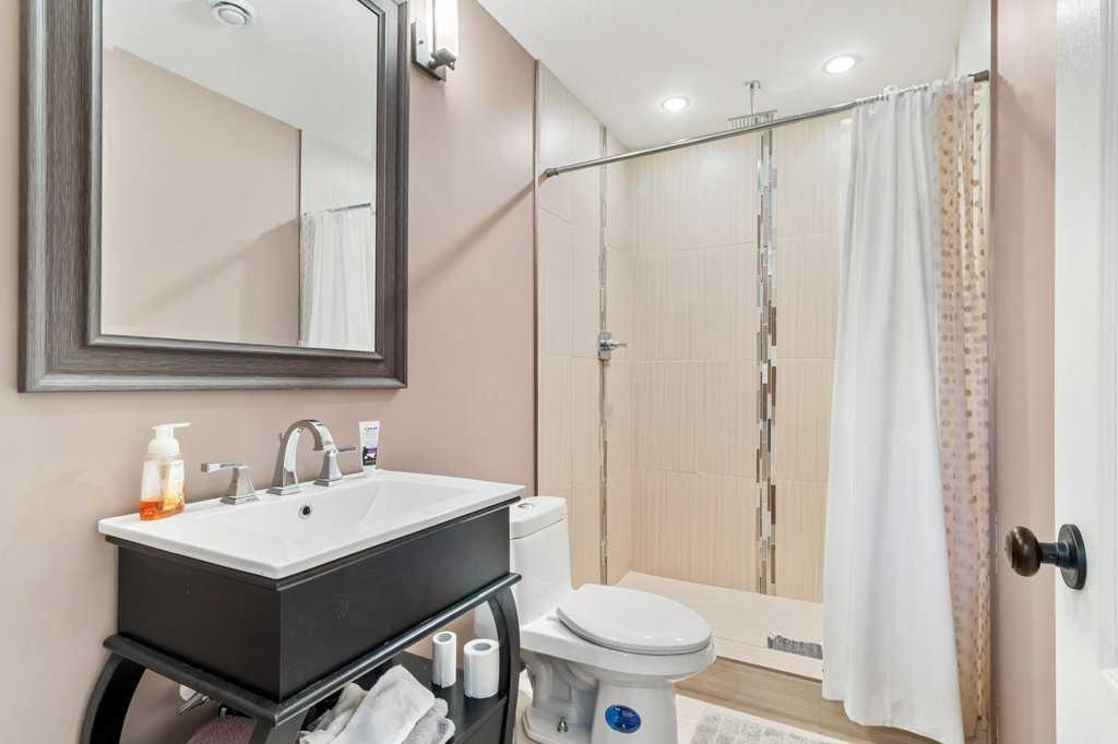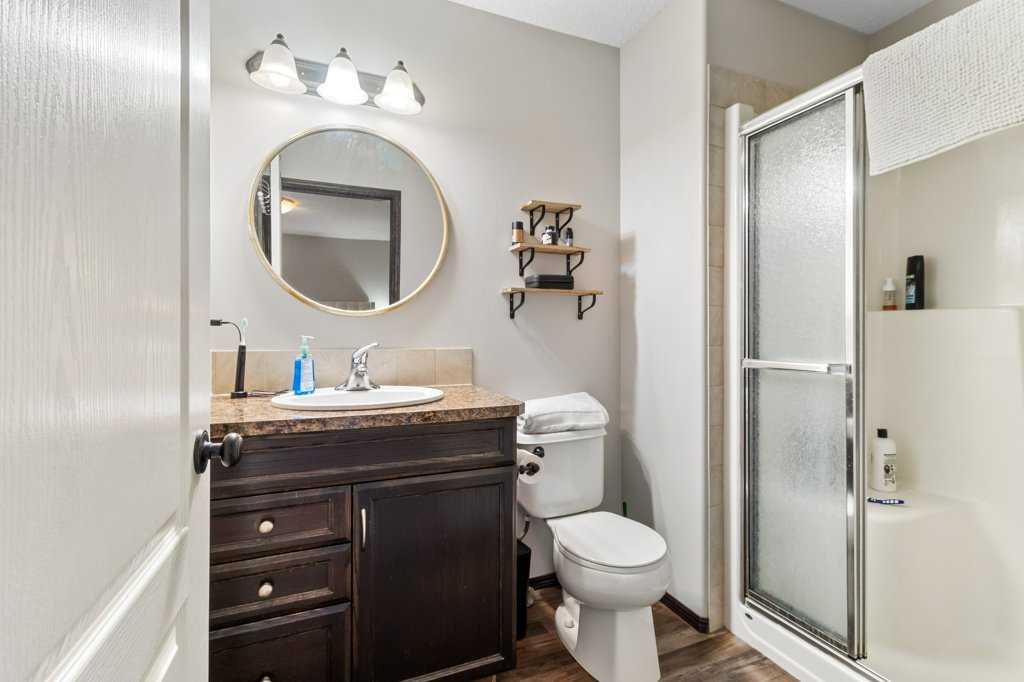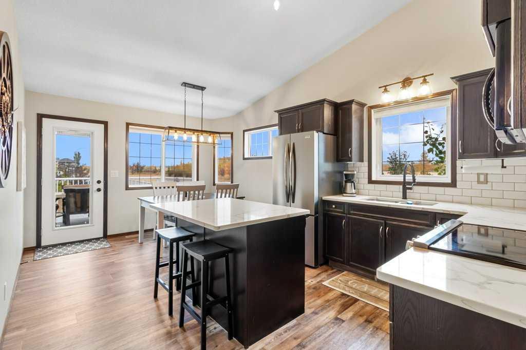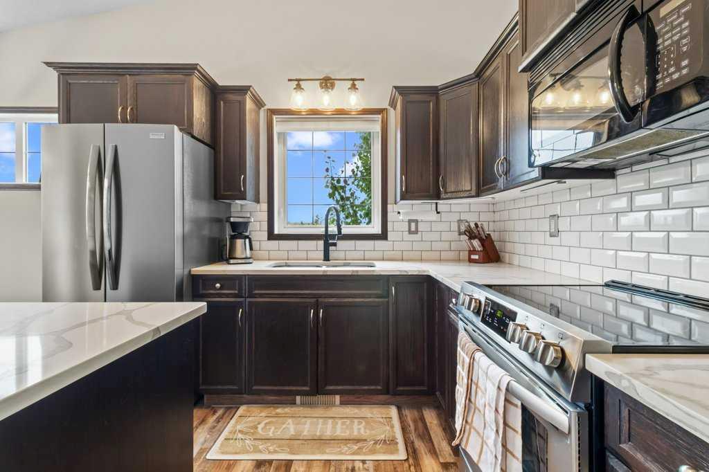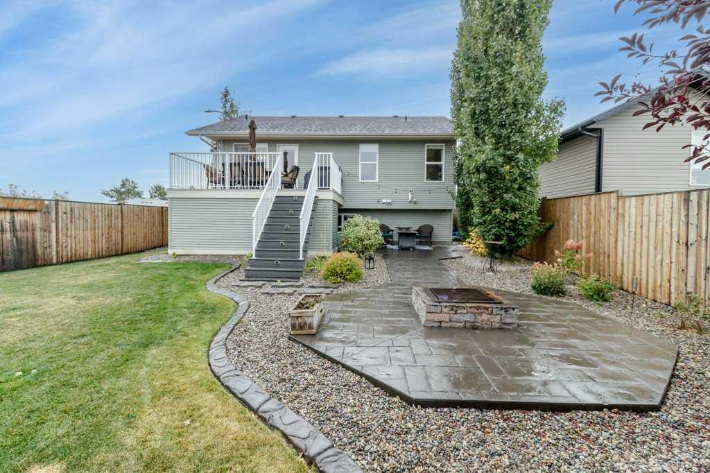 Nestled in a tranquil corner of Red Deer, this delightful home offers a perfect blend of modern elegance and family friendly living. Boasting four generously sized bedrooms and three baths, this property is ideal for growing families. This home enjoys a spacious corner lot with the added luxury of backing onto a pathway that leads directly to a serene green space, ensuring both privacy and access to nature. Vaulted ceilings amplify the sense of space, while vinyl plank flooring in the main living area adds both style and durability. The heart of the home, the kitchen, features chic quartz countertops, a pantry, and an undermount sink set against a new backsplash. The dining area opens out to a large deck, complete with duradeck, a built in storage area with power underneath. Outdoor living is further enhanced with a stamped concrete pad, and fire pit for cozy family gatherings. The master bedroom is a peaceful retreat complete with a walk in closet and three piece ensuite. A large entryway, additional bedroom upstairs with four piece bath and a fully developed basement with a sizeable family room and two more large bedrooms (one has no doors) ensure ample space for everyone. This property also features a low maintenance yard with curbing, RV gate access and underfloor heating roughed in basement for added comfort.