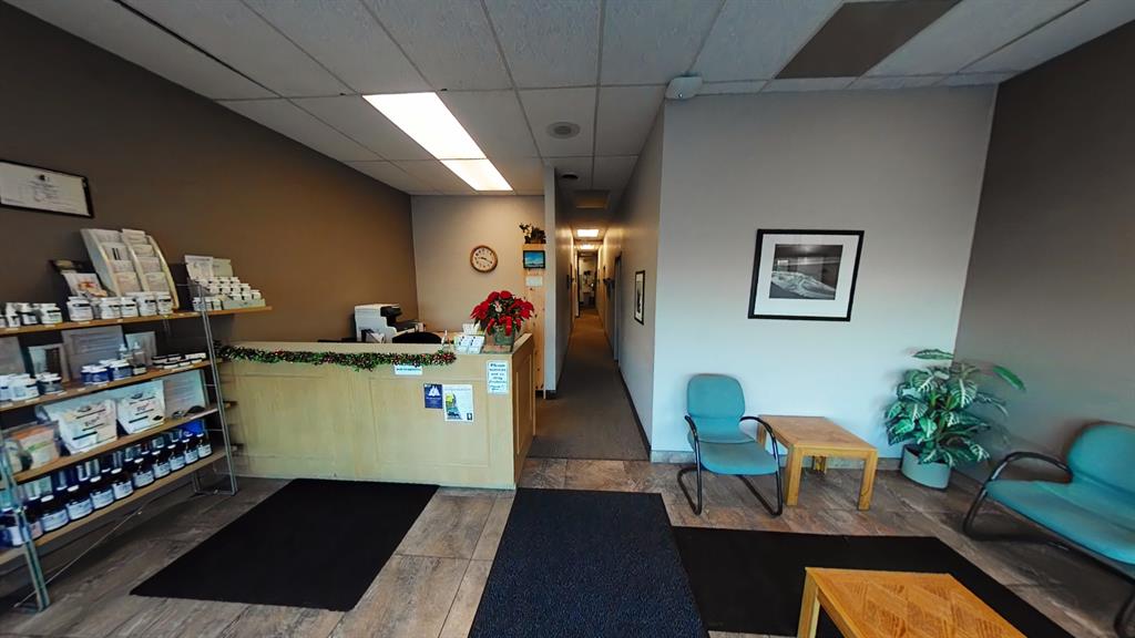 This 1,400 SF unit, located in busy Pines Plaza, is currently being used as a Chiropractic office. The space features an open reception area with a built-in desk, two private offices, six treatment rooms, a storage closet, and one washroom. The reception area has large windows that bring in plenty of natural light. Common paved parking is available in the front of the unit. This location offers high visibility from Gaetz Avenue, with thousands of cars passing by daily. The property is professionally managed by Sunreal Property Management. Additional Rent is estimated at $9.54 per square foot for the 2025 budget year.