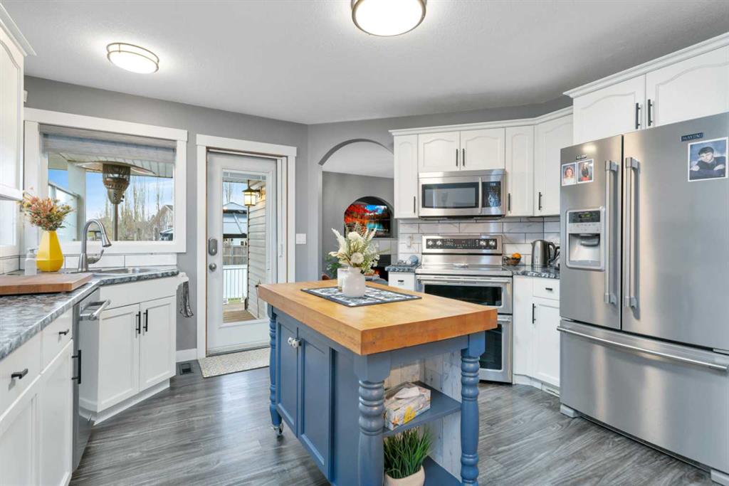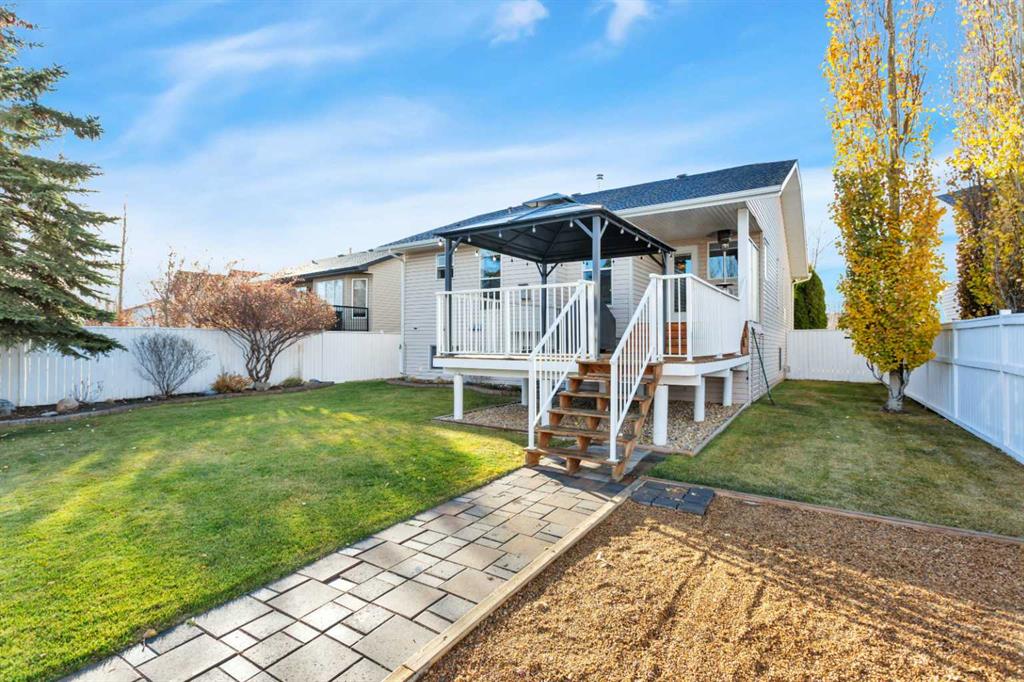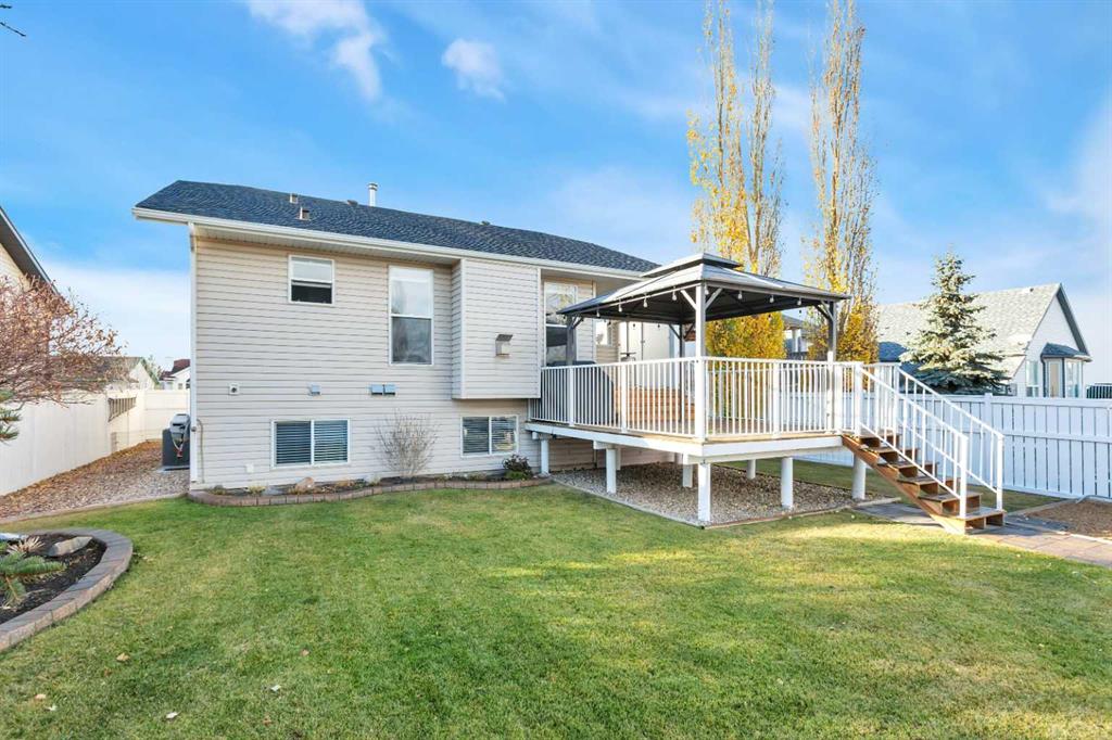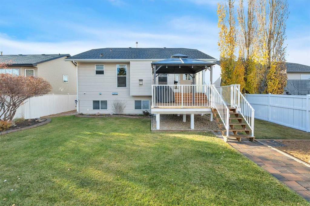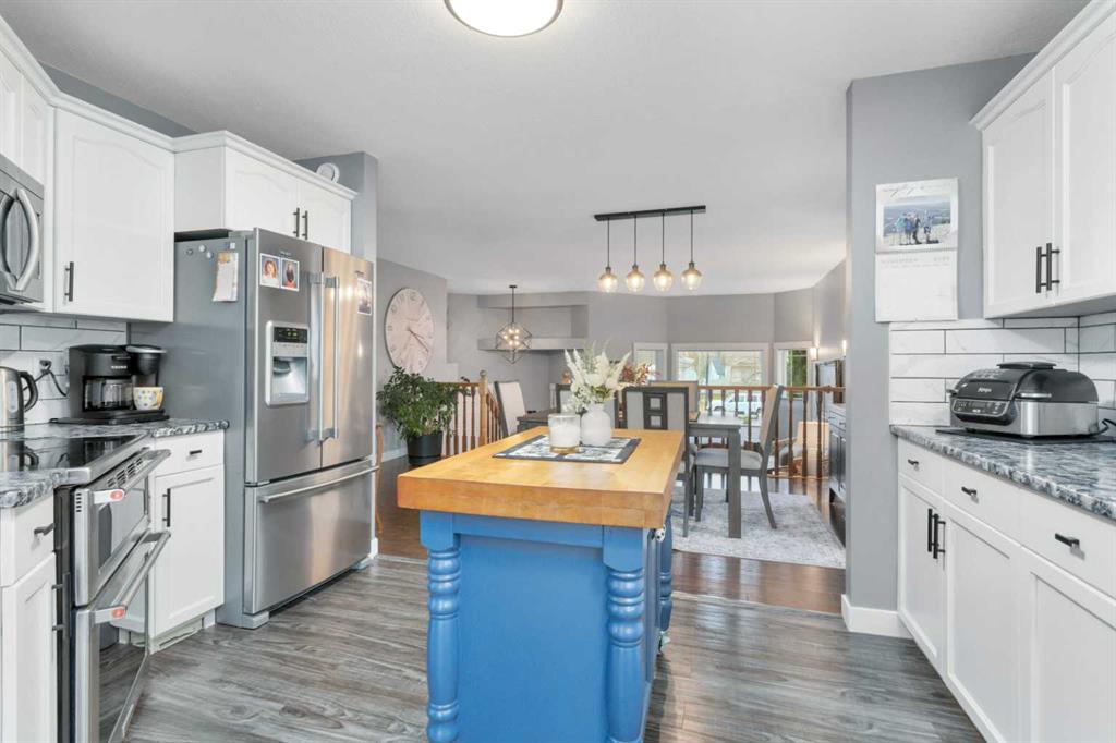 Welcome to this stunning Rosedale Bi Level that has been meticulously cared for and with a fantastic curb appeal. When you enter, you're greeted by a spacious front entry way and a bright living room ideal for gatherings. The heart of the home is the open concept kitchen/ dining area with the stunning blue Island, lots of counter space and stainless steele appliances. The rear of the home has an amazing family room with a gas fireplace to keep you cozy on those winter days. The main floor boasts a tranquil primary bedroom, complete with a luxurious four-piece en suite that includes a walk-in shower, providing a private retreat for relaxation. Adjacent to the primary suite is a versatile second bedroom that can easily serve as a den or home office as well as a 4 pc bathroom. Head down to the basement, where you’ll find an expansive recreation room with another gas fireplace, perfect for entertaining or family movie nights. Adjoining this space is a stylish wet bar, ideal for hosting gatherings. The basement also includes two generously sized bedrooms and another four-piece bathroom, providing comfortable accommodations for family or guests. Nestled on a large lot, this property features an amazing tiered deck, perfect for outdoor entertaining, gardening, or simply enjoying the views.
