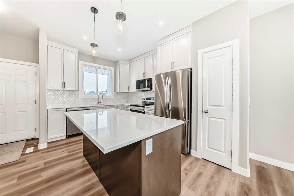 The open-concept kitchen and living area is finished with luxury vinyl plank flooring and stylish quartz countertops, creating a bright and inviting space that’s perfect for everyday living and entertaining.
