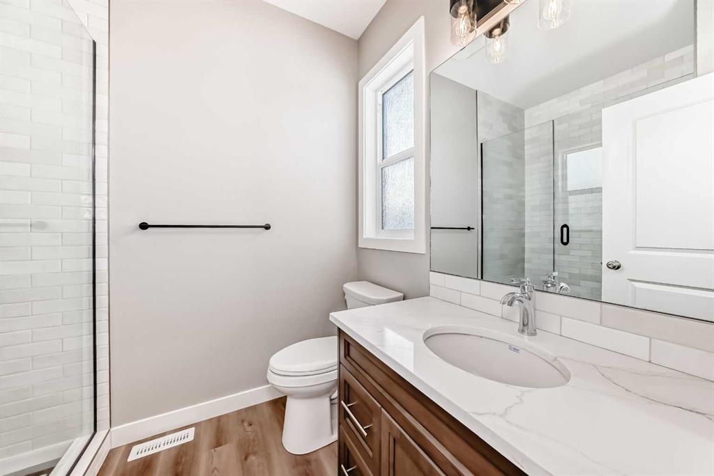 The main floor features three bedrooms and two full bathrooms, including a private primary suite with a walk-in closet and ensuite. Two additional bedrooms and a full main bath provide flexibility for family, guests, or a home office.