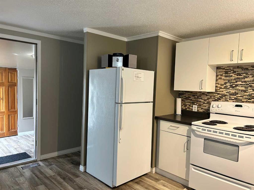 Renovated 3 bed 1 bath mobile home on its own lot. Live comfortably in this home that has had many renovations over the last few years. New flooring through out the home, new paint in side , complete bathroom renovation, kitchen cabinets , newer central air conditioning unit as well as a new furnace a few years ago. Home exterior was painted in the fall of 2024 Located on a corner lot only one block from downtown amenities and close access to the Hardisty walking trails. Only a 40 minute drive to Wainwright and a hop skip and jump to the Hardisty tank farm.