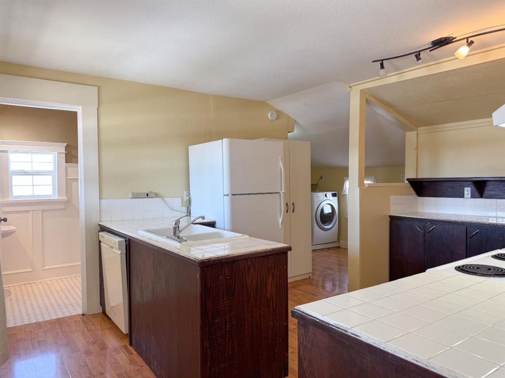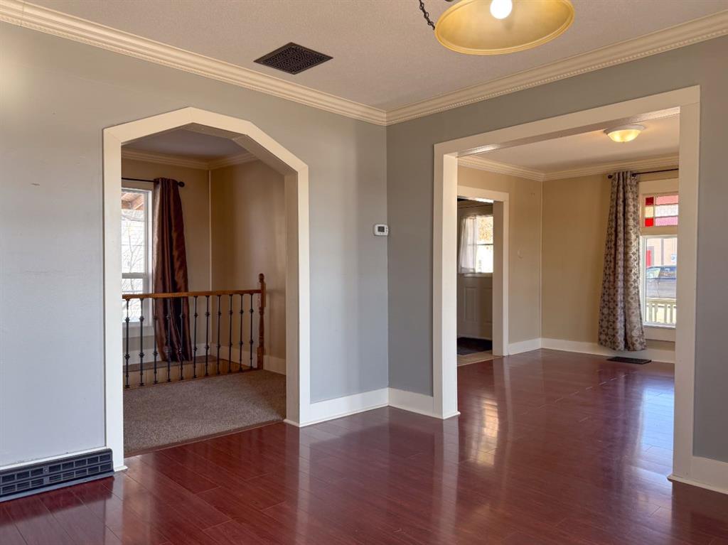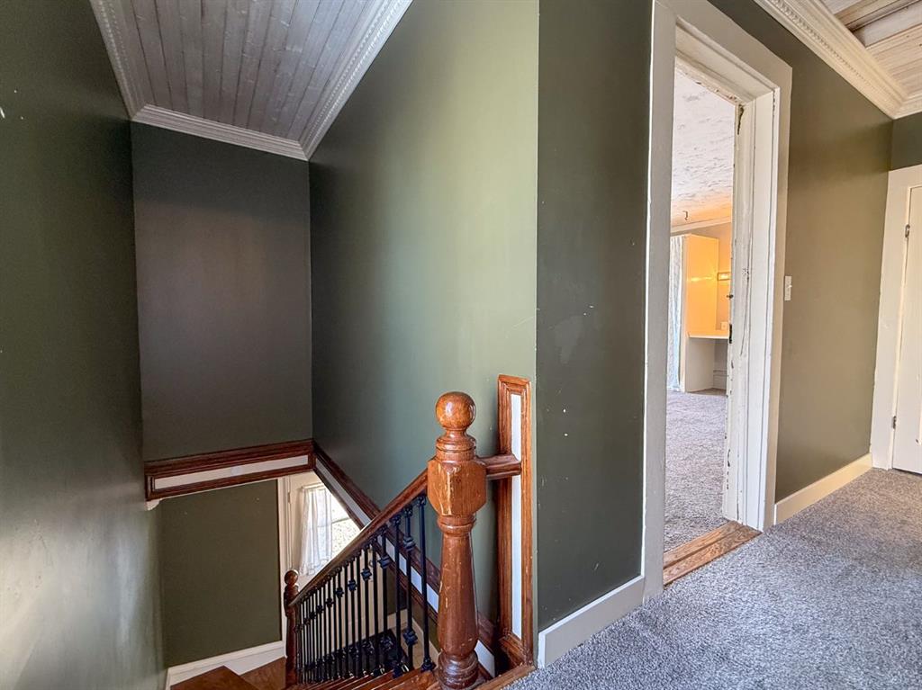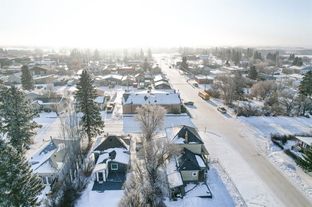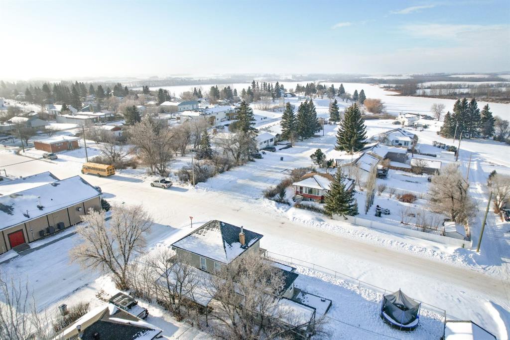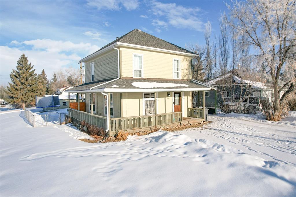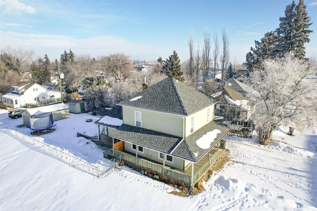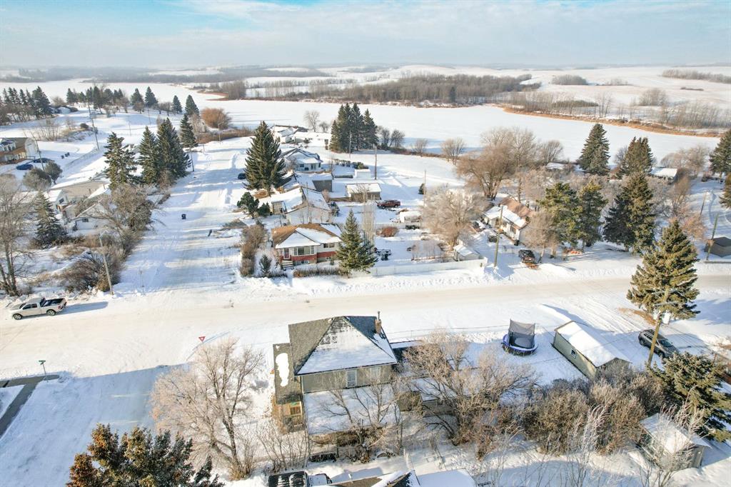 WELCOME TO ALIX! This grand 2 storey character home perches up on its corner lot overlooking the hill down to Alix Lake. Looking sharp under a brand new roof, a picturesque wrap around porch welcomes us in, through the main door a beautiful wooden staircase with built-ins say hello. As we move into the living room it becomes apparent that they used to build houses with just a little more love, from the cast iron vent covers to the feature stain glass transom windows. Three bedrooms with a very generously sized Master featuring dual closets and a lighted vanity upstairs, iconic panel doors included of course. The kitchen boasts a lot of counter space and a peninsula island where the farmhouse sink resides. There's a second doorway from here to the wrap around porch and the back deck, where a person will probably want to BBQ from, making for efficient food prep being right off the kitchen. The main floor bathroom is beautifully renovated with period appropriate penny tile and wainscotting, a gorgeous clawfoot tub and pedestal sink - timeless stylings! Main floor laundry tucked away behind the kitchen. The basement has a finished carpeted room, great for the kids or relaxing and enjoying a movie. An updated furnace and hot water heater with updated plumbing live next door, and then beyond that is a cellar. A big 50'X120' lot gives lots of room for parking at the front and under the covered carport on the north side of the house. The yard is fenced and ready to keep the babies and the pets safe a contained. A fire pit and a pad for a hot tub make for great entertaining and lastly a garden shed and a big workshop are waiting for the green thumbs and craftsmen among us! Alix itself is a bangin' little town offering all the amenities, a k-12 school, Alix Lake AND Haunted Lakes Golf Course. But also, a fabulous location just a half hour to Lacombe, Blackfalds & Stettler and 40 minutes to Red Deer. This is Alberta, Amen!