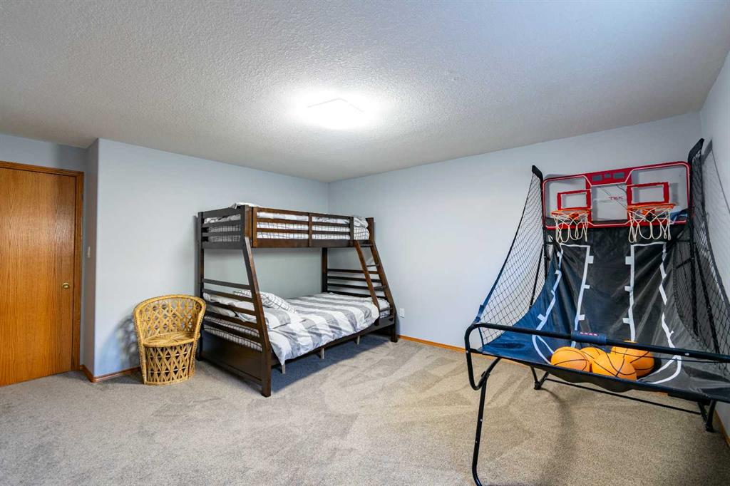 Downstairs, you’ll find a generous family room that could easily double as a games or entertainment space, complete with a wet bar and bar fridge. This level also includes a private office, a large storage room with plenty of shelving, two oversized bedrooms, and a 4-piece bathroom.