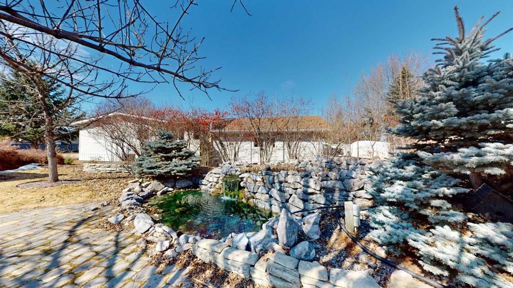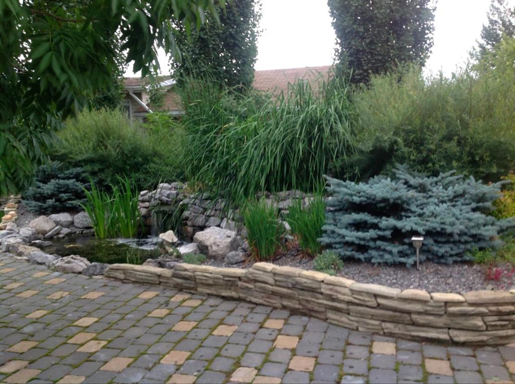 | Back Yard, Corner Lot, Fruit Trees/Shrub(s), Landscaped, Lawn, Many Trees, Private, Waterfall |