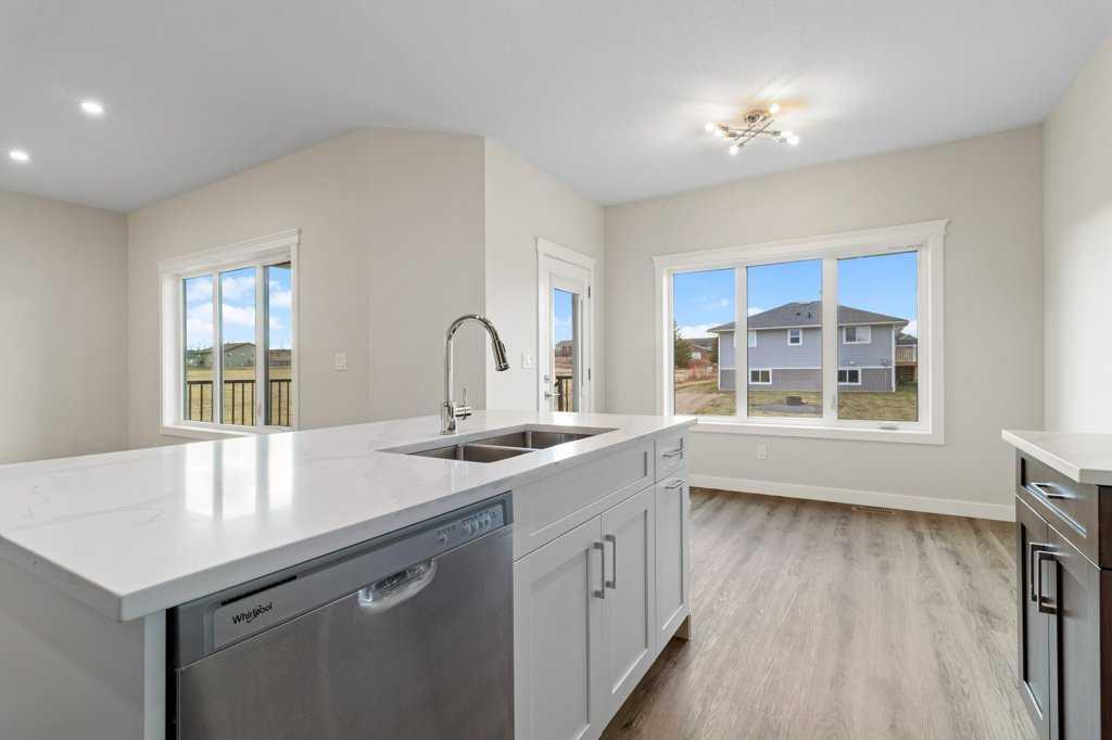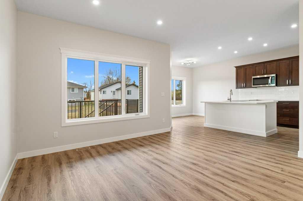 Welcome to the charming and growing town of Bentley, where small-town warmth meets easy access to an abundance of recreational amenities. Surrounded by beautiful lakes, beaches, golf courses, ski hills, natural areas, and scenic trails, this community offers a lifestyle that’s both active and relaxing. This brand-new 1,121 sq. ft. bi-level home showcases modern design and quality craftsmanship throughout. The inviting covered front entry leads into a bright, open-concept living space featuring 9-foot ceilings, upgraded flooring, and large triple-pane low “E” windows that fill the home with natural light. The stylish kitchen includes an island with seating, quartz countertops, a pantry, and built-in dishwasher and microwave. The builder is offering the new homeowner a $4,000 appliance allowance plus GST, providing the opportunity to select their own appliances to perfectly suit their style and needs. The spacious primary bedroom offers a walk-in closet and a private 3-piece ensuite, while a second bedroom and a 4-piece main bath complete the main level. Convenient main floor laundry adds everyday functionality. The lower level boasts 9-foot ceilings and offers the option to be professionally finished to suit your needs. Additional highlights include R-24 walls, a high-efficiency two-stage furnace with HRV, a covered rear deck, and the potential for rear lane access and a detached garage. Experience comfortable, efficient, and stylish living in this beautiful new home in Bentley. New Home Warranty Included.