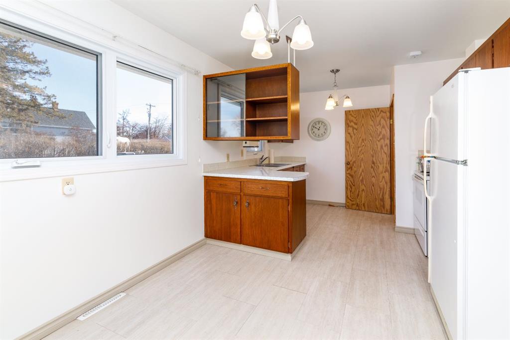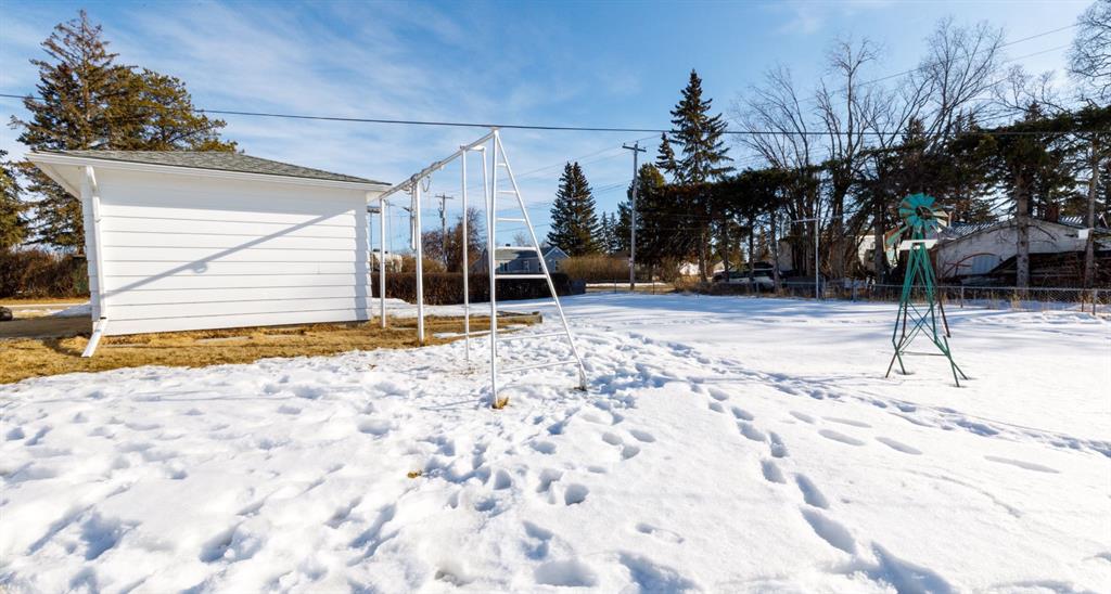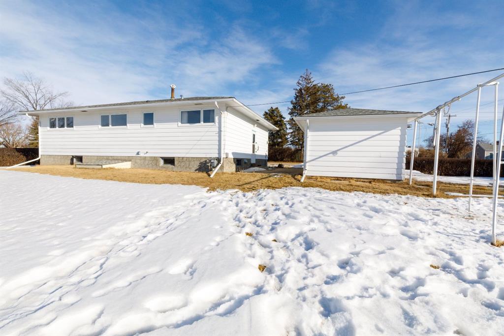 Offering three bedrooms on the main floor, a spacious living room, functional kitchen, and new vinyl windows upstairs, it blends timeless character with everyday comfort. A fully developed basement add incredible versatility, featuring a small canning kitchen in the laundry room. Rec room, Bonus room, Den And a 3pc Bathroom. Outside features a detached single garage, storage sheds, and a root cellar — perfect for those who appreciate a little country charm.
