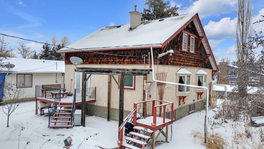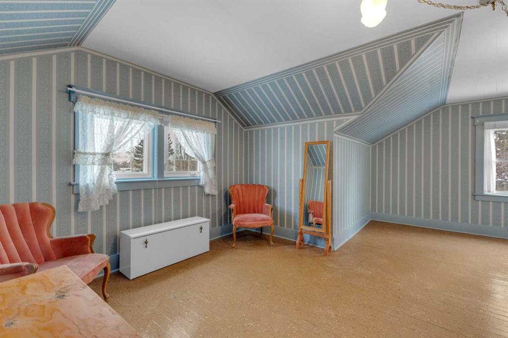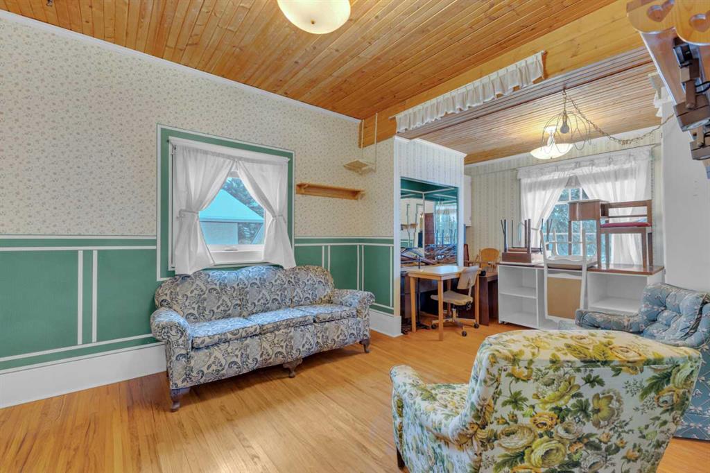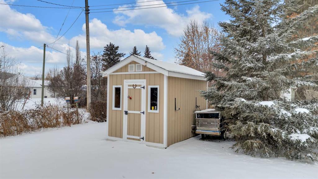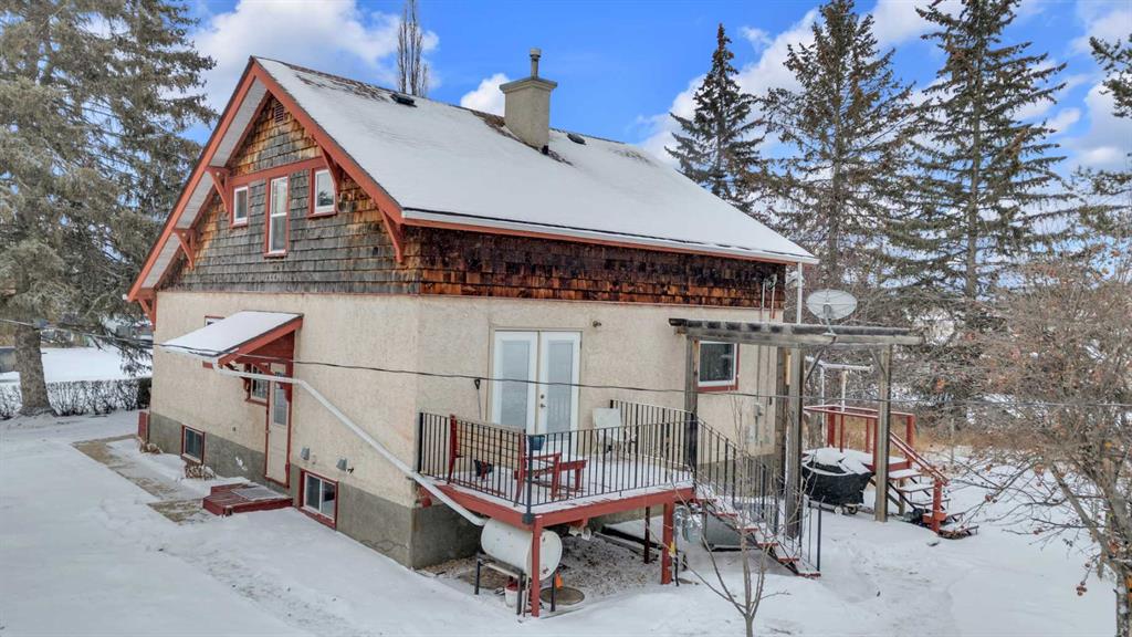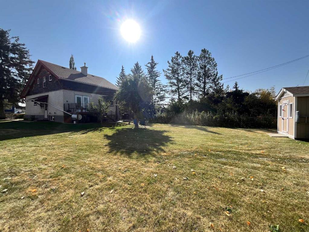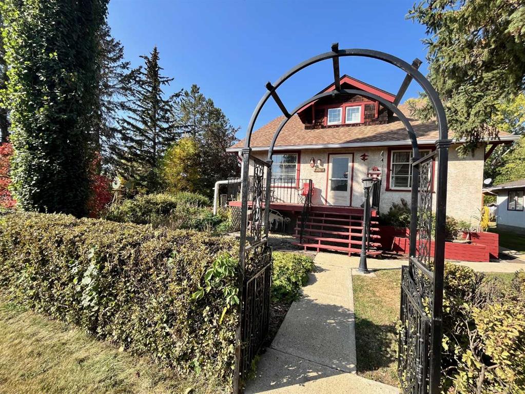 Welcome to this beautifully preserved 1920 character home, a rare opportunity to own a property where quality craftsmanship has stood the test of time. This spotlessly clean 4-bedroom, 3-bath home is available for immediate possession, making it truly move-in ready. The property consists of two large lots totaling 14,000 sq ft, peacefully tucked away in a quiet setting off the main streets. The home showcases original refinished hardwood flooring accented by impressive 10-inch-wide dark oak baseboards, original wood trim finishings, and solid wood doors, all reflecting a century of care while being thoughtfully upgraded. Sunny bay windows on the main level fill the home with natural light, while vintage light fixtures add to its historic appeal. Upgraded bathrooms and plumbing on every floor provide everyday comfort, reliability, and convenience while blending seamlessly with the home’s historic character. The basement includes a Murphy bed for guests and a large family room perfect for entertaining. This home has seen extensive upgrades over the years, including being professionally lifted and having a new basement poured and finished in 2000. Other major upgrades include asphalt shingles (2014), upgraded windows (1995–2000), new eavestroughs (2019), modernized wiring (2000), new furnace (2000), new hot water tank (2006), and a new shed in 2024. Outdoors, the mature and private lot offers a beautifully treed yard with fruit trees, raspberries, strawberries, and a flower garden with walking paths, creating a peaceful, private yard. Located close to an arena, baseball diamonds, and playgrounds, as well as nearby stores and restaurants, this home sits in the quiet, smaller community of Clive, which still offers many amenities of a larger town, including an elementary and junior high school. With Lacombe only 15 minutes away, this location provides exceptional value by combining small-town charm and affordability with convenient access to expanded services and amenities, while being just 20 minutes from the Joffre plant, making it an ideal blend of privacy and accessibility.