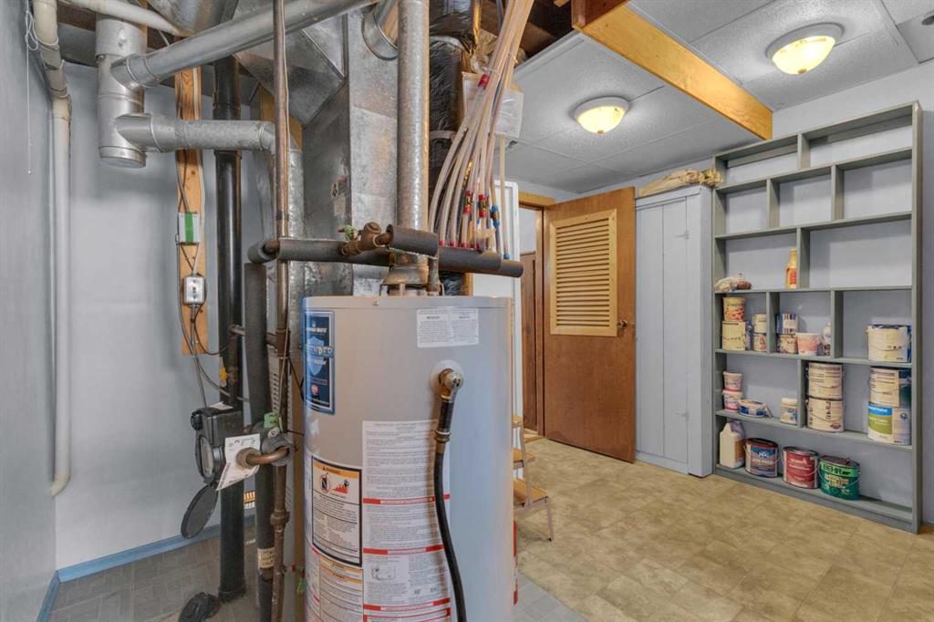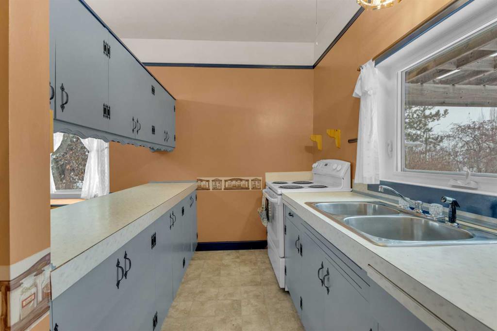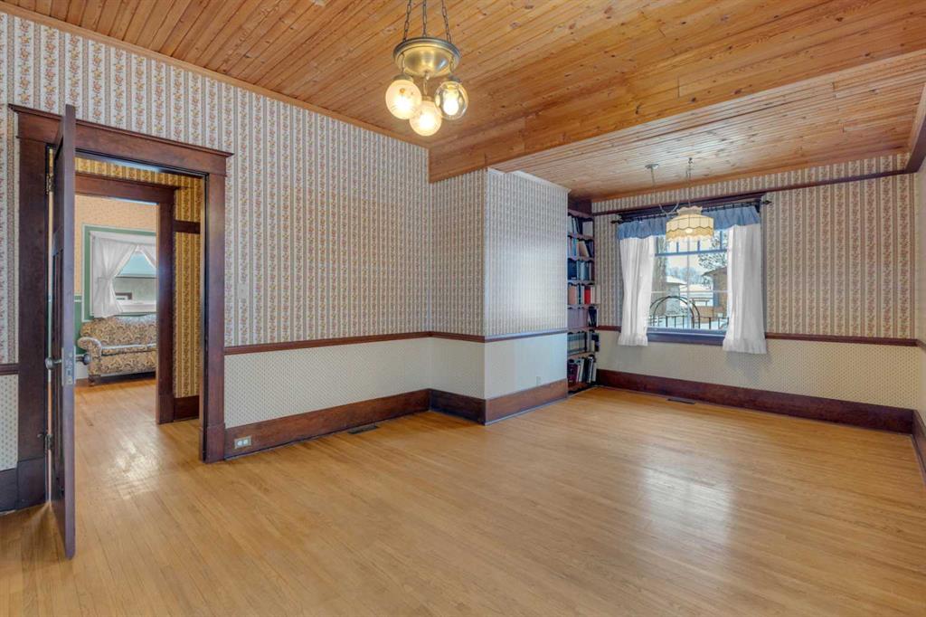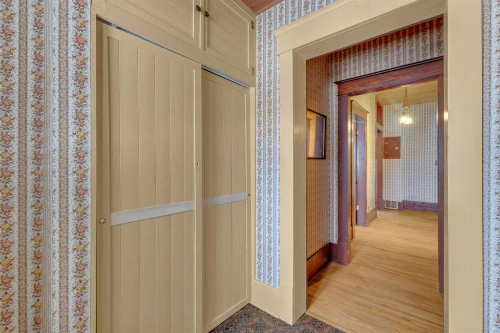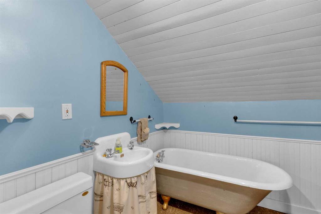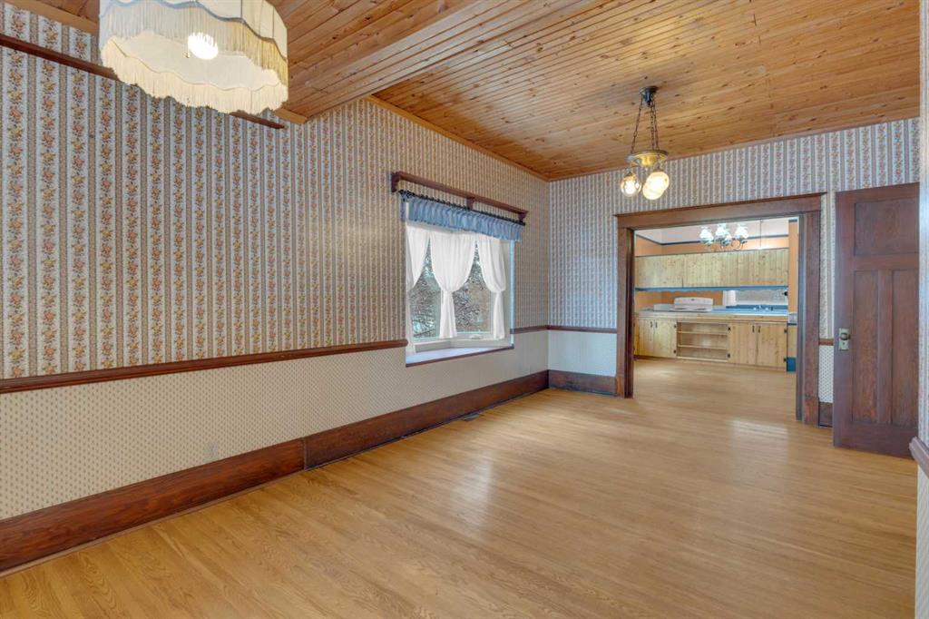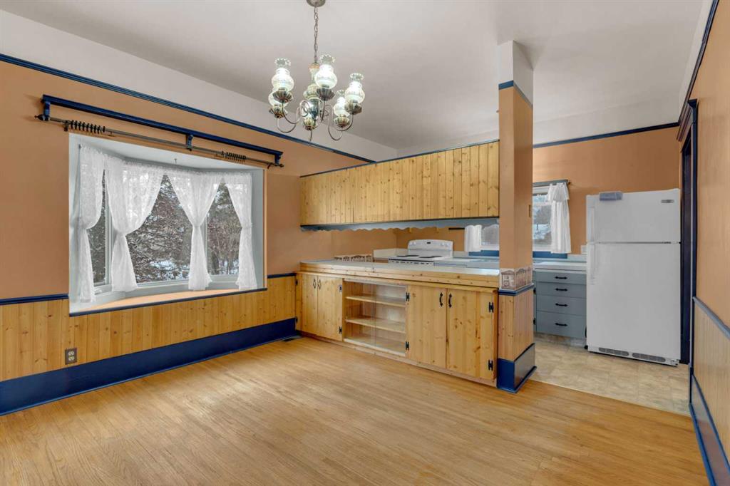 Welcome to this beautifully preserved 1920 character home, a rare opportunity to own a property where quality craftsmanship has stood the test of time. This spotlessly clean 4-bedroom, 3-bath home is available for immediate possession, making it truly move-in ready. The property consists of two large lots totaling 14,000 sq ft, peacefully tucked away in a quiet setting off the main streets. The home showcases original refinished hardwood flooring accented by impressive 10-inch-wide dark oak baseboards, original wood trim finishings, and solid wood doors, all reflecting a century of care while being thoughtfully upgraded. Sunny bay windows on the main level fill the home with natural light, while vintage light fixtures add to its historic appeal. Upgraded bathrooms and plumbing on every floor provide everyday comfort, reliability, and convenience while blending seamlessly with the home’s historic character. The basement includes a Murphy bed for guests and a large family room perfect for entertaining. This home has seen extensive upgrades over the years, including being professionally lifted and having a new basement poured and finished in 2000. Other major upgrades include asphalt shingles (2014), upgraded windows (1995–2000), new eavestroughs (2019), modernized wiring (2000), new furnace (2000), new hot water tank (2006), and a new shed in 2024. Outdoors, the mature and private lot offers a beautifully treed yard with fruit trees, raspberries, strawberries, and a flower garden with walking paths, creating a peaceful, private yard. Located close to an arena, baseball diamonds, and playgrounds, as well as nearby stores and restaurants, this home sits in the quiet, smaller community of Clive, which still offers many amenities of a larger town, including an elementary and junior high school. With Lacombe only 15 minutes away, this location provides exceptional value by combining small-town charm and affordability with convenient access to expanded services and amenities, while being just 20 minutes from the Joffre plant, making it an ideal blend of privacy and accessibility.