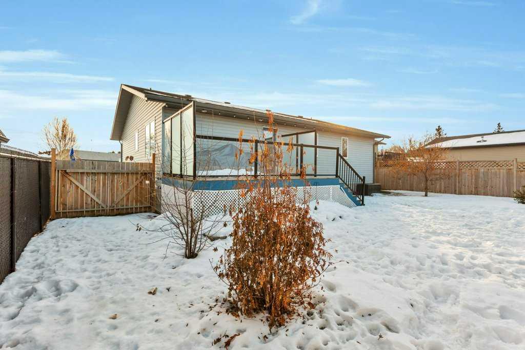 IT'S TIME TO DISCOVER COMFORT, SPACE, & SMALL TOWN CHARM! This five bedroom, three bathroom bungalow offers 1275 square feet of thoughtfully designed living space plus a developed basement. The open concept main floor welcomes you with a spacious L-shaped kitchen featuring nice counter space, cabinets, large corner pantry and a generous dining area perfect for family gatherings. The inviting living room is highlighted by hardwood flooring, large windows and a door to the rear yard. The main level offers three bedrooms and two full bathrooms allowing for a functional layout for families of all sizes. Primary suite includes a walk-in closet and four piece ensuite. Convenient main floor laundry adds to the ease of everyday living. Downstairs, the basement features a spacious family room, two bedrooms, storage/flex space and a four piece bath. The home is equipped with in-floor heat and central AC which adds to the homes comfort. Enjoy the outdoors in your fenced backyard which backs onto a small creek, making it the ideal area for kids, pets, and summer BBQs. Attached double garage provides ample parking and workspace. Situated in one Clive's loveliest areas, you’ll appreciate the quiet surroundings, friendly neighbors, and the welcoming spirit this small community is known for.
