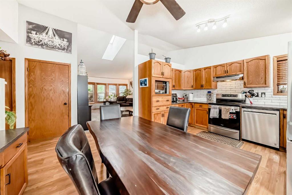 Welcome to this beautifully maintained bungalow, thoughtfully updated over the years to offer comfort, functionality, and style. Step into a generous living room featuring a cozy wood-burning fireplace—perfect for relaxing evenings. The floor plan flow leads seamlessly into the kitchen and dining area, where garden doors open to a ground-level patio, ideal for outdoor entertaining. Down the hall, you'll find three well-sized bedrooms, including a primary suite with a convenient pocket door to the main bath. The hallway is extra wide, designed with accessibility in mind. The fully finished basement expands your living space with a large family room, an additional spacious bedroom, a full bathroom, and a combined furnace/laundry room. Outside, enjoy a fenced backyard surrounded by mature trees that provide privacy and a peaceful atmosphere. The attached double garage is fully finished with workbenches and shelving, offering ample storage and workspace. A wide driveway accommodates extra parking with ease. Recent upgrades include new siding, shingles, most upstairs windows, select flooring, a modernized upstairs bathroom, updated fixtures, a newer hot water tank, and furnace—ensuring peace of mind and long-term value. This may be your chance to own this versatile and welcoming home.