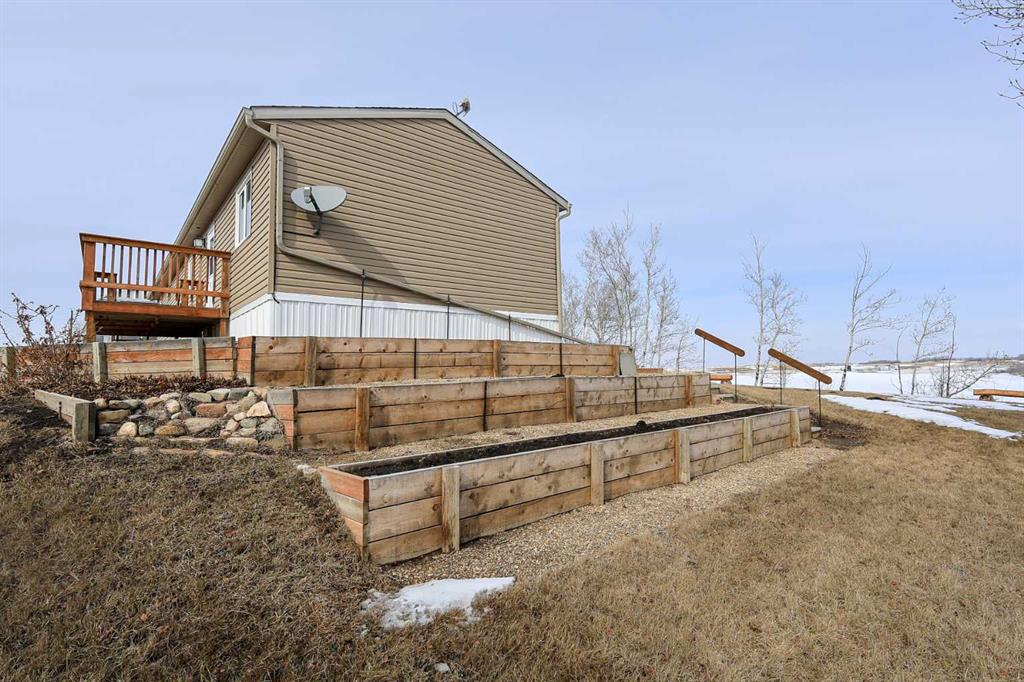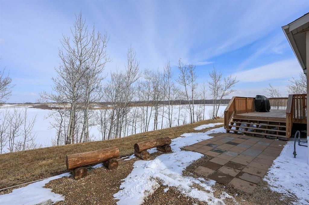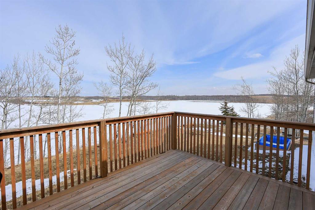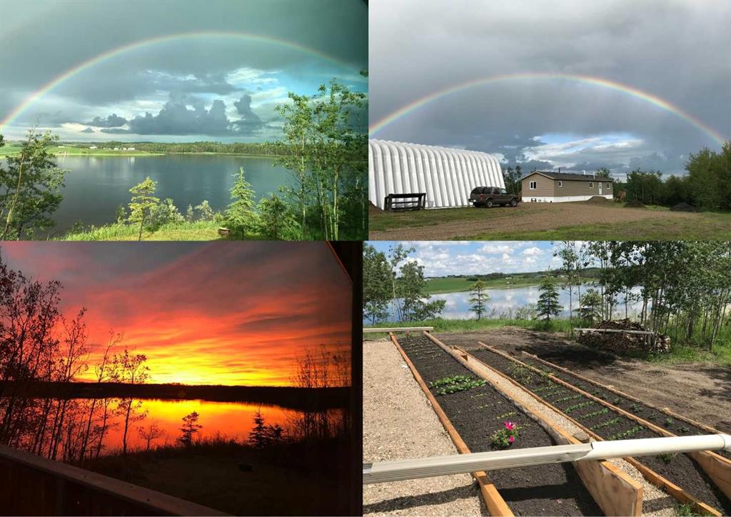 8.8 ACRES OVERLOOKING HORSESHOE LAKE ~ 3 BED, 2 BATH W/1280 SQ FT ON ONE LEVEL ~ HEATED 54' X 30' HEATED SHOP W/MEZZANINE & FULL BATHROOM ~ Beautiful lake views welcome you to this well cared for property ~ Expansive east facing deck leads to the foyer and open concept main living space with vaulted ceilings and vinyl plank flooring throughout ~ The living room has a large picture window with lake views and a cozy wood burning fireplace ~ The kitchen offers warm stained cabinets, ample counter space, island with an eating bar, and a west facing window above the sink ~ Easily host large gatherings in the dining room with garden door access to the deck ~ The primary bedroom can easily accommodate a king size bed, has a large walk in closet and a bright 4 piece ensuite ~ 2 additional bedrooms with ample size closets are conveniently located next to the 4 piece main bathroom ~ Large laundry room with space for storage has a second entrance with a west facing deck ~ 54' x 30' heated shop has a high ceilings, finished hobby room with a closet, a full 4 piece bathroom, and a mezzanine ~ Outside this peaceful property features rolling hills and mature trees, a 3 tiered garden, rose bush, rhubarb and strawberries, plus a cleared walkway and driveway to the lake ~ Located close to Alix with easy access to Red Deer ~ Pride of ownership is evident!