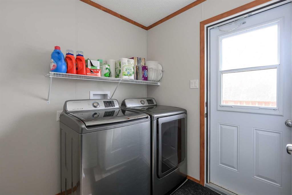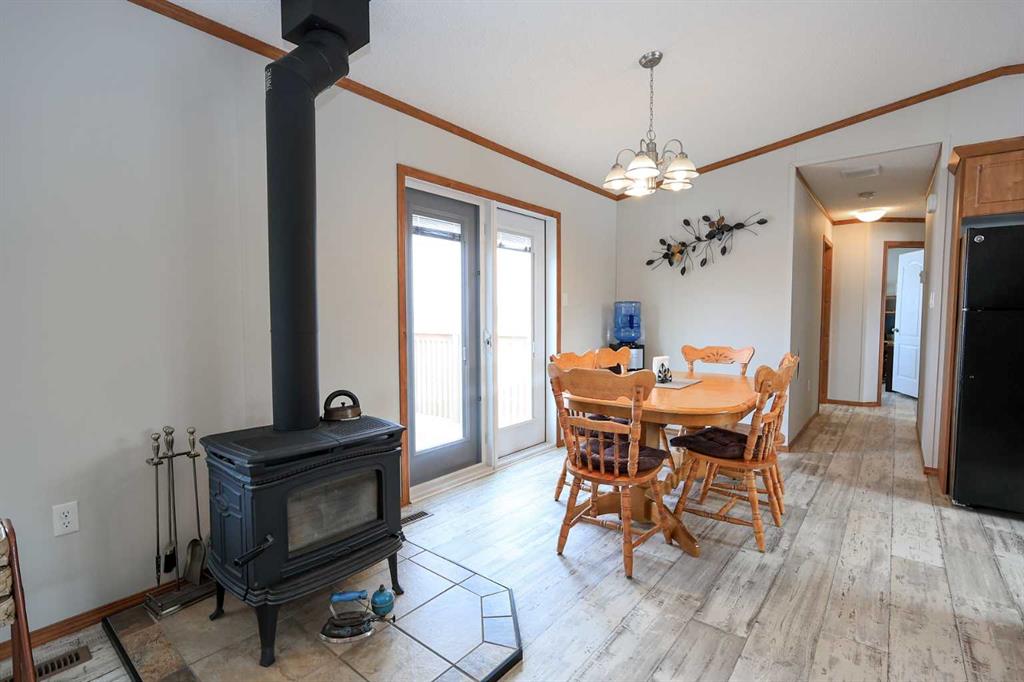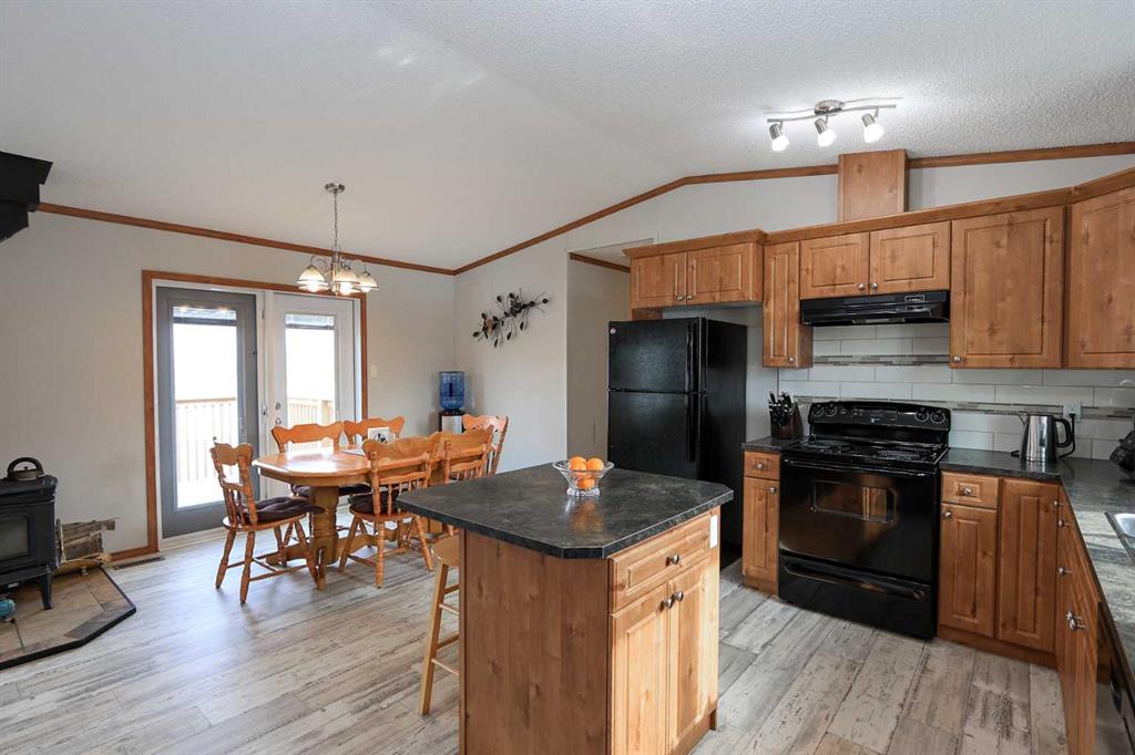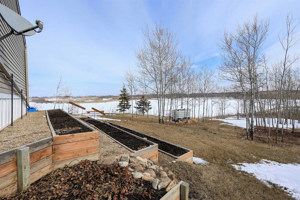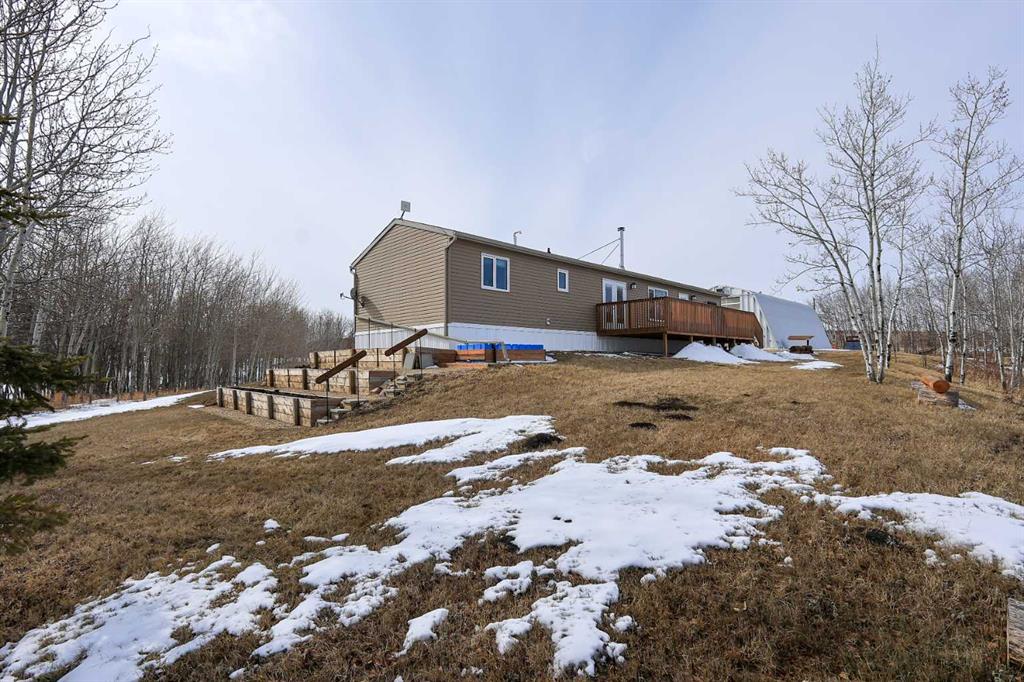 8.8 ACRES OVERLOOKING HORSESHOE LAKE ~ 3 BED, 2 BATH W/1280 SQ FT ON ONE LEVEL ~ HEATED 54' X 30' HEATED SHOP W/MEZZANINE & FULL BATHROOM ~ Beautiful lake views welcome you to this well cared for property ~ Expansive east facing deck leads to the foyer and open concept main living space with vaulted ceilings and vinyl plank flooring throughout ~ The living room has a large picture window with lake views and a cozy wood burning fireplace ~ The kitchen offers warm stained cabinets, ample counter space, island with an eating bar, and a west facing window above the sink ~ Easily host large gatherings in the dining room with garden door access to the deck ~ The primary bedroom can easily accommodate a king size bed, has a large walk in closet and a bright 4 piece ensuite ~ 2 additional bedrooms with ample size closets are conveniently located next to the 4 piece main bathroom ~ Large laundry room with space for storage has a second entrance with a west facing deck ~ 54' x 30' heated shop has a high ceilings, finished hobby room with a closet, a full 4 piece bathroom, and a mezzanine ~ Outside this peaceful property features rolling hills and mature trees, a 3 tiered garden, rose bush, rhubarb and strawberries, plus a cleared walkway and driveway to the lake ~ Located close to Alix with easy access to Red Deer ~ Pride of ownership is evident!