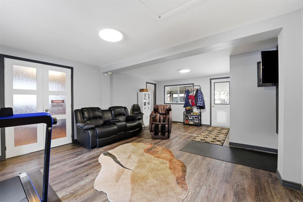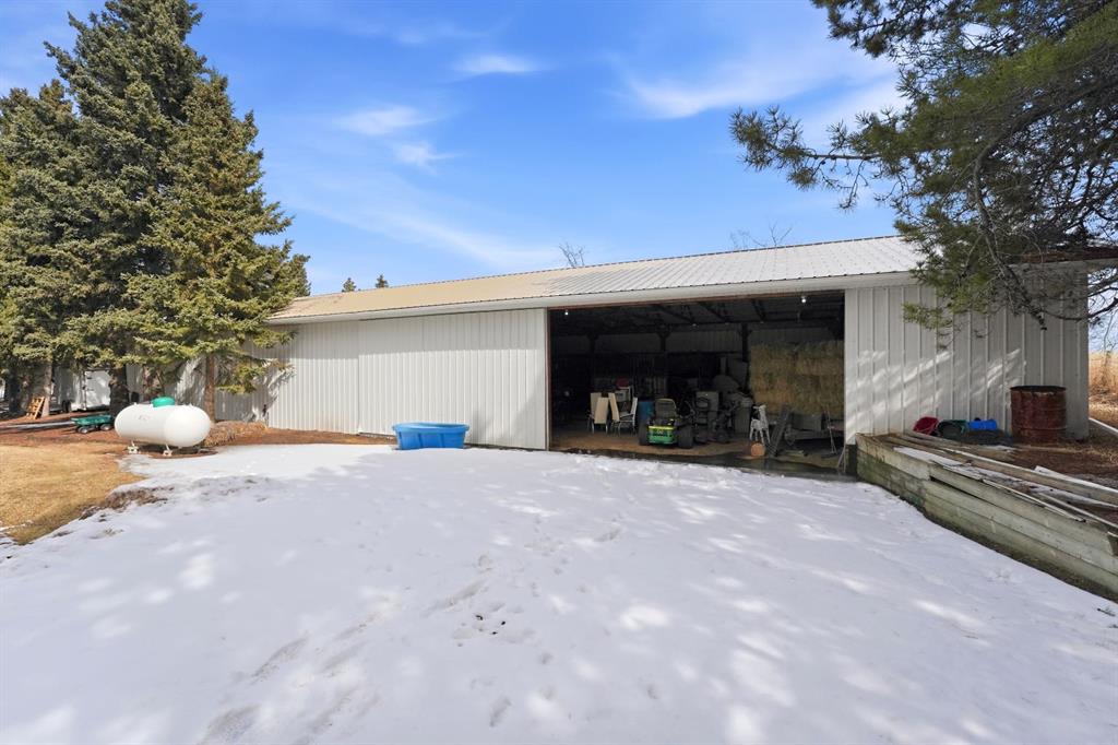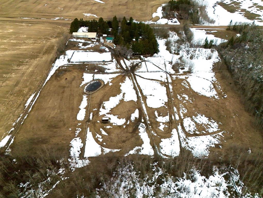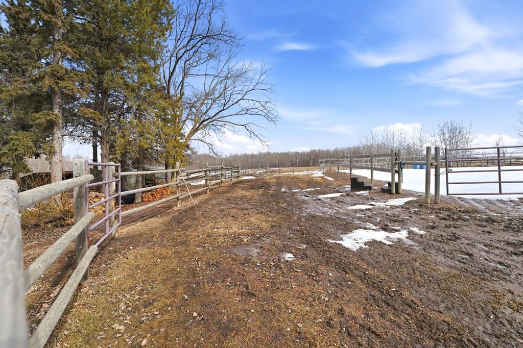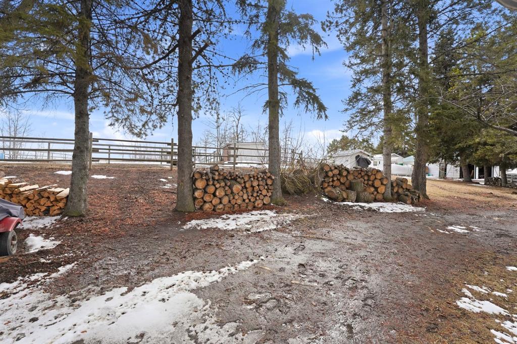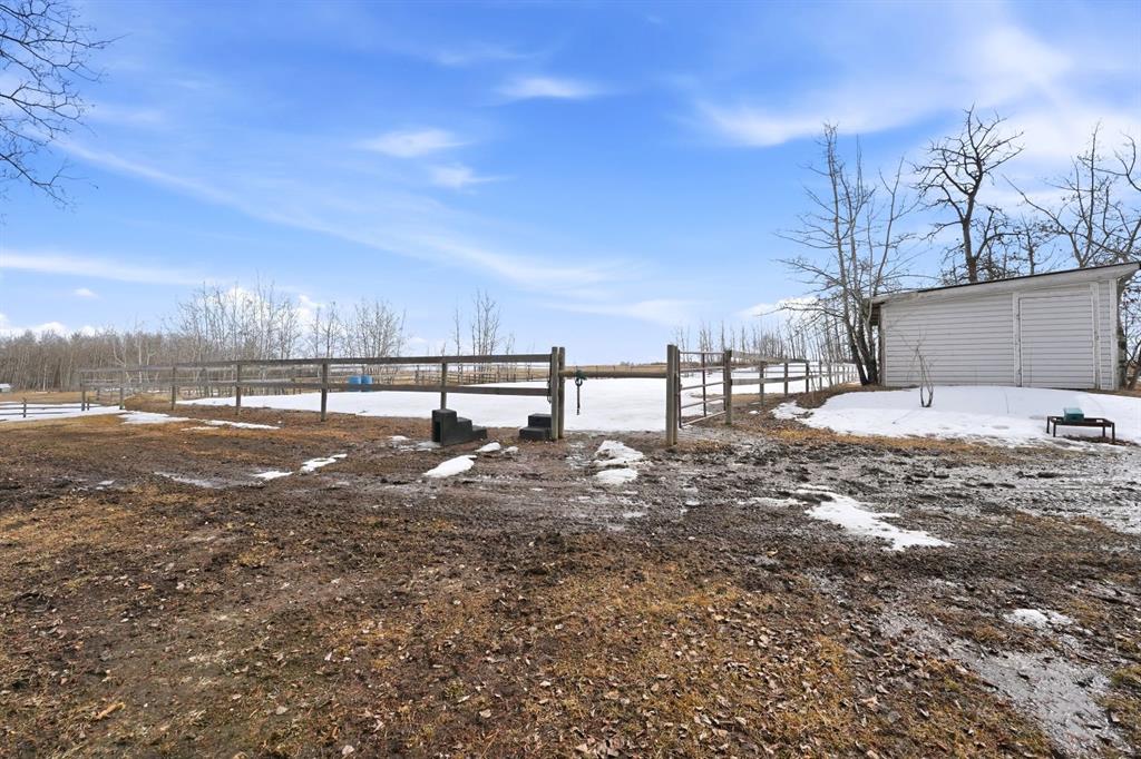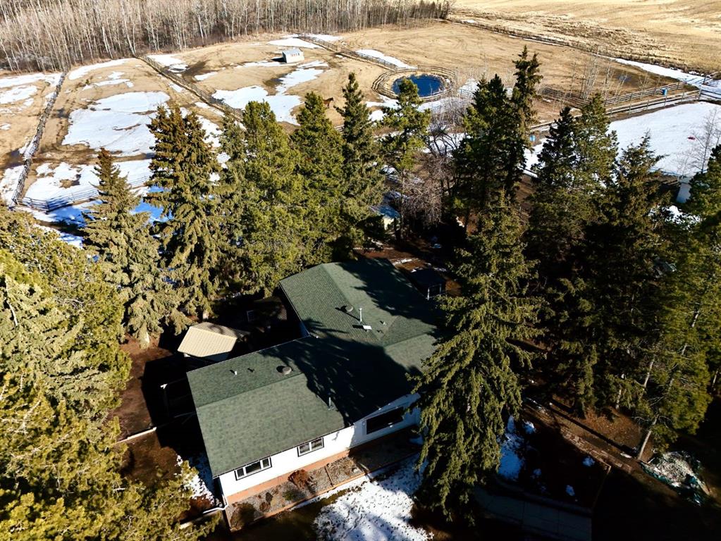 This stunning horse property, 1 km off pavement and just 15 minutes from Lacombe, offers everything you need for a rural lifestyle. The 3 bedroom home with office and bonus room offers modern amenities, and has been meticulously maintained and upgraded over the years. Double detached garage (26x28) for parking or storage, a heated insulated shop (overhead radiant propane, or diesel), measuring 30'X40' with a 10' overhead door and paved floor provides ample space to work or run a business. Attached is a spacious 30x60 pole barn with horse stalls, new rubber floors, and a 19' x 10' sliding machinery door. This property is fully fenced to keep pets secure and livestock safe, with additional cross fencing and paddocks specifically for horses. 4 horse shelters are included, along with a fenced 142' x 73' outdoor sand riding arena. Enjoy the expansive yard with mature trees, a newly constructed deck, and a covered gazebo area - perfect for relaxation and entertaining. There is a flowerbed watering system along the west side of the house, 3 apple trees, a pear tree, and rhubarb around the house. Key features include : Decorative electric front gate enhancing security and convenience, 2 security cameras, paved driveway, New shingles in 2018, new fridge, dishwasher, washer and dryer, and lighting 2026, updated electrical, windows, and drywall 2009. Home has air conditioning and a commercial grade furnace, with a additional heat source - a pellet stove. This property has a drilled well, with well pump in the pump house, and an outdoor hot water tank for bathing horses. The septic system is gravity fed from a holding tank, and the tank has been pumped out every 2 years. The cement lid to the tank was recently replaced (2023). There is 220 and 110 power available in the shop. The two propane tanks for the house and shop are leased from Blindman Valley propane, and there is garbage pickup at the gate every Thursday. This service is paid for up until Dec. 2026.