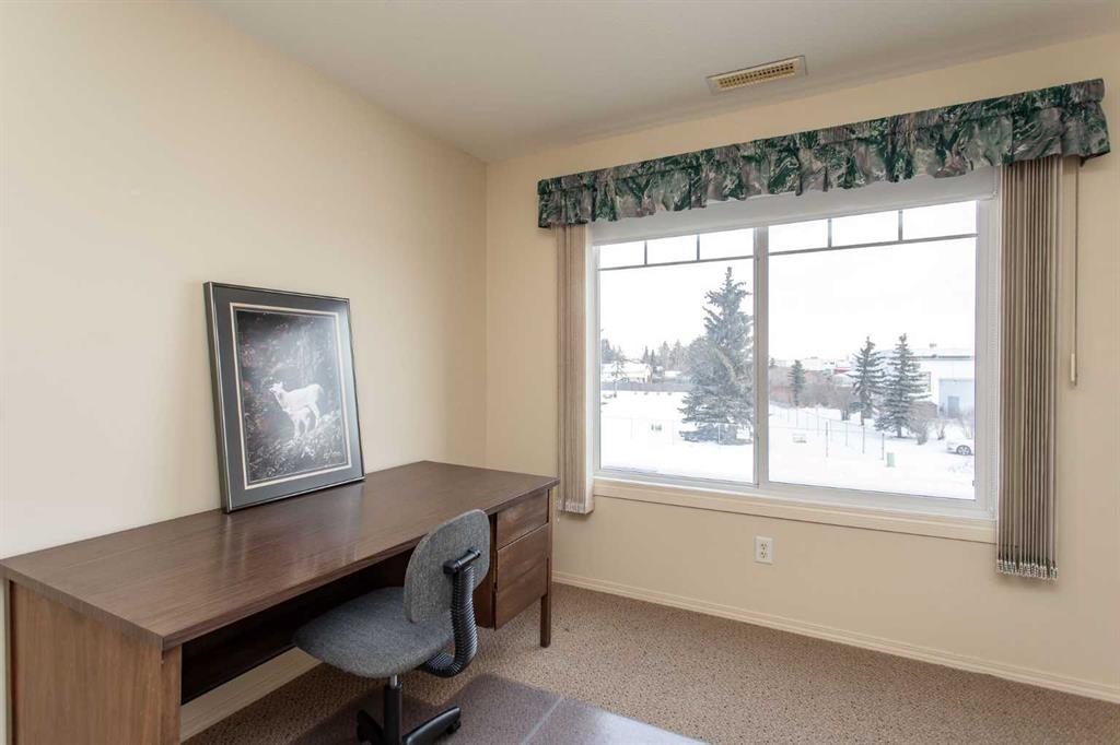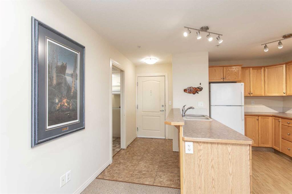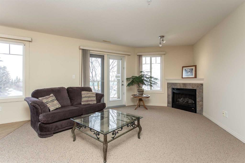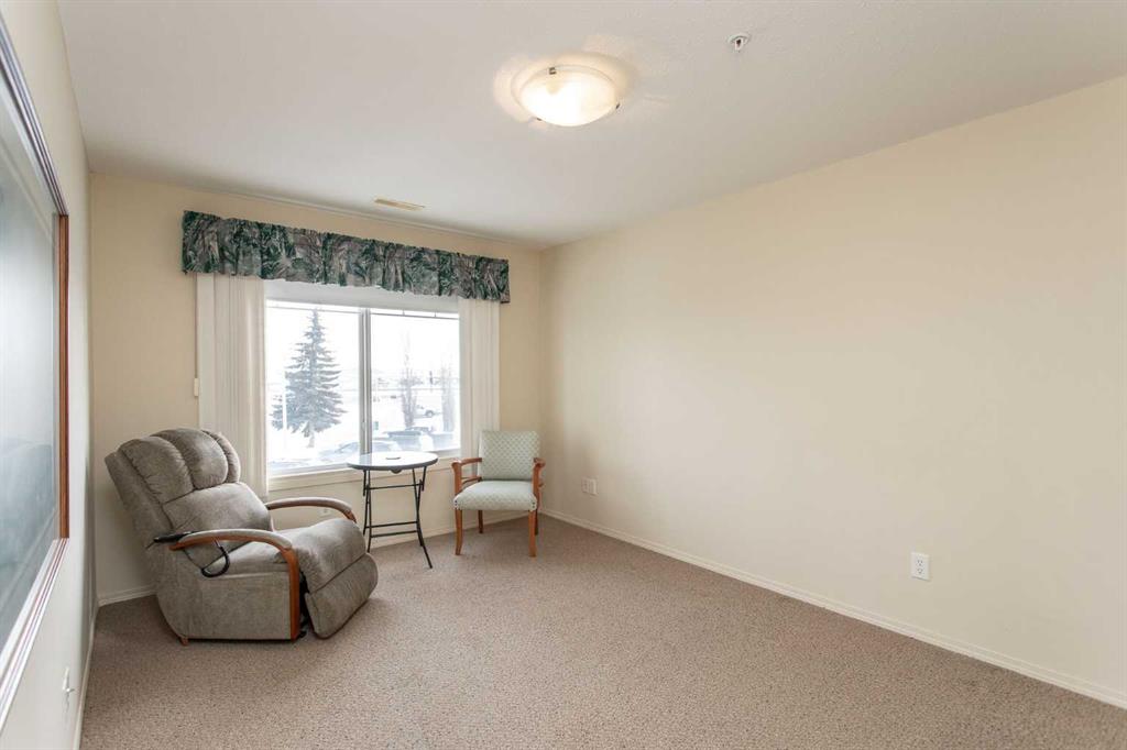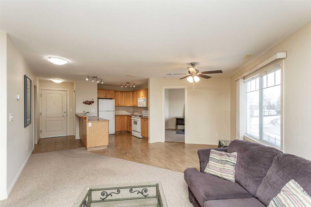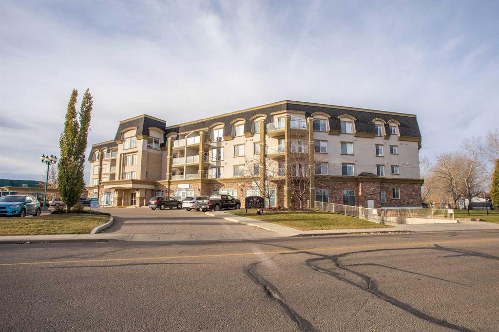 Are you looking to own a condo in one of Lacombe's premier adult living communities? Look no further than Chateau Lacombe! This centrally located development is within walking distance to downtown, shopping, and scenic walking trails. The stunning 2nd-floor corner unit boasts east and north exposures, providing beautiful views of the countryside and commercial businesses to the east, and the Heritage Park playground to the north. This spacious corner unit features an oversized deck, an abundance of windows, and ample living space, making it one of the finest units in the project. From the moment you enter the building, you'll be impressed by the design, the spiral staircase, and the overall cleanliness. You can reach the second floor via elevator or a short walk up the spiral staircase. Once inside the condo, you'll be greeted by an open concept design with plenty of natural light. The lovely kitchen boasts oak cabinetry, laminate countertops, and newer lighting, while the spacious living room features a corner electric fireplace and a dining area, perfect for entertaining. The primary bedroom is generously sized and includes a walk-through closet and a 3-piece ensuite. Additionally, there is a second bedroom, a 4-piece bathroom, and a laundry/storage room that completes the floor plan. This condo includes a titled underground parking stall and an assigned storage unit. There's plenty of visitor parking out front and a common party room available for rent, where you can meet fellow residents for a game of cards, enjoy a coffee, or work on puzzles. Say goodbye to snow shoveling in the winter and yard work in the summer by moving into this friendly adult living community, conveniently located close to amenities.