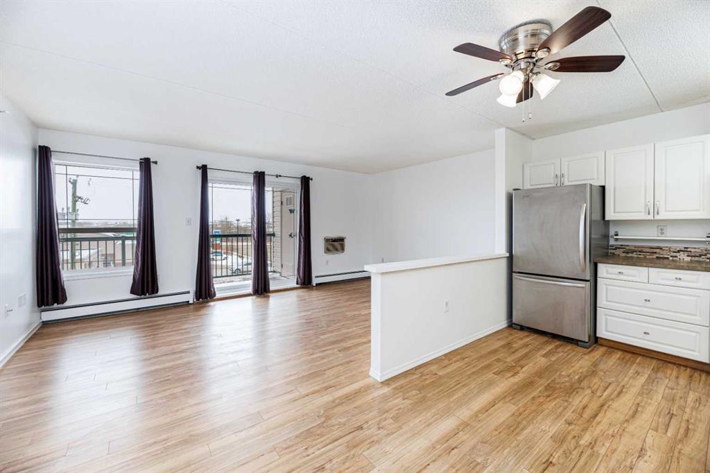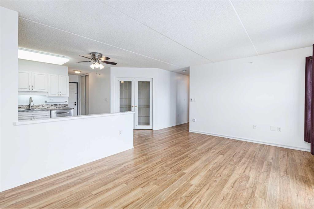 Looking to downsize? Tired of shovelling ALL that snow and keeping up with mowing ALL that grass? Here is the perfect place to call HOME!! STRESS FREE , secure building and NO OUTSIDE MAINTENANCE! Immediate possession of this 1 bedroom, 1 generous sized den, 1 FULL bath c/w with in suite laundry. An open floor plan and freshly painted and immaculate condition. MOVE IN READY! You will love the East facing deck to enjoy the stunning sunrises in the morning as you have your morning hot drink. There are two Large storage rooms at each end of the balcony. There is off street designated parking with plugin at the rear of the building or for a nominal fee you can rent a stall from one of the other occupants of the building in the enclosed podium parking . This property is conveniently located and is in close proximity to all amenities- pharmacies, banks, shopping, post office, cafes, doctor, dentist offices, and stroll downtown visiting all the beautiful shops, the list goes on. You will definitely save money on gas as you can easily walk to anything you need. You will appreciate the new you as you benefit from all the walking keeping you fit and healthy. This gorgeous unit in the 55+ adult condominium definitely has 10 rating on the home buying scale.