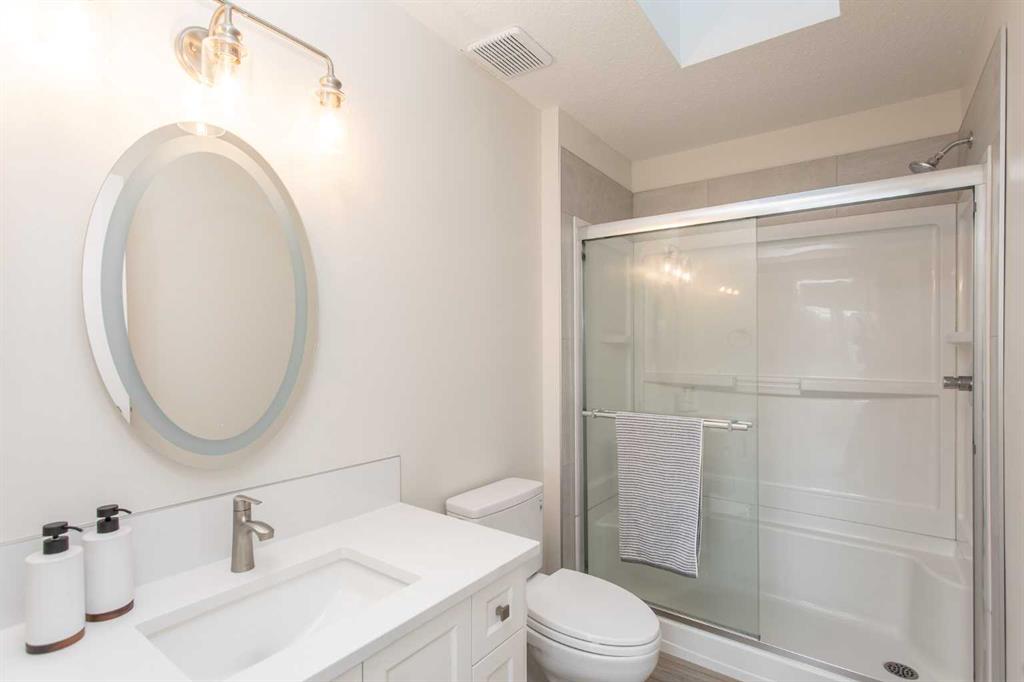 This beautifully renovated English Estates home boasts 1,941 sq ft of living space! Upon entering, you'll be greeted in the grand foyer with curved staircase & the all new vinyl plank flooring with it's beautiful heiring bone pattern throughout the main floor. The brand new kitchen will be sure to impress with all new LG appliances, brushed nickel hardware & taps, silent close cabinets, and a gas fireplace with floor to ceiling marble surround. The true show stopper is the large island with second sink, bar seating, & additional storage. You will appreciate the custom roller blinds thoughout the house. There are three large bedrooms upstairs along with a four piece bathroom. The primary suite is like a retreat with it's south facing windows, walk-in closet, & plenty of space for a king bed. The main bathroom features a jetted tub. The basement offers a fourth bedroom, additional 3 piece bathroom, an extra large family room, and additional space that can be used as a home office. The huge back yard is completely fenced with a vinyl fence, has back alley access, large 10x10 shed, firepit area with brick patio. There is a side gate that offers options for RV storage. This home is like new with new plumbing, new electrical, new panel, new furnace, new appliances, new bathroom fixtures, new kitchen, and new textured ceiling.