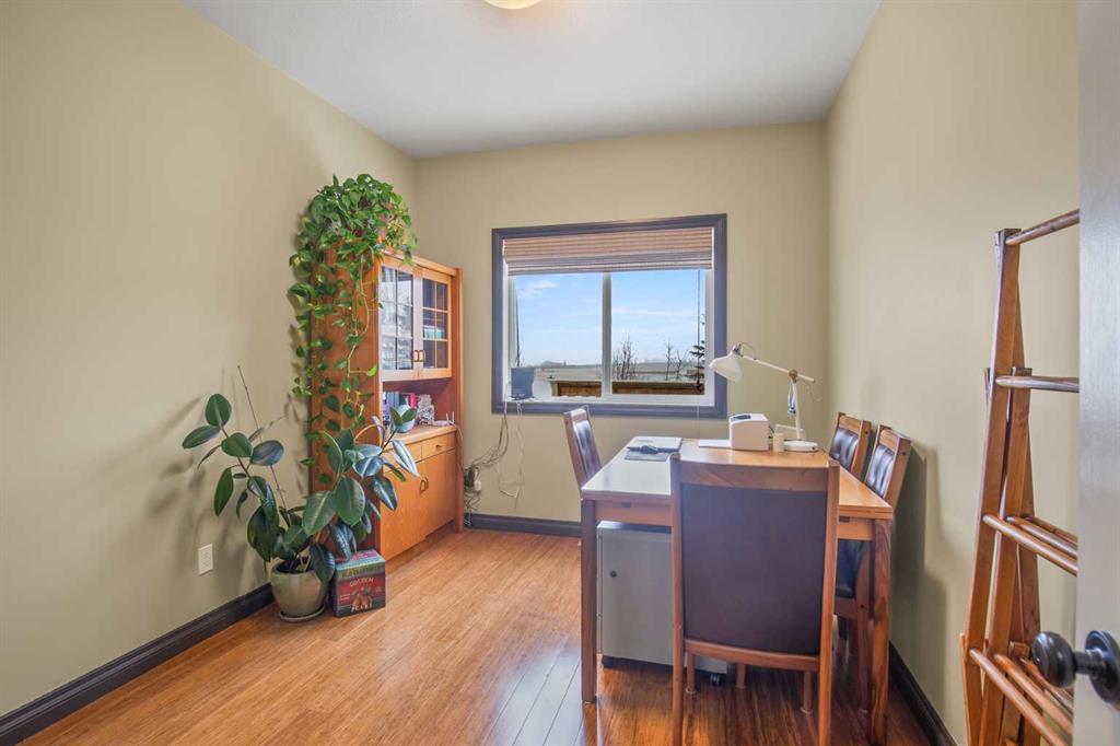 This is a unique home lending itself to a different layout as you enter the home from the side. It also doesn't hurt that it is in terrific shape and well maintained located in the desirable neighborhoud of Henner's Landing. This four bed, three bath home has two bedrooms up and two down with a 5pc ensuite and 4pc bath upstairs along with a 4pc bath downstairs. Main floor laundry is always nice as is no carpet on the main floor. The kitchen is well appointed with hickory cabinets and leads out to a large east facing deck which can also be accessed through the primary bedroom. The basement features in floor heat, high ceilings and large windows making it feel as if its above ground. Many and large windows means loads of natural light coming into the home upstairs and downstairs. Another nice feature of this home is an electricity bill that is next to nothing thanks to the solar panels on the roof. Outside you will find a fully fenced yard, garden plot, perennial flowers. along with a raspberry patch, and a couple of apple trees. Heated garage, close to walking trails, views off the deck of farmland, add to the appeal of this home. Come see for yourself all that this home has to offer.